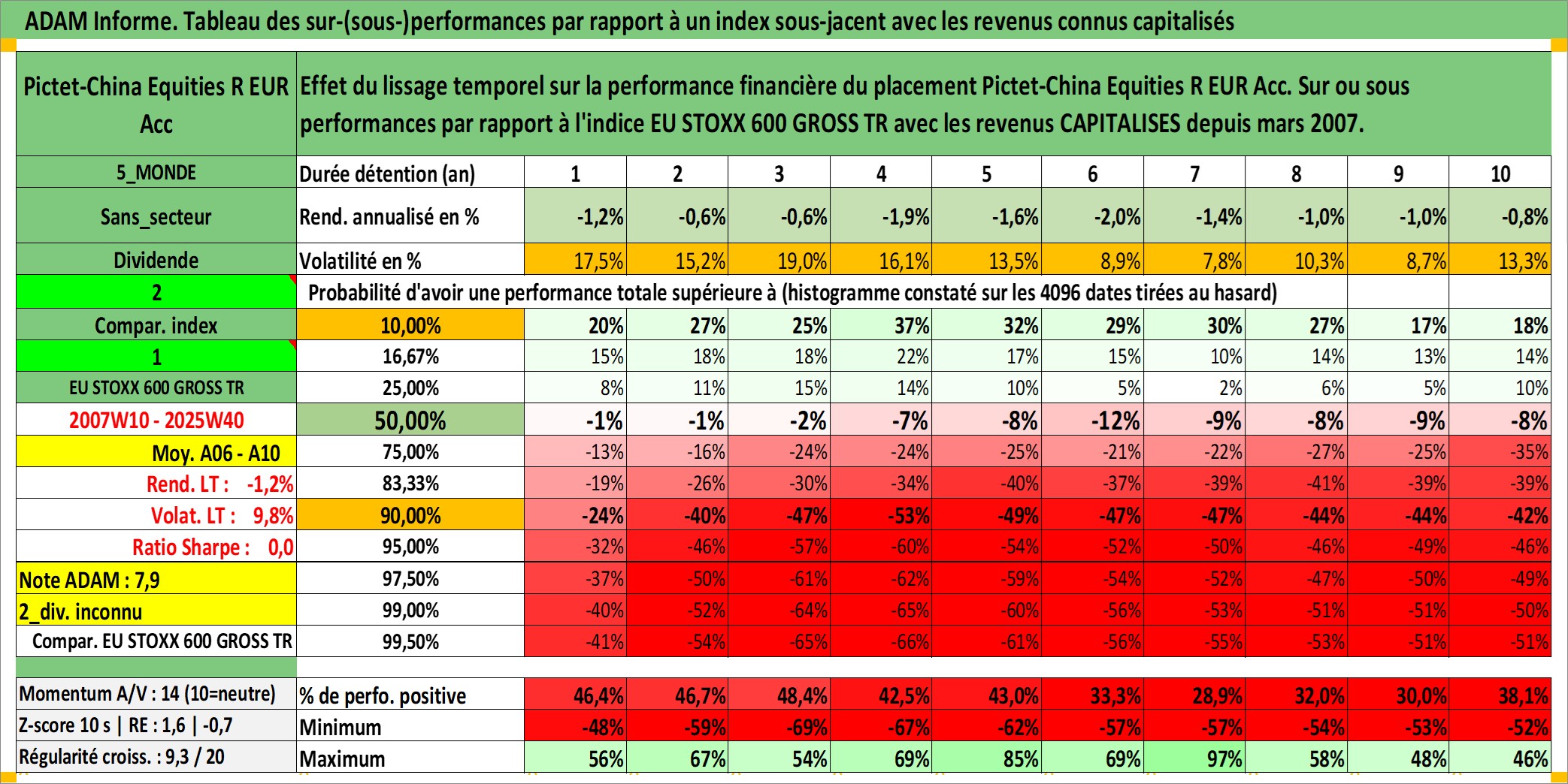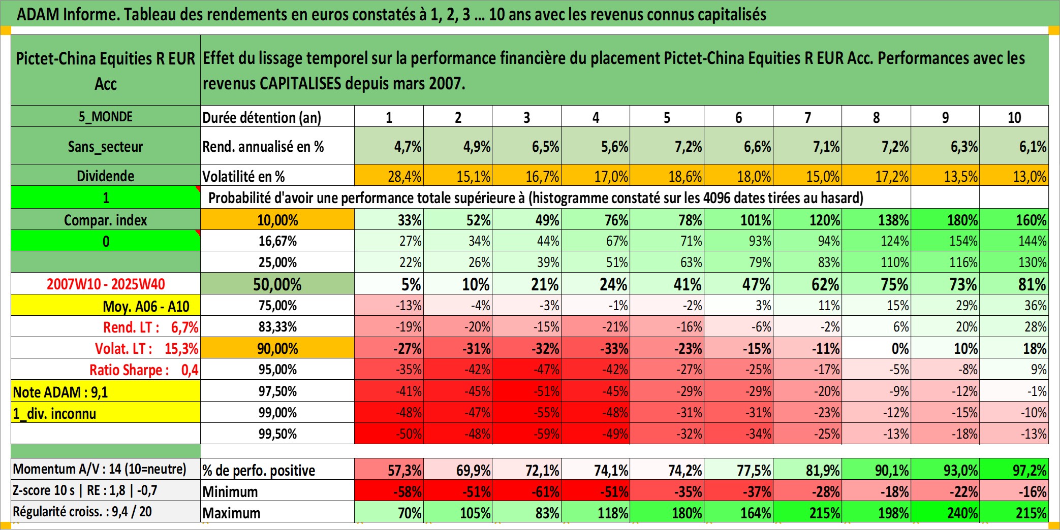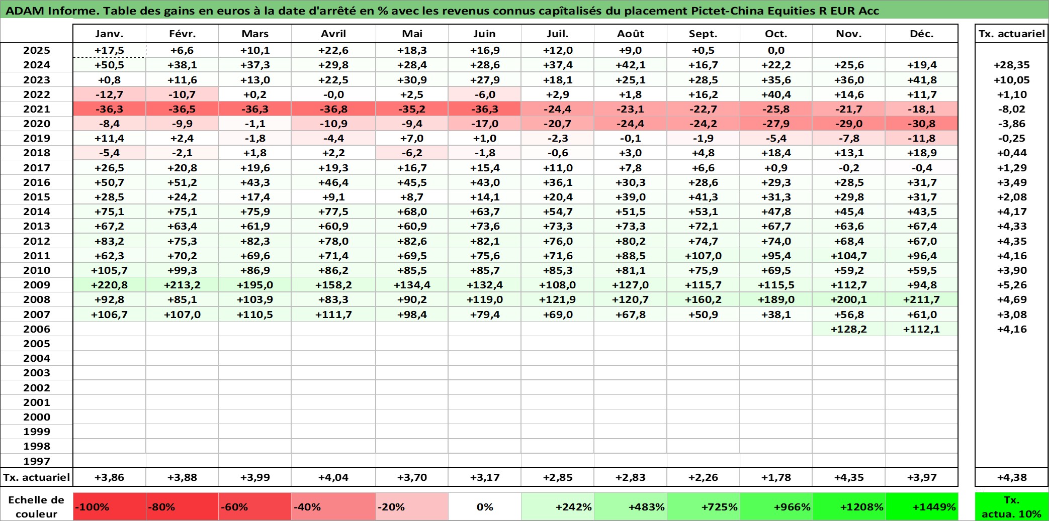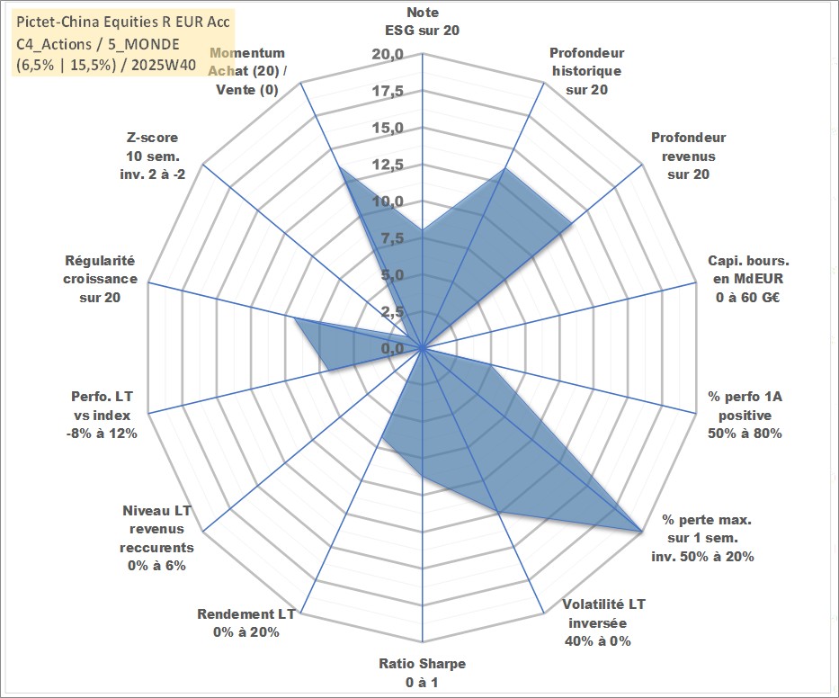 Site dédié aux investisseursPage dédiée sur site financeAnalyse des valorisations hebdomadaires du fonds Pictet-China Equities R EUR Acc. Cet actif est cote en EUR. Les valorisations couvrent les semaines 2007W10 a 2025W40. Les revenus de cet actif financier sont pris en compte depuis la semaine 2007W10. La note globale ESG de cet actif est estimee a 8.0 (apres rebasage entre 0 et 20).