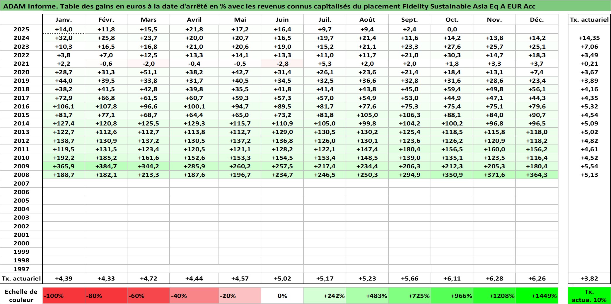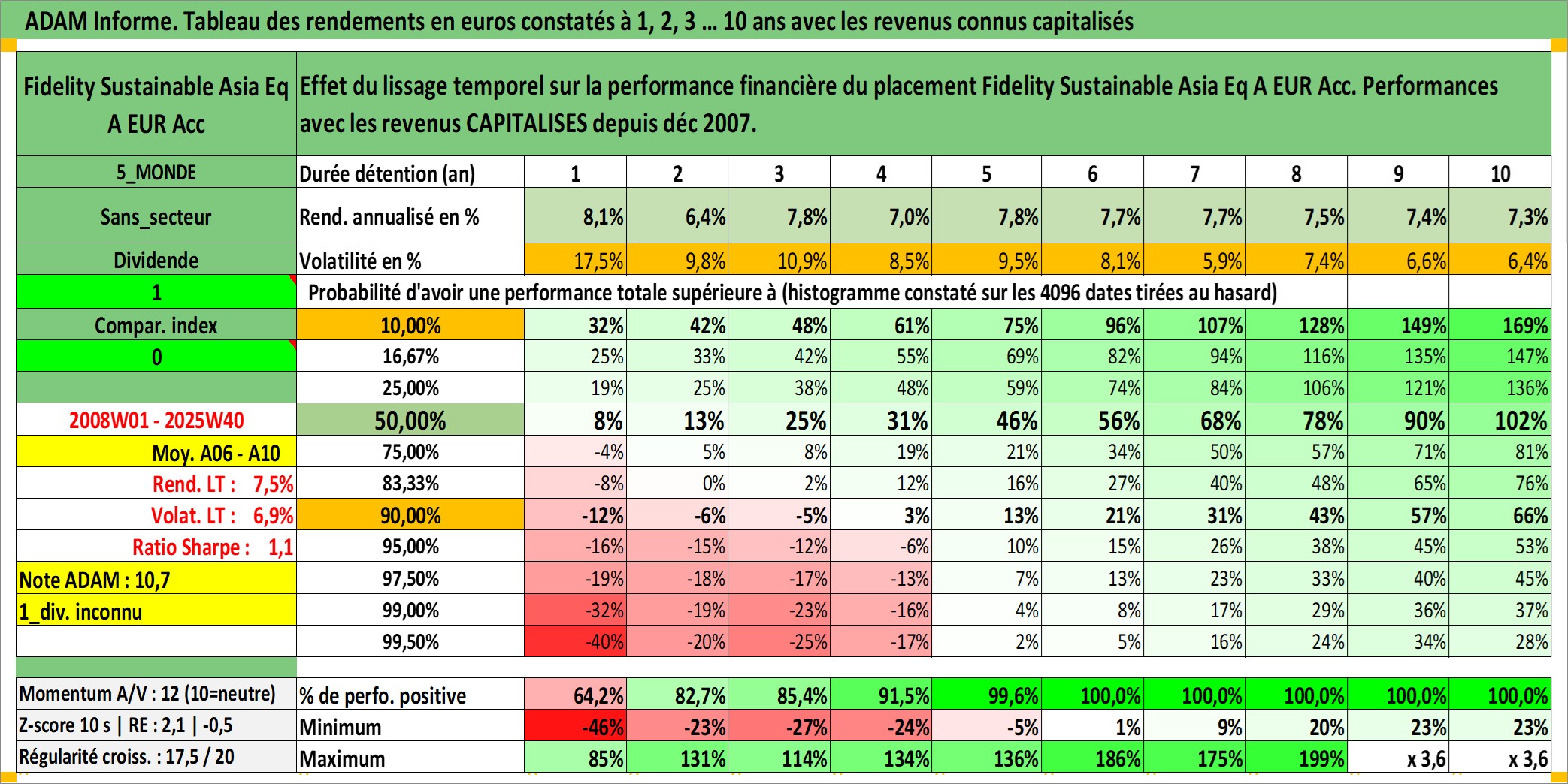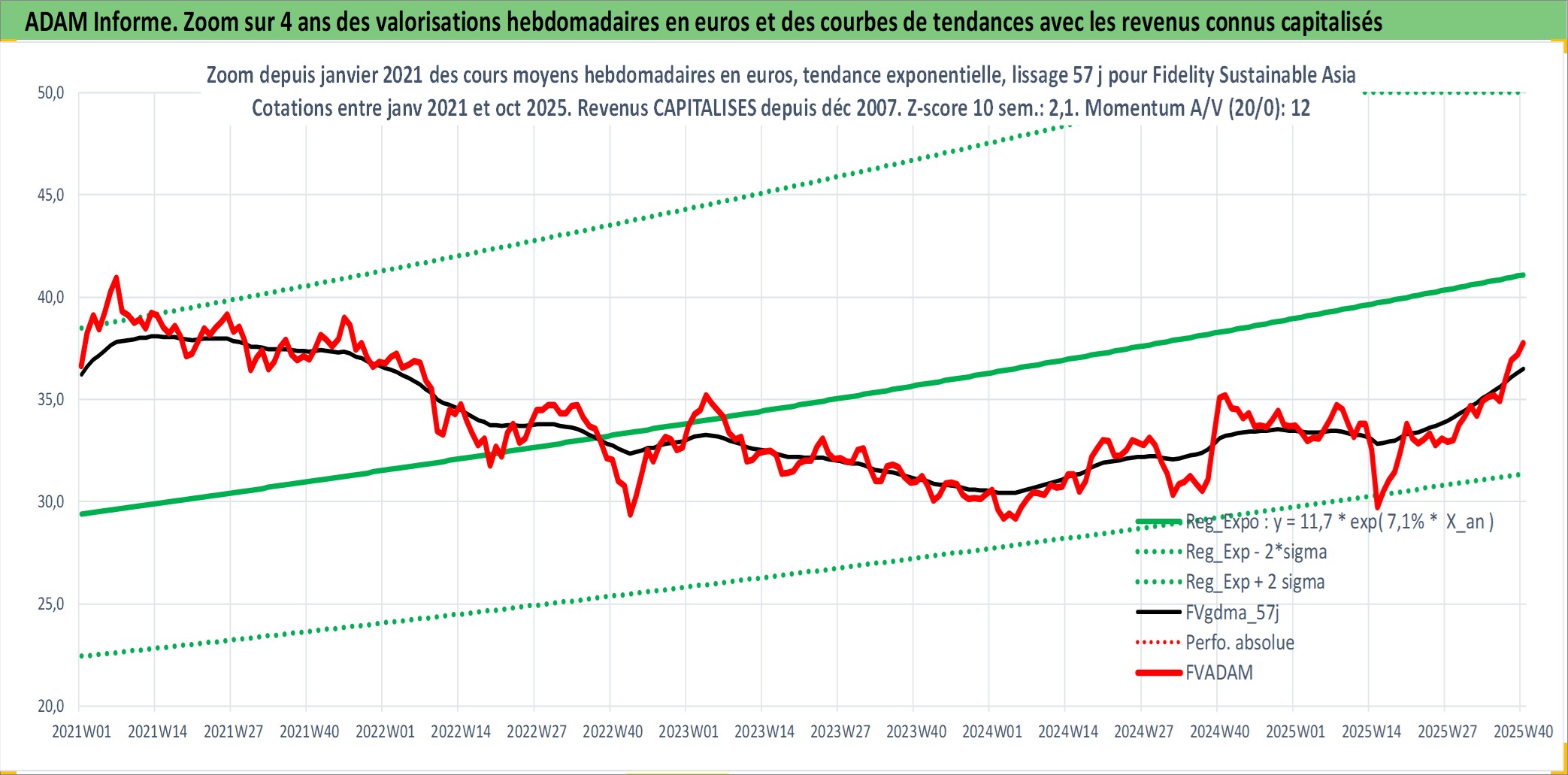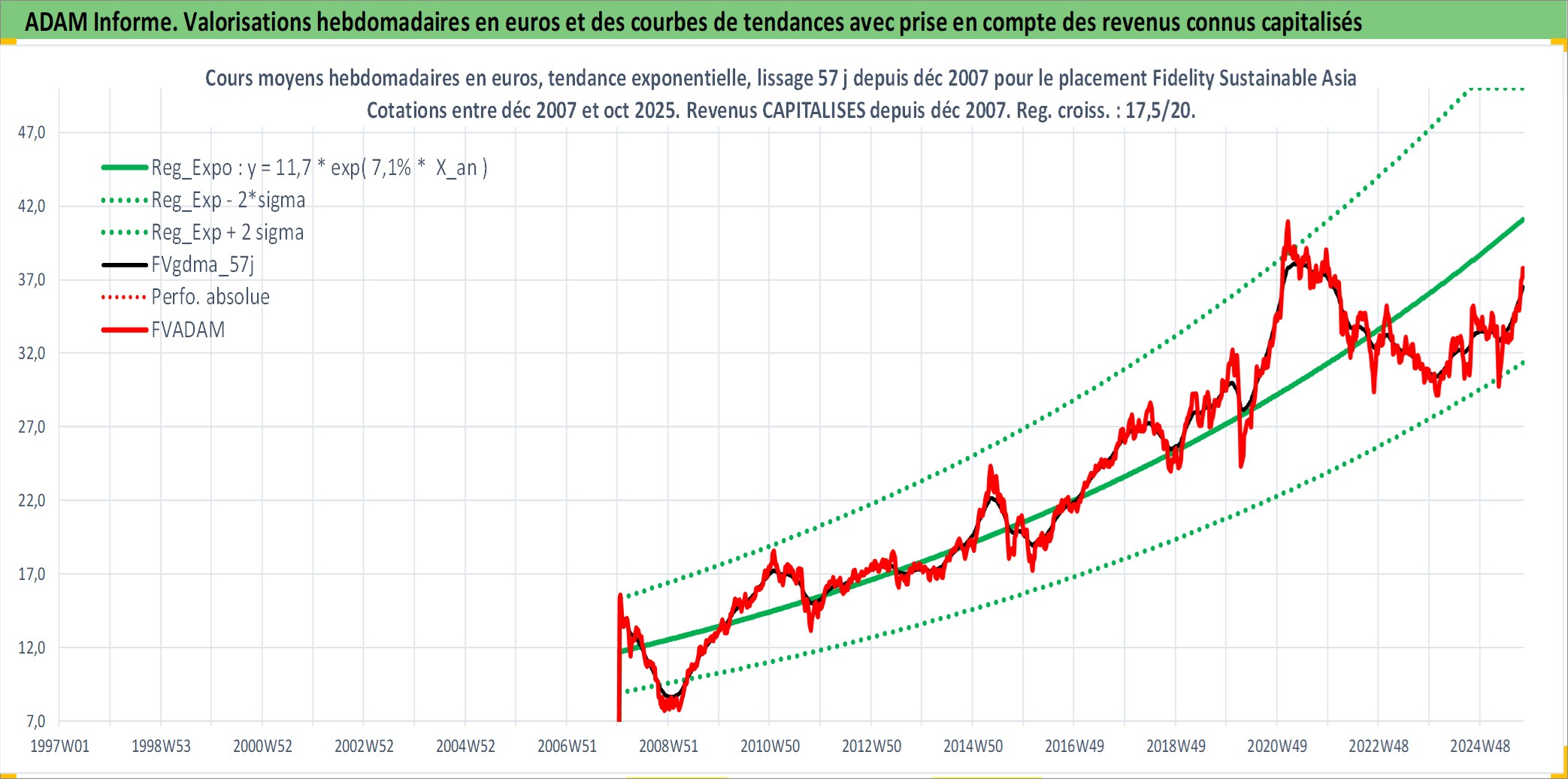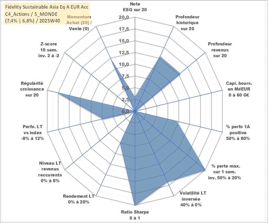 Site dédié aux investisseursPage dédiée sur site financeAnalyse des valorisations hebdomadaires du fonds Fidelity Sustainable Asia Eq A EUR Acc. Cet actif est cote en EUR. Les valorisations couvrent les semaines 2008W01 a 2025W40. Les revenus de cet actif financier sont pris en compte depuis la semaine 2008W01. La note globale ESG de cet actif est estimee a 3.0 (apres rebasage entre 0 et 20).