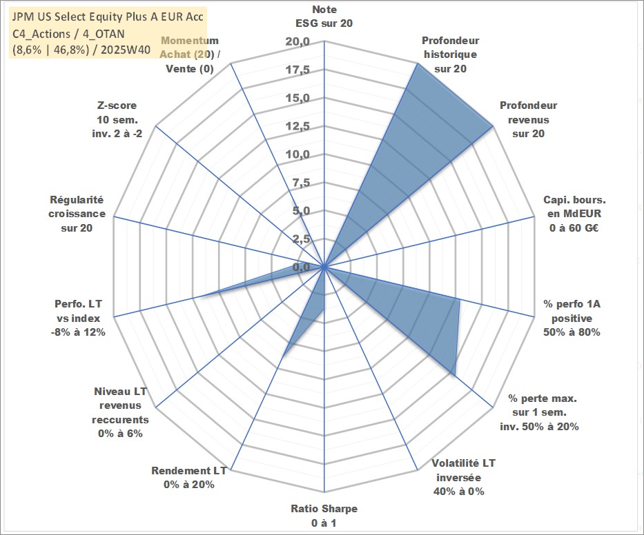 Site dédié aux investisseursPage dédiée sur site financeAnalyse des valorisations hebdomadaires du fonds JPM US Select Equity Plus A EUR Acc. Cet actif est cote en EUR. Les valorisations couvrent les semaines 1997W01 a 2025W40. Les revenus de cet actif financier sont pris en compte depuis la semaine 1997W01. La note ESG de cet actif n'est pas connue.