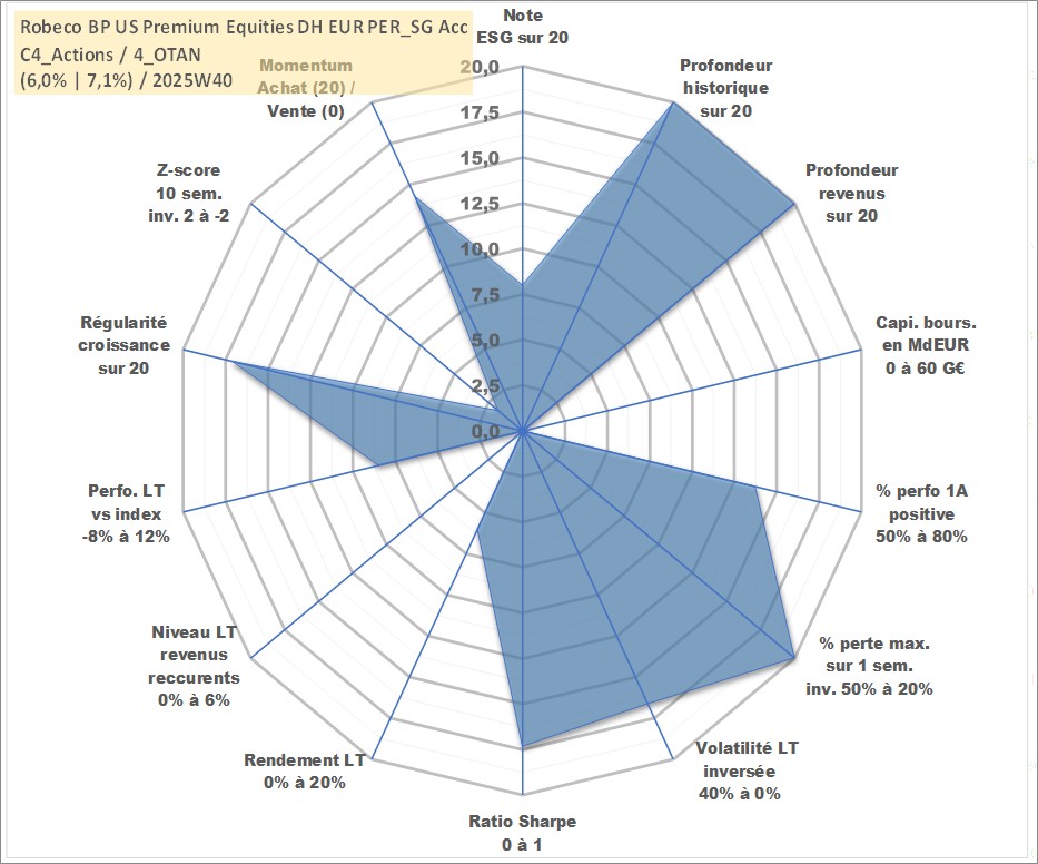 Site dédié aux investisseursPage dédiée sur site financeAnalyse des valorisations hebdomadaires du fonds Robeco BP US Premium Equities DH EUR PER_SG Acc. Cet actif est cote en EUR. Les valorisations couvrent les semaines 1997W01 a 2025W40. Les revenus de cet actif financier sont pris en compte depuis la semaine 1997W01. La note globale ESG de cet actif est estimee a 8.0 (apres rebasage entre 0 et 20).