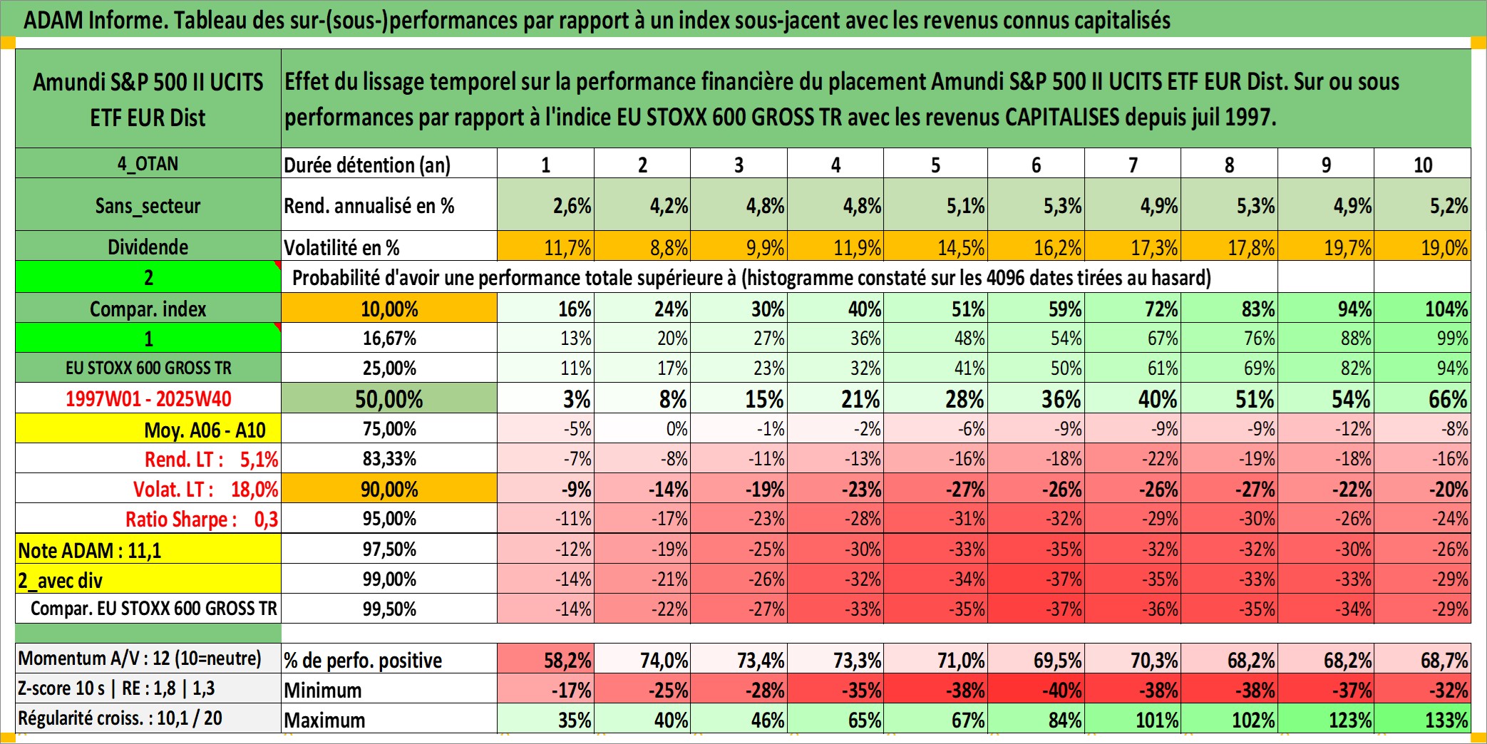 Site dédié aux investisseursPage dédiée sur site financeAnalyse des valorisations hebdomadaires du fonds Amundi S&P 500 II UCITS ETF EUR Dist. Cet actif est cote en EUR. Les valorisations couvrent les semaines 1997W01 a 2025W40. Les revenus de cet actif financier sont pris en compte depuis la semaine 1997W28. La note ESG de cet actif n'est pas connue.
