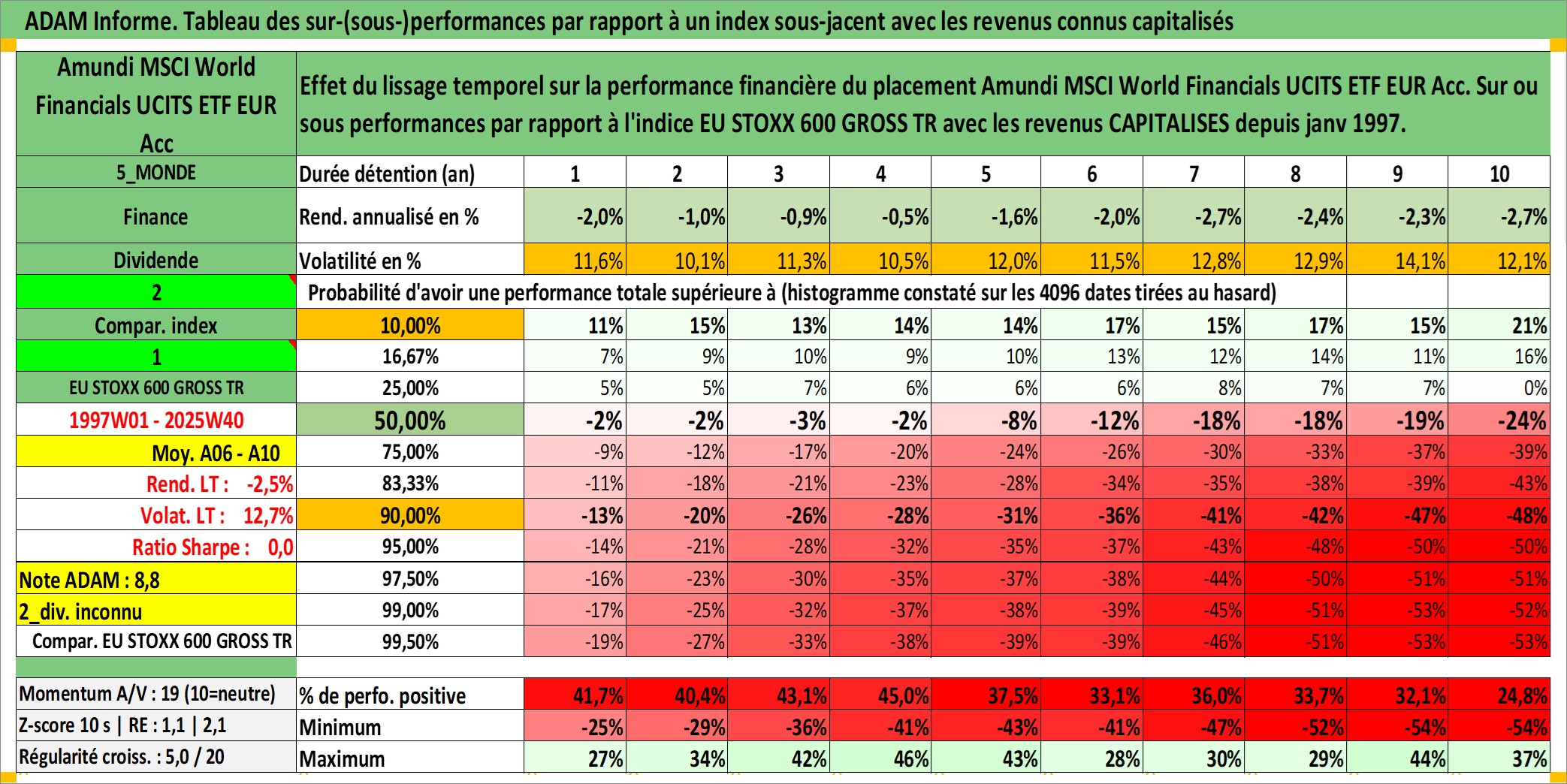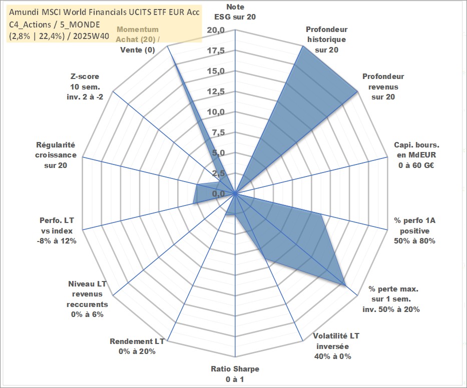 Site dédié aux investisseursPage dédiée sur site financeAnalyse des valorisations hebdomadaires du fonds Amundi MSCI World Financials UCITS ETF EUR Acc. Cet actif est cote en EUR. Les valorisations couvrent les semaines 1997W01 a 2025W40. Les revenus de cet actif financier sont pris en compte depuis la semaine 1997W01. La note ESG de cet actif n'est pas connue.