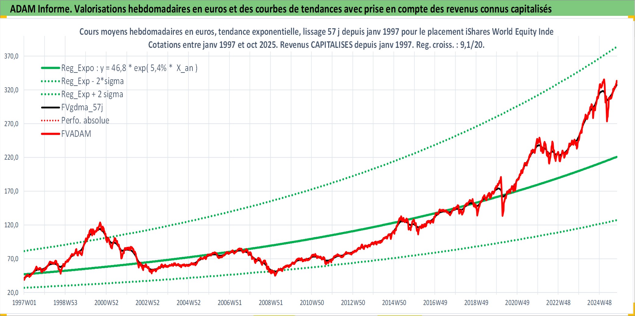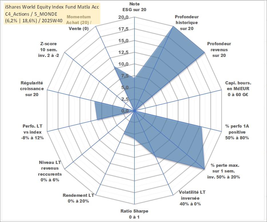 Site dédié aux investisseursPage dédiée sur site financeAnalyse des valorisations hebdomadaires du fonds iShares World Equity Index Fund Matla Acc. Cet actif est cote en USD. Les valorisations sont en contrevaleur EURO et couvrent les semaines 1997W01 a 2025W40. Les revenus de cet actif financier sont pris en compte depuis la semaine 1997W01. La note globale ESG de cet actif est estimee a 6.9 (apres rebasage entre 0 et 20).