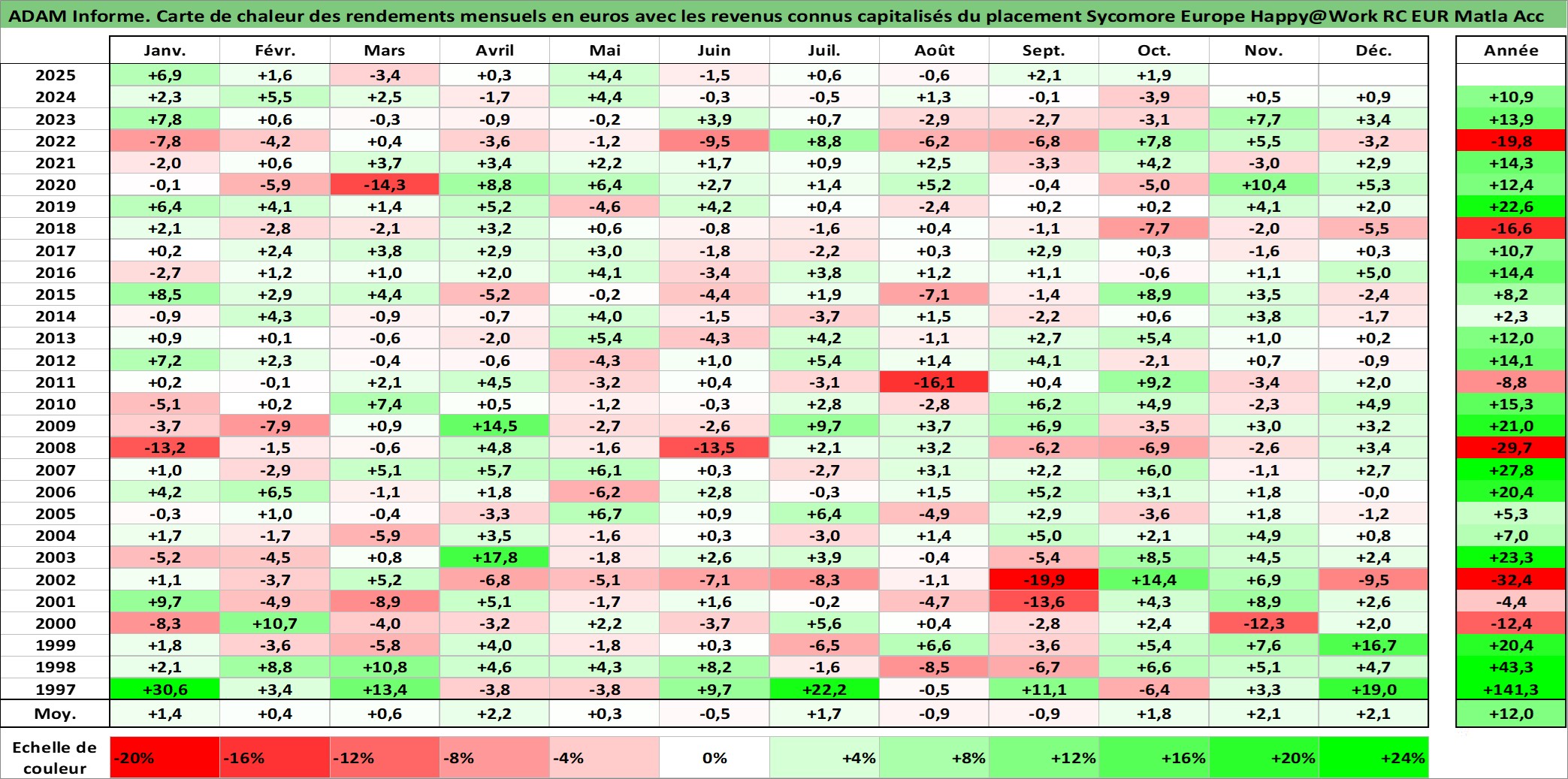 Site dédié aux investisseursPage dédiée sur site financeAnalyse des valorisations hebdomadaires du fonds Sycomore Europe Happy@Work RC EUR Matla Acc. Cet actif est cote en EUR. Les valorisations couvrent les semaines 1997W01 a 2025W40. Les revenus de cet actif financier sont pris en compte depuis la semaine 1997W01. La note ESG de cet actif n'est pas connue.