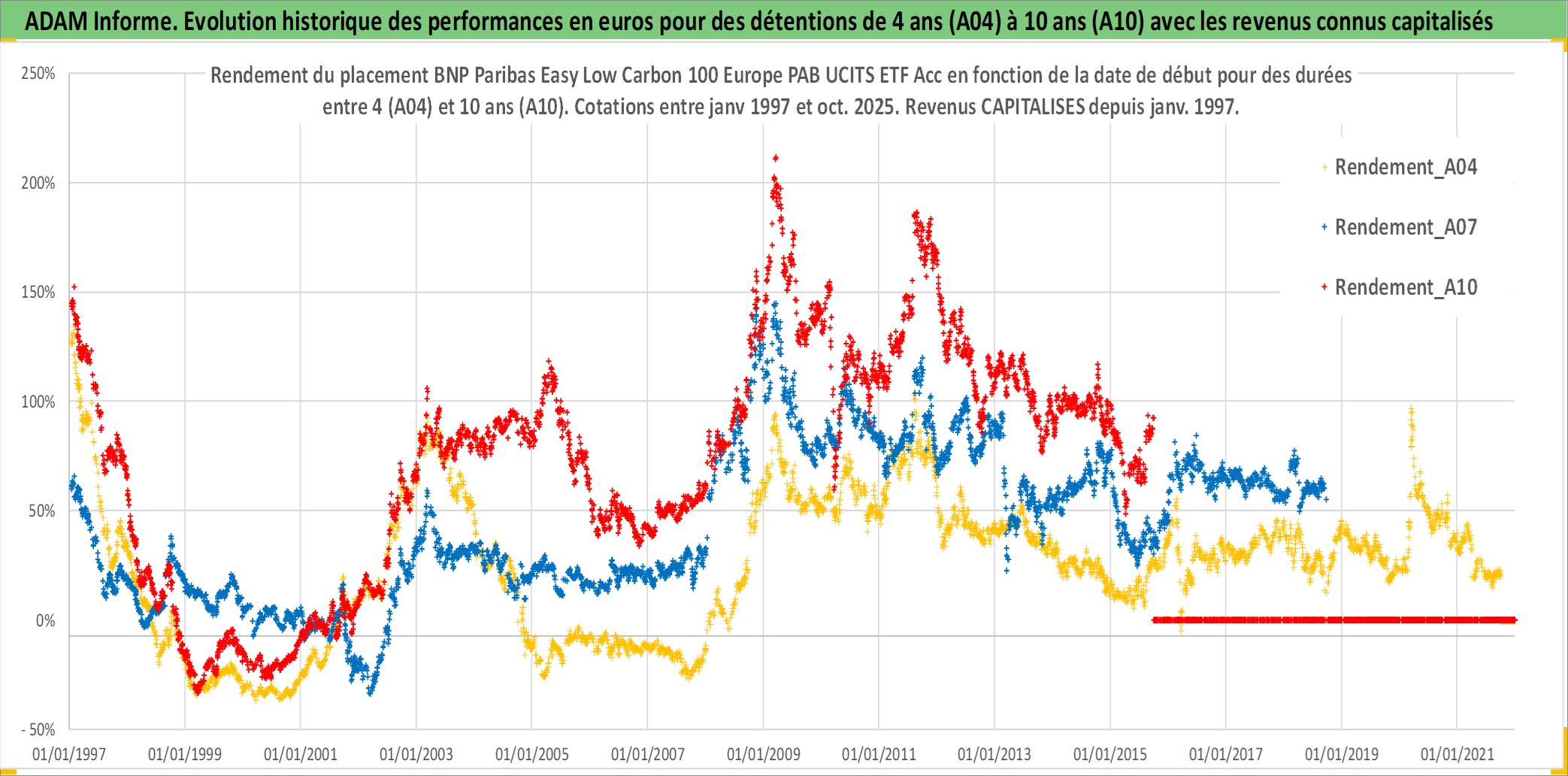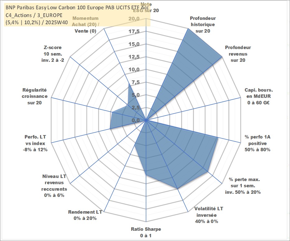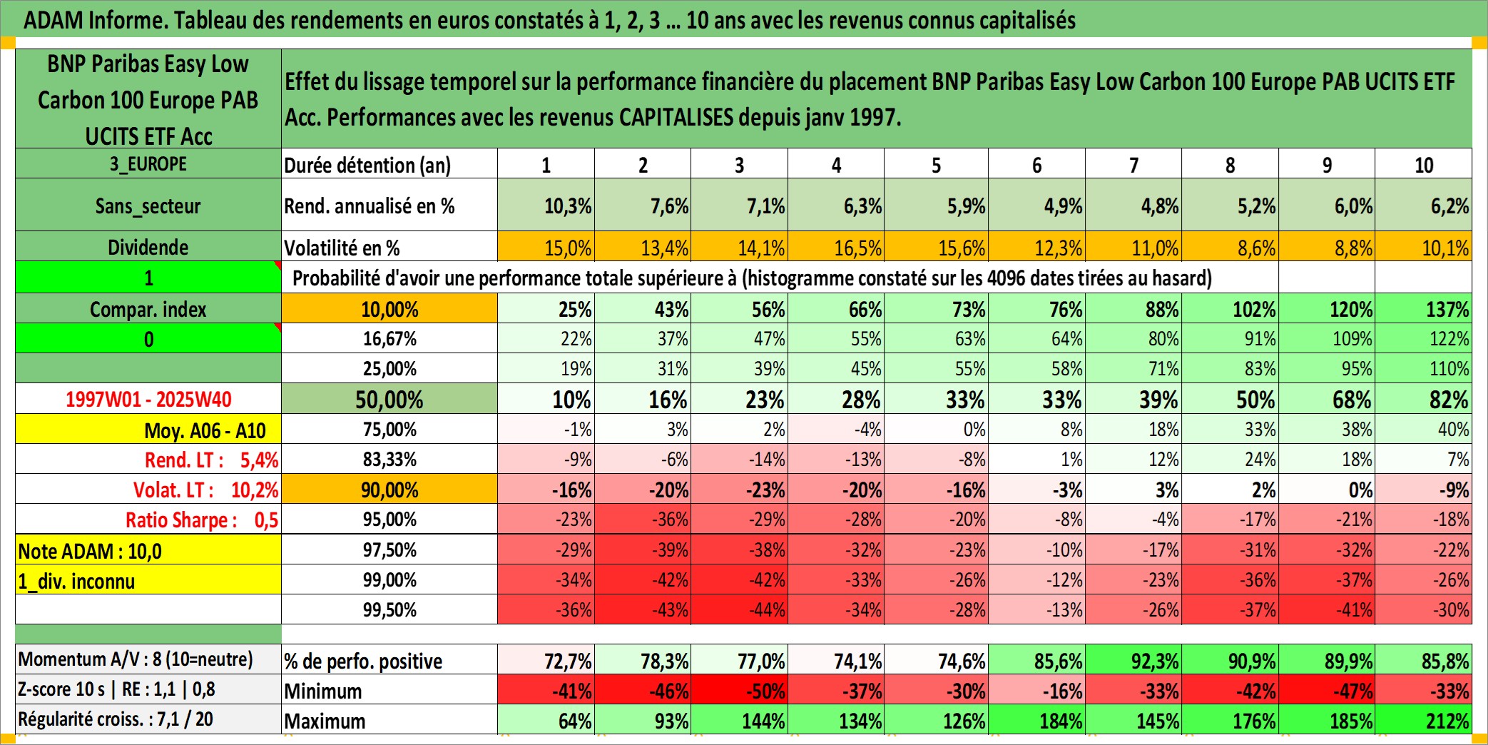 Site dédié aux investisseursPage dédiée sur site financeAnalyse des valorisations hebdomadaires du fonds BNP Paribas Easy Low Carbon 100 Europe PAB UCITS ETF Acc. Cet actif est cote en EUR. Les valorisations couvrent les semaines 1997W01 a 2025W40. Les revenus de cet actif financier sont pris en compte depuis la semaine 1997W01. La note ESG de cet actif n'est pas connue.