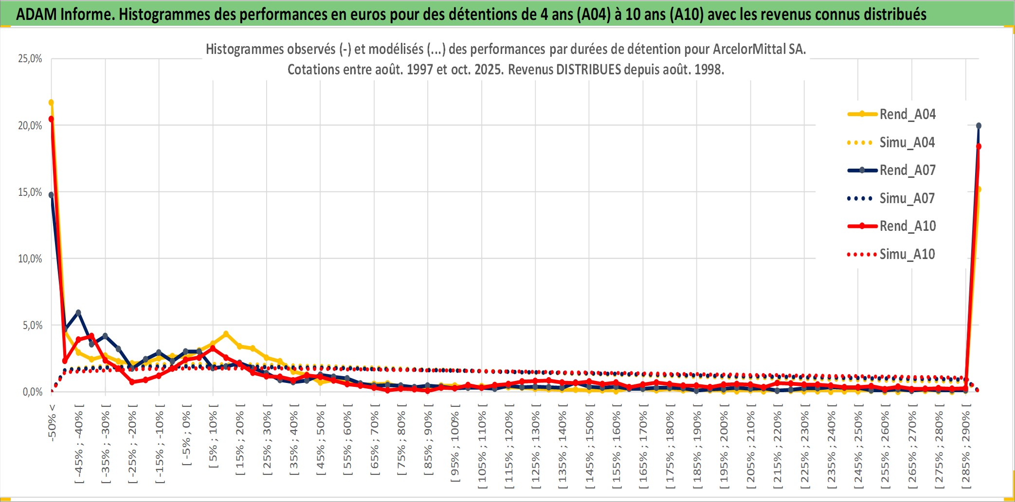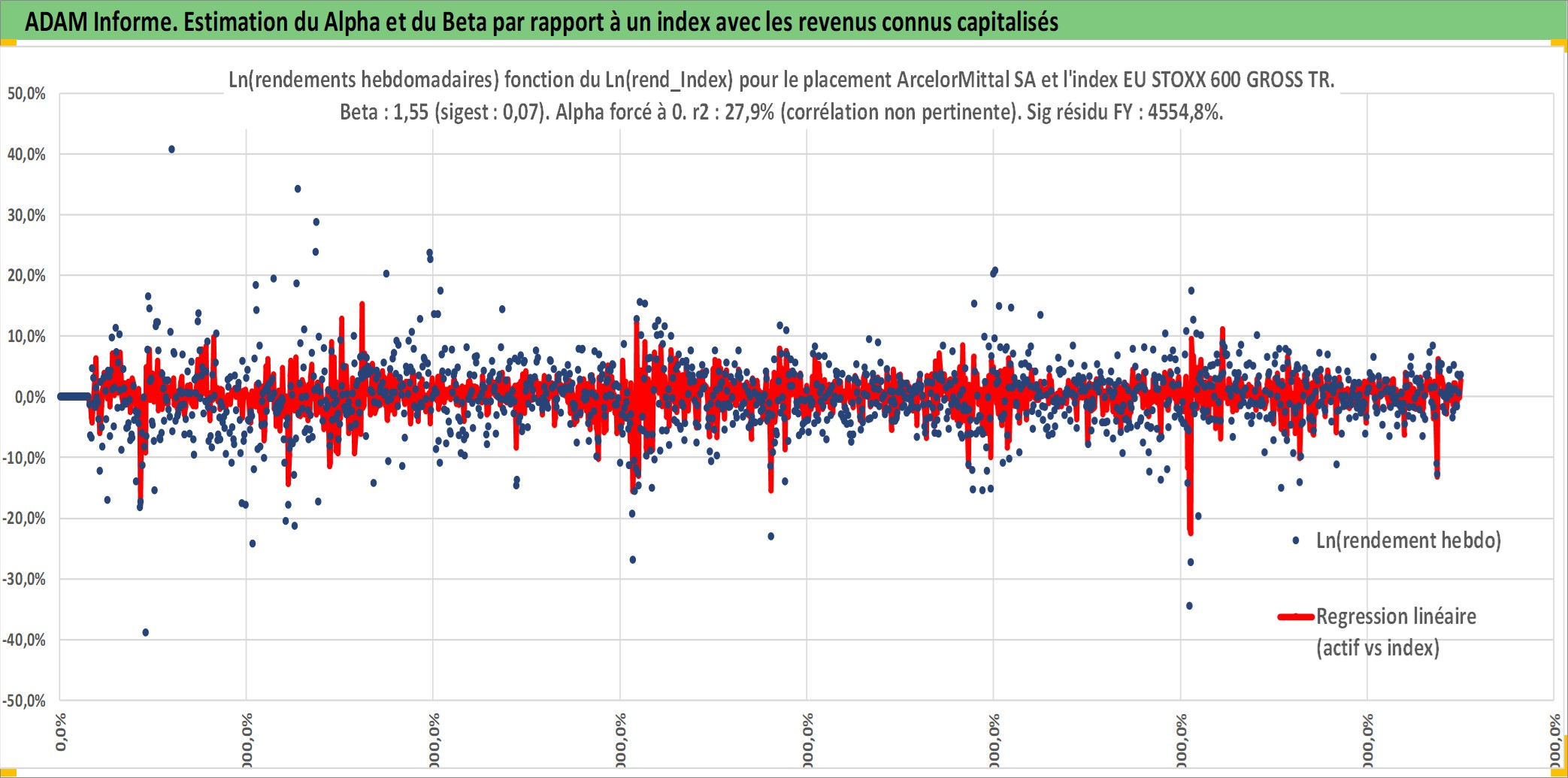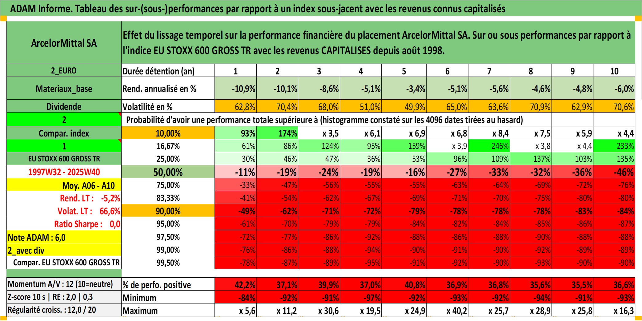 Site dédié aux investisseursPage dédiée sur site financeAnalyse des valorisations hebdomadaires de l'action ArcelorMittal SA. Cet actif est cote en EUR. Les valorisations couvrent les semaines 1997W32 a 2025W40. Les revenus de cet actif financier sont pris en compte depuis la semaine 1998W34. La note globale ESG de cet actif est estimee a 3.0 (apres rebasage entre 0 et 20).