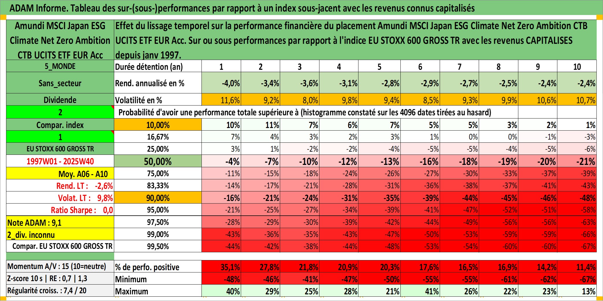 Site dédié aux investisseursPage dédiée sur site financeAnalyse des valorisations hebdomadaires du fonds Amundi MSCI Japan ESG Climate Net Zero Ambition CTB UCITS ETF EUR Acc. Cet actif est cote en EUR. Les valorisations couvrent les semaines 1997W01 a 2025W40. Les revenus de cet actif financier sont pris en compte depuis la semaine 1997W01. La note ESG de cet actif n'est pas connue.