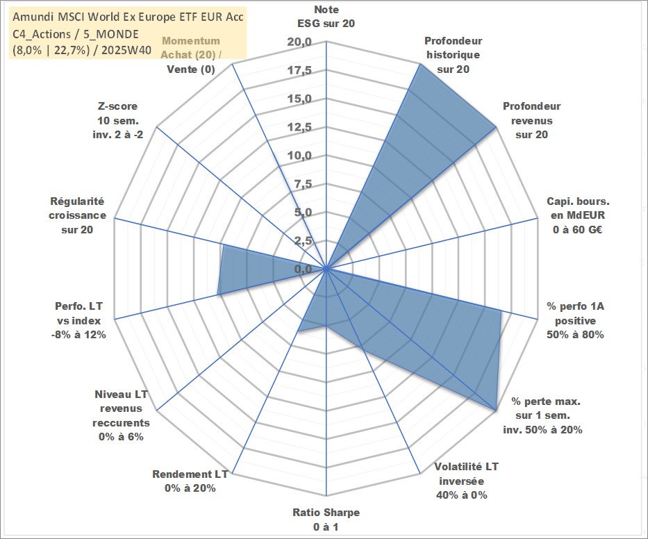 Site dédié aux investisseursPage dédiée sur site financeAnalyse des valorisations hebdomadaires du fonds Amundi MSCI World Ex Europe ETF EUR Acc. Cet actif est cote en EUR. Les valorisations couvrent les semaines 1997W01 a 2025W40. Les revenus de cet actif financier sont pris en compte depuis la semaine 1997W01. La note ESG de cet actif n'est pas connue.