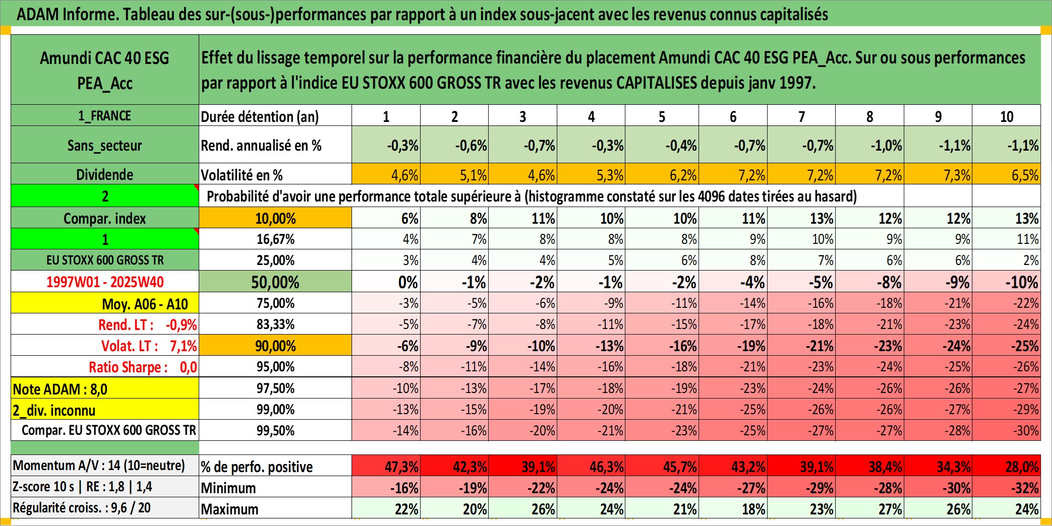 Site dédié aux investisseursPage dédiée sur site financeAnalyse des valorisations hebdomadaires du fonds Amundi CAC 40 ESG PEA_Acc. Cet actif est cote en EUR. Les valorisations couvrent les semaines 1997W01 a 2025W40. Les revenus de cet actif financier sont pris en compte depuis la semaine 1997W01. La note ESG de cet actif n'est pas connue.