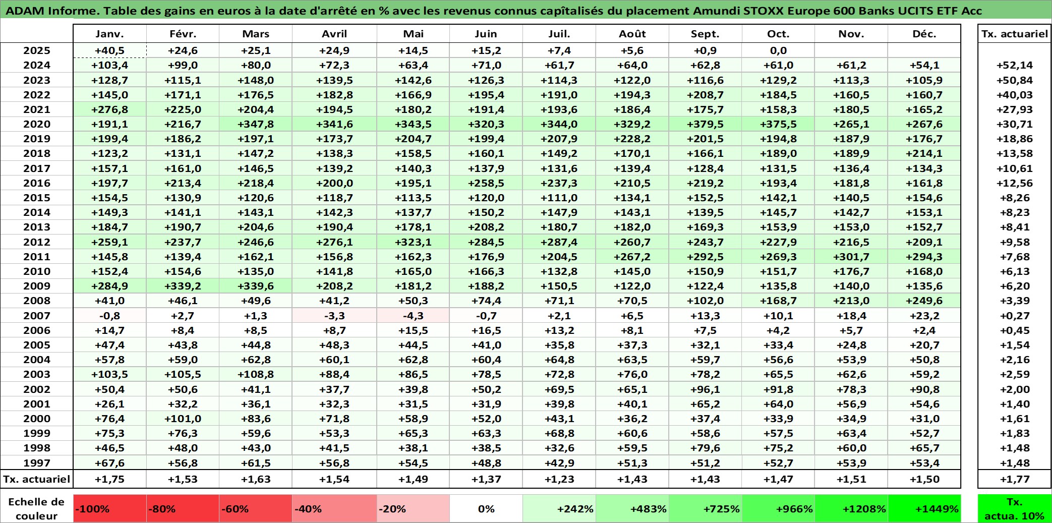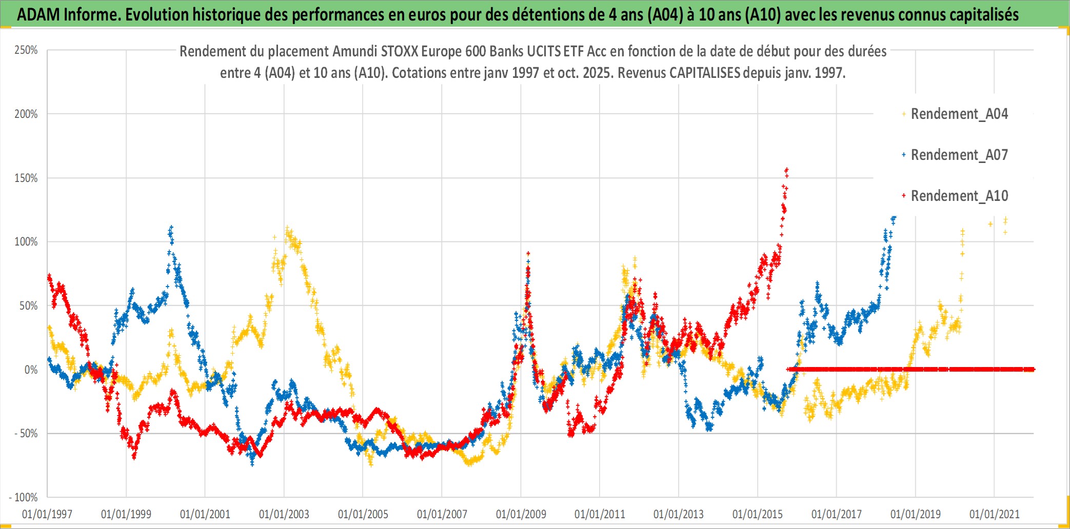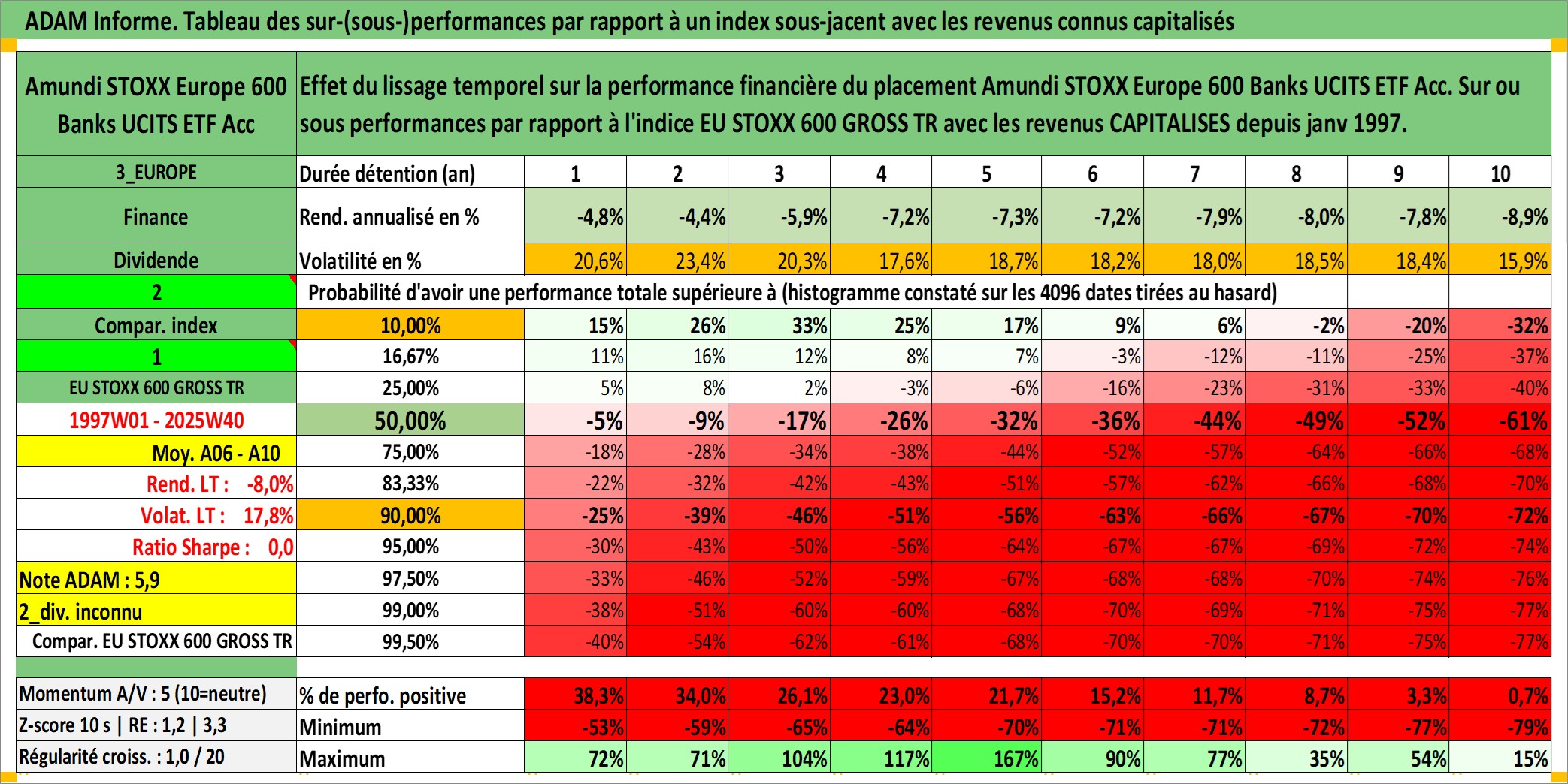 Site dédié aux investisseursPage dédiée sur site financeAnalyse des valorisations hebdomadaires du fonds Amundi STOXX Europe 600 Banks UCITS ETF Acc. Cet actif est cote en EUR. Les valorisations couvrent les semaines 1997W01 a 2025W40. Les revenus de cet actif financier sont pris en compte depuis la semaine 1997W01. La note ESG de cet actif n'est pas connue.