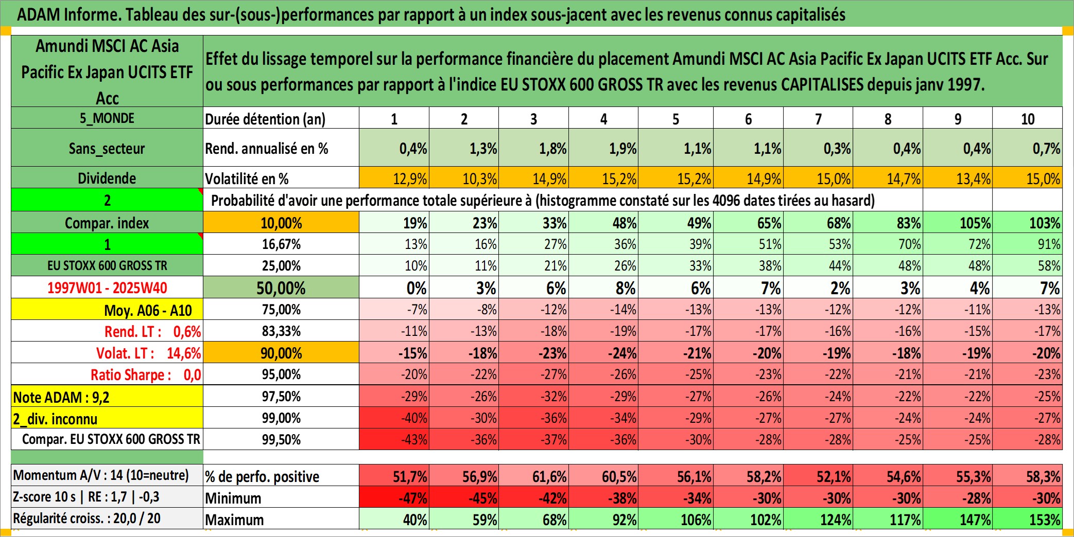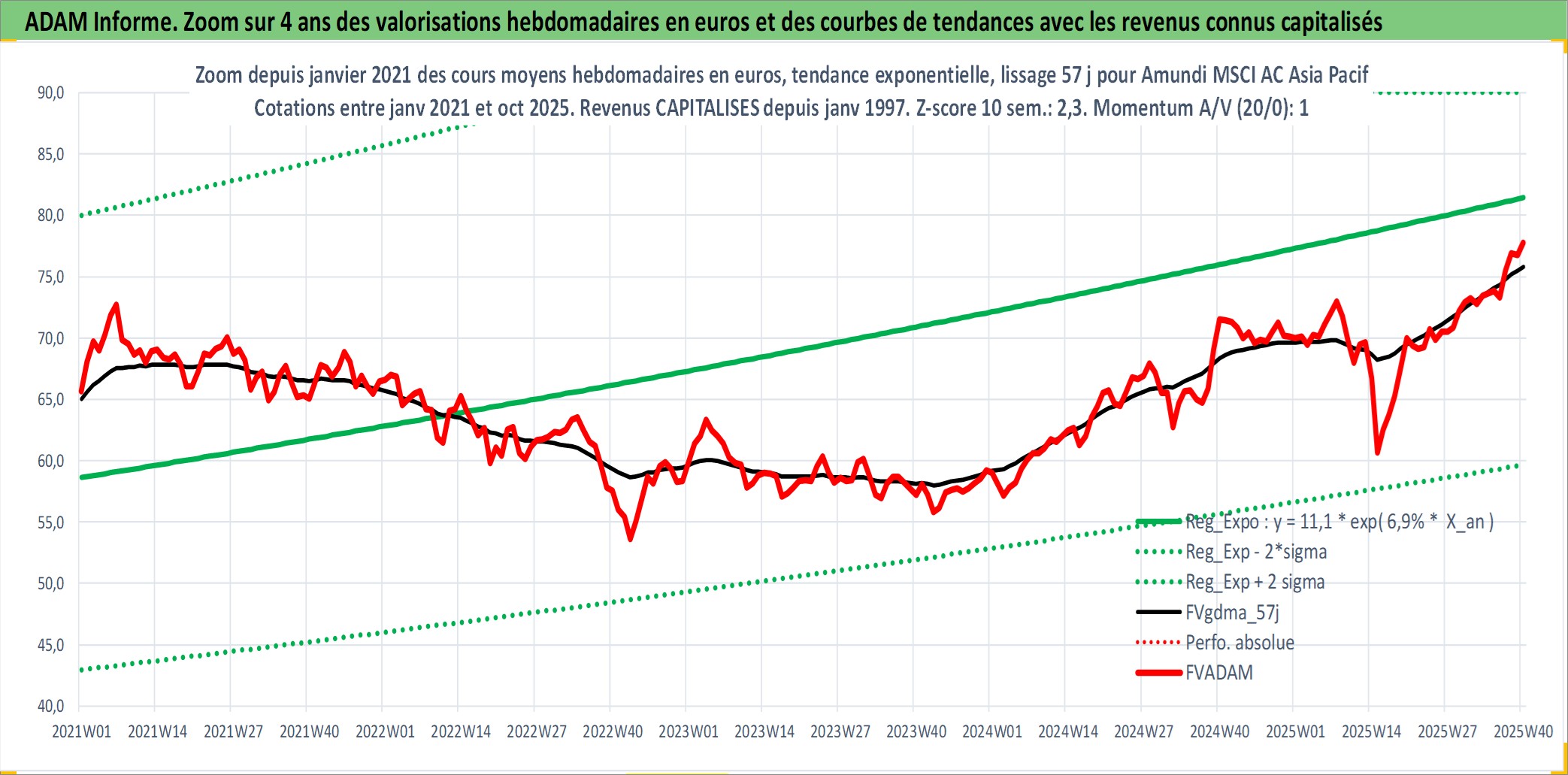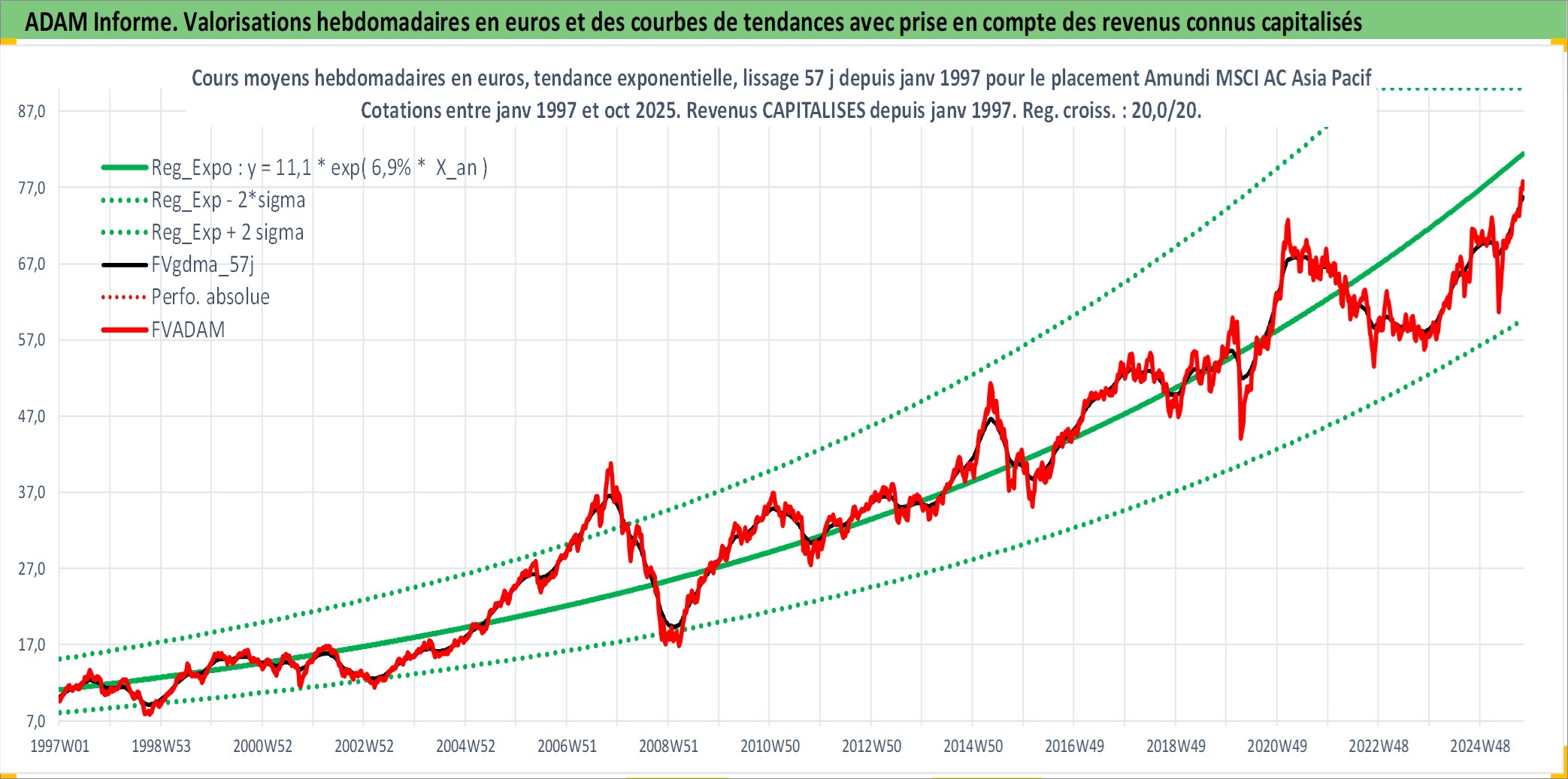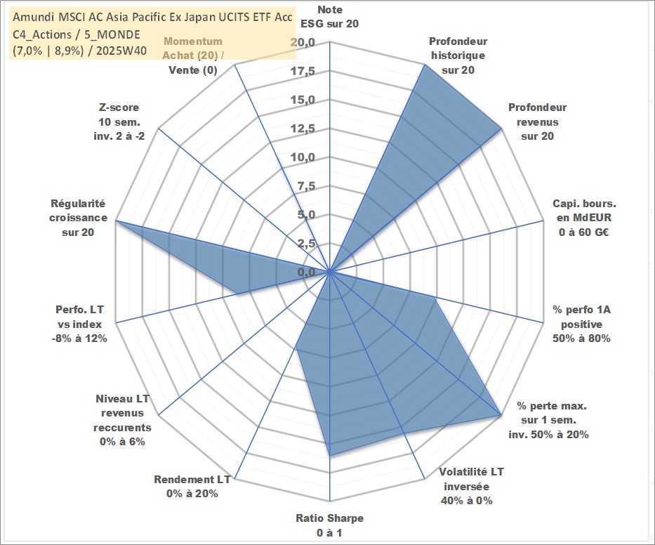 Site dédié aux investisseursPage dédiée sur site financeAnalyse des valorisations hebdomadaires du fonds Amundi MSCI AC Asia Pacific Ex Japan UCITS ETF Acc. Cet actif est cote en EUR. Les valorisations couvrent les semaines 1997W01 a 2025W40. Les revenus de cet actif financier sont pris en compte depuis la semaine 1997W01. La note ESG de cet actif n'est pas connue.