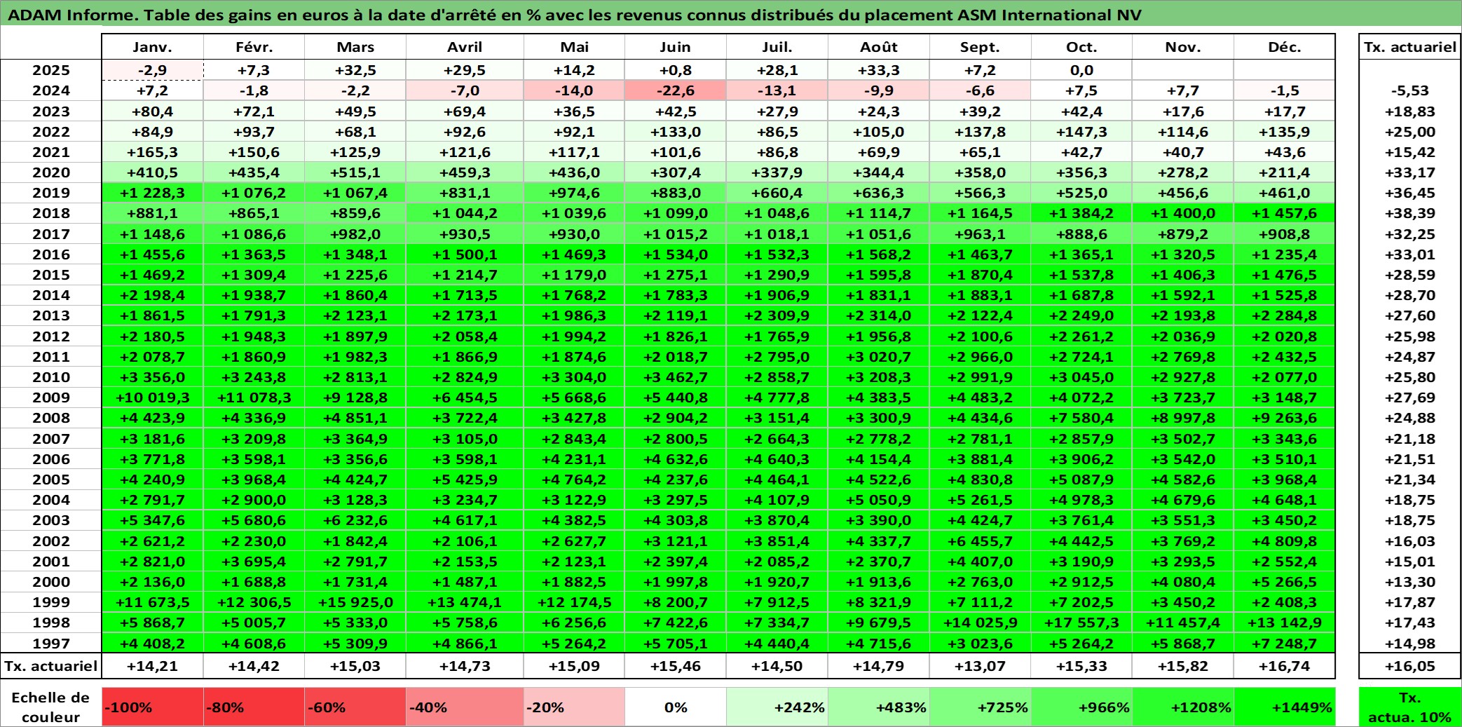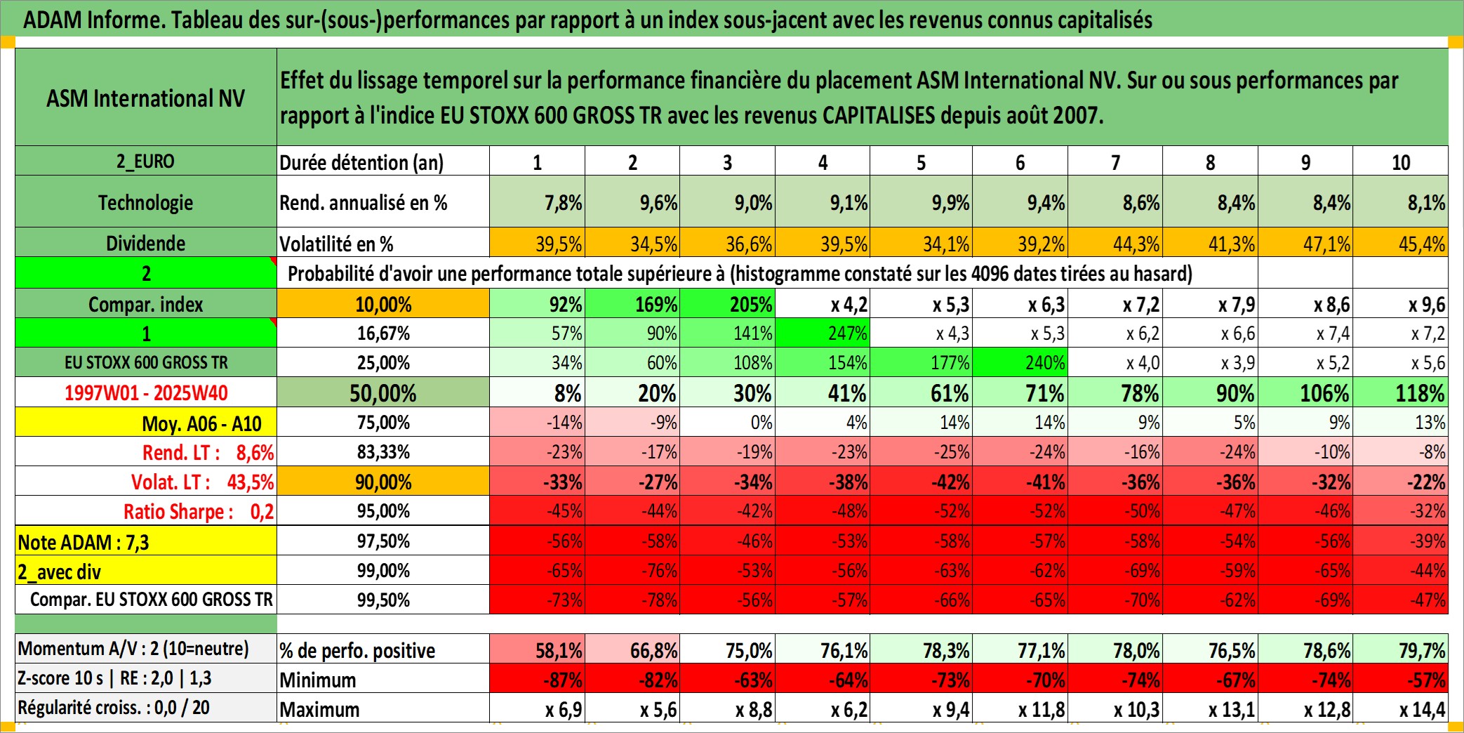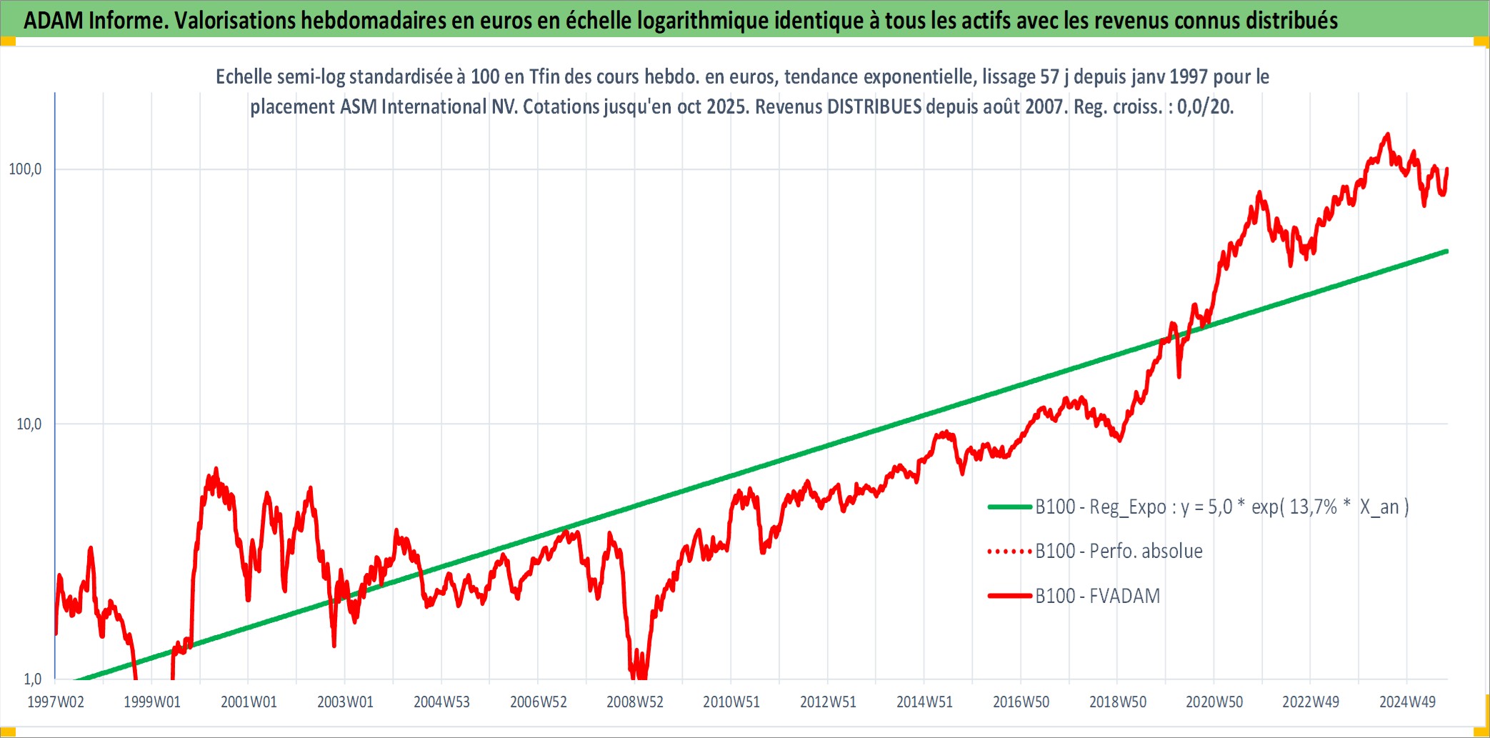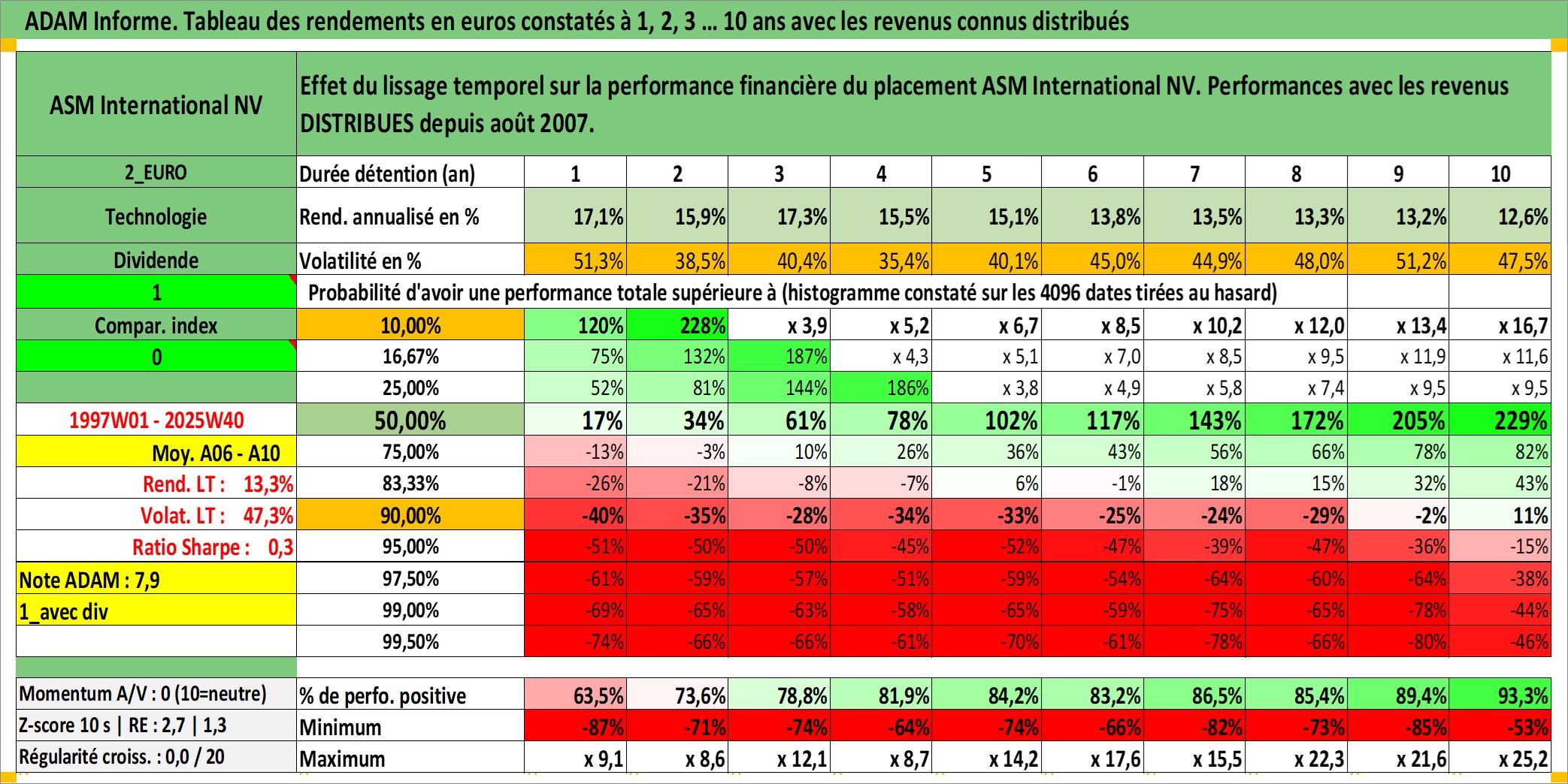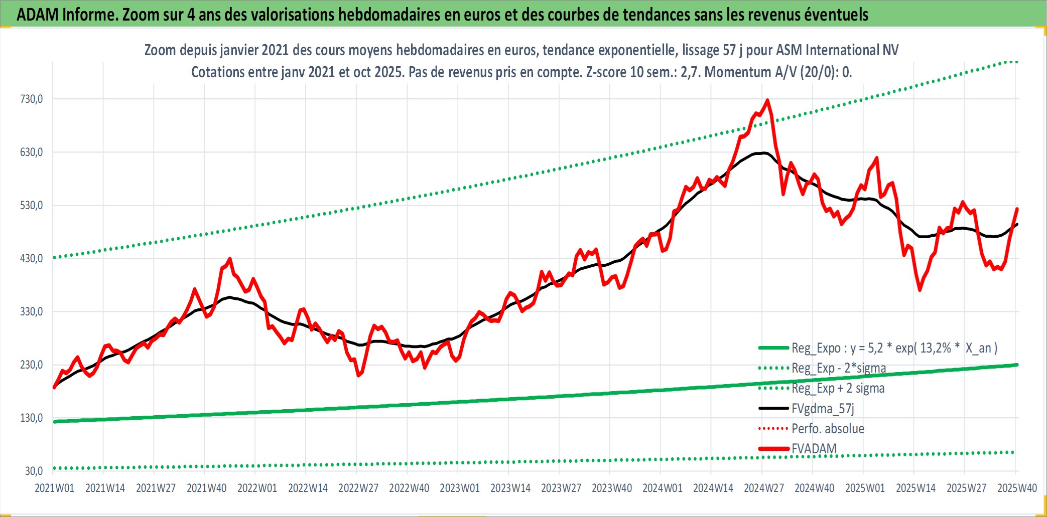 Site dédié aux investisseursPage dédiée sur site financeAnalyse des valorisations hebdomadaires de l'action ASM International NV. Cet actif est cote en EUR. Les valorisations couvrent les semaines 1997W01 a 2025W40. Les revenus de cet actif financier sont pris en compte depuis la semaine 2007W31. La note ESG de cet actif n'est pas connue.