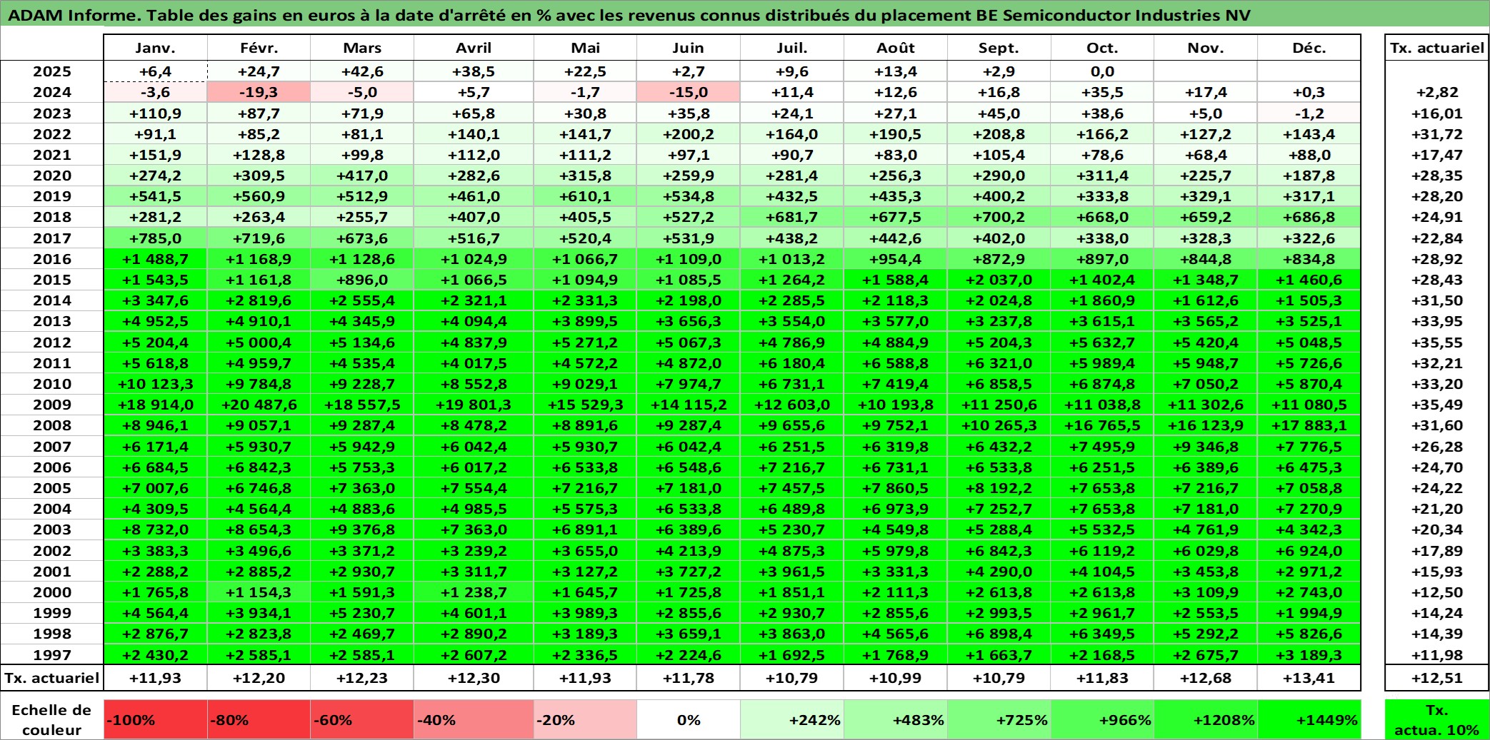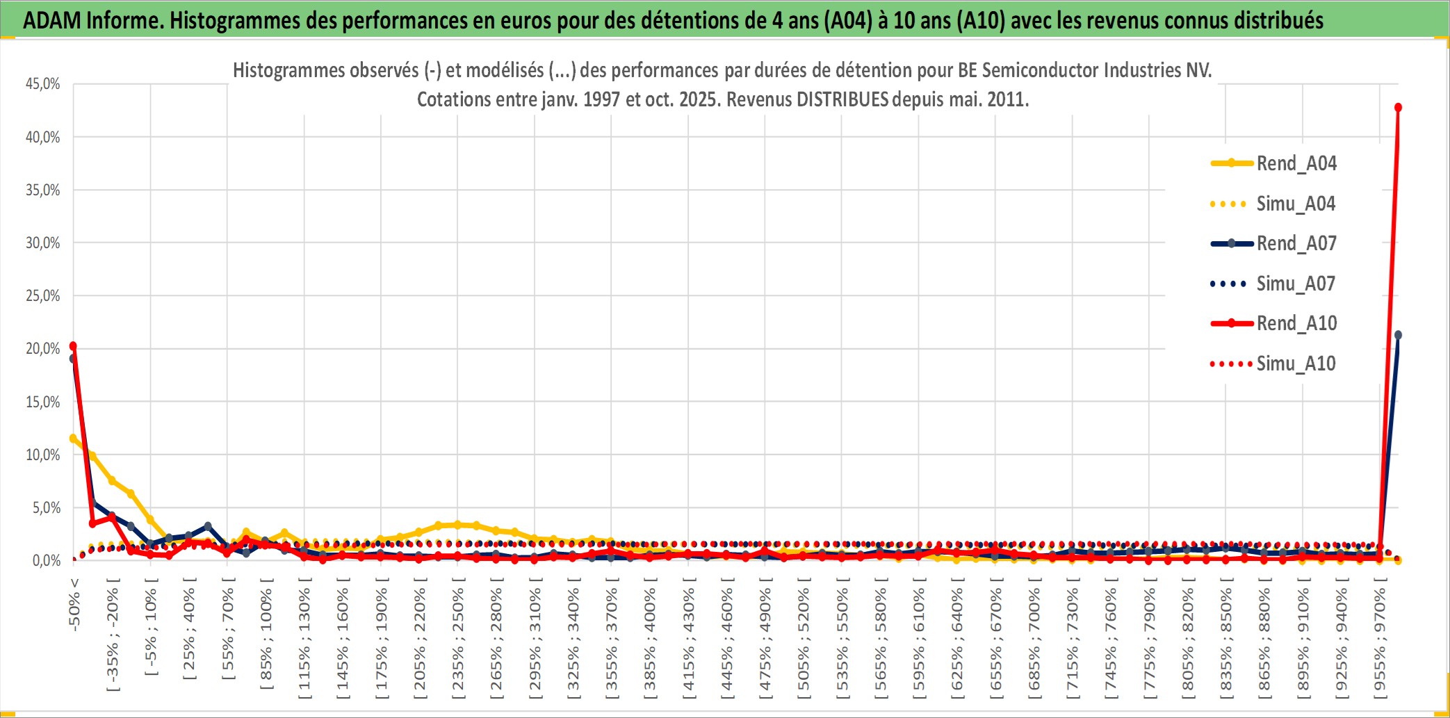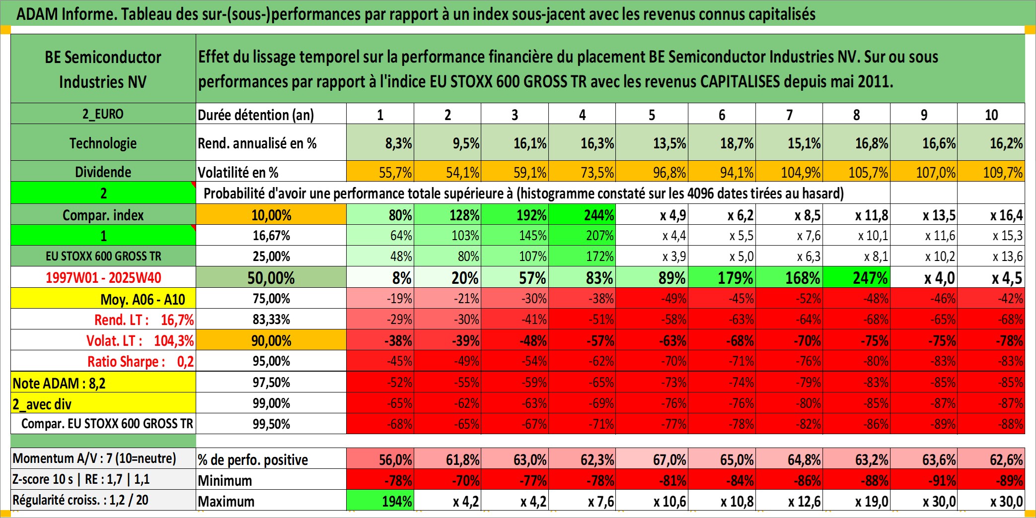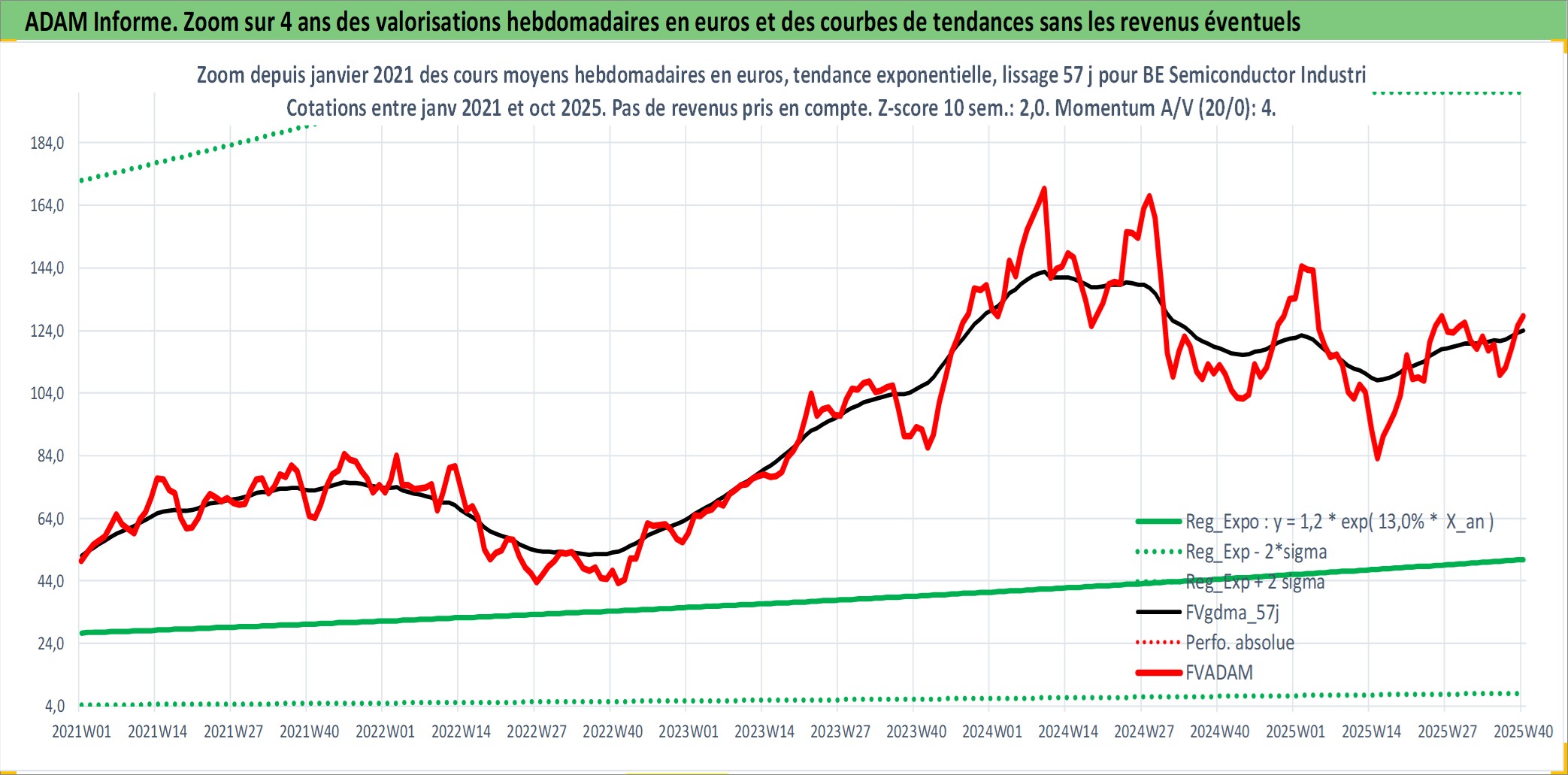 Site dédié aux investisseursPage dédiée sur site financeAnalyse des valorisations hebdomadaires de l'action BE Semiconductor Industries NV. Cet actif est cote en EUR. Les valorisations couvrent les semaines 1997W01 a 2025W40. Les revenus de cet actif financier sont pris en compte depuis la semaine 2011W18. La note ESG de cet actif n'est pas connue.