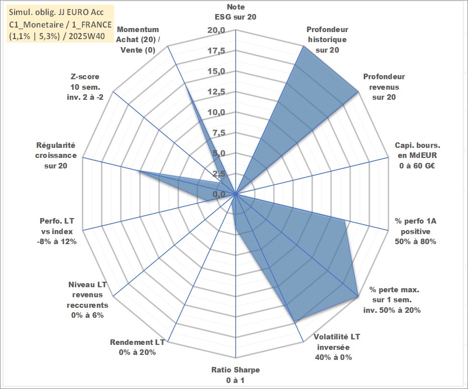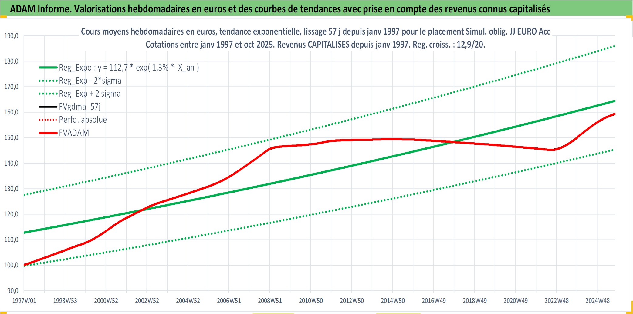 Site dédié aux investisseursPage dédiée sur site financeAnalyse des valorisations hebdomadaires de l'action Simul. oblig. JJ EURO Acc. Cet actif est cote en EUR. Les valorisations couvrent les semaines 1997W01 a 2025W40. Les revenus de cet actif financier sont pris en compte depuis la semaine 1997W01. La note ESG de cet actif n'est pas connue.