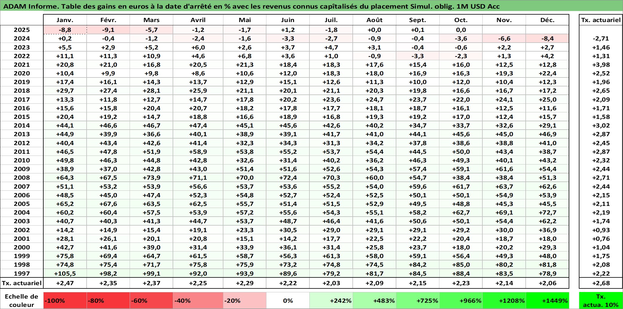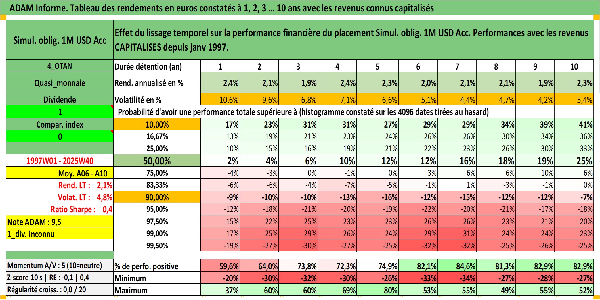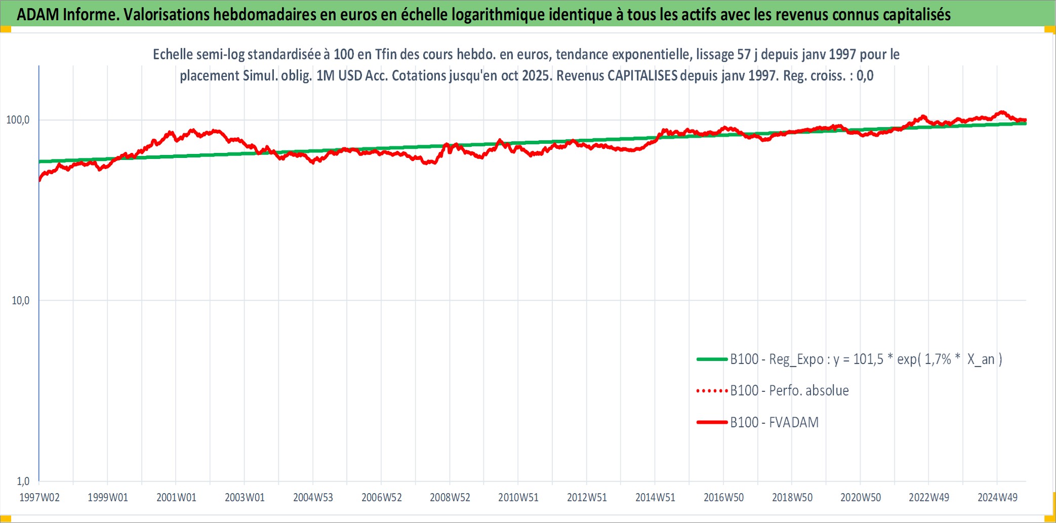 Site dédié aux investisseursPage dédiée sur site financeAnalyse des valorisations hebdomadaires de l'action Simul. oblig. 1M USD Acc. Cet actif est cote en USD. Les valorisations sont en contrevaleur EURO et couvrent les semaines 1997W01 a 2025W40. Les revenus de cet actif financier sont pris en compte depuis la semaine 1997W01. La note ESG de cet actif n'est pas connue.