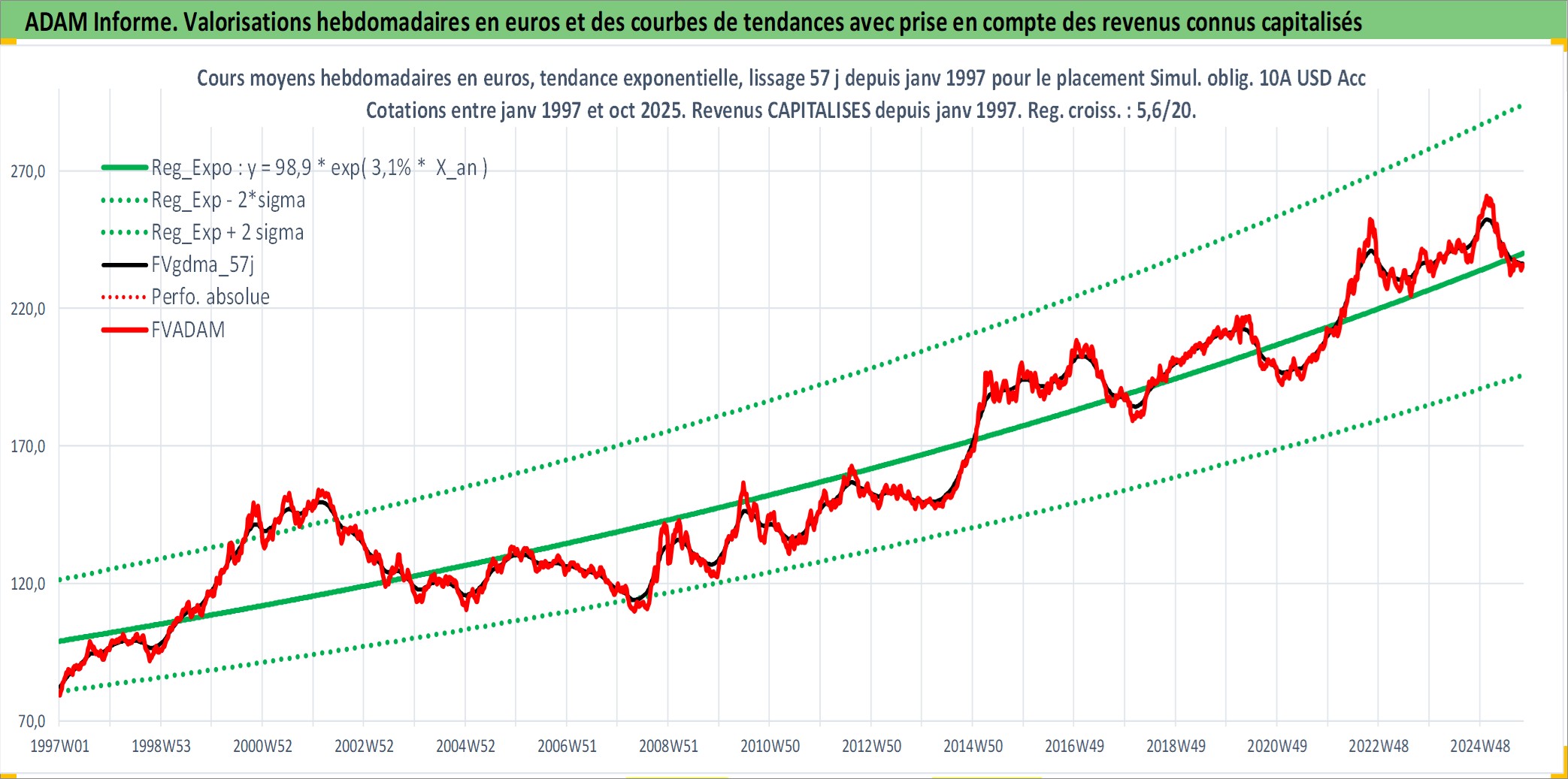 Site dédié aux investisseursPage dédiée sur site financeAnalyse des valorisations hebdomadaires de l'action Simul. oblig. 10A USD Acc. Cet actif est cote en USD. Les valorisations sont en contrevaleur EURO et couvrent les semaines 1997W01 a 2025W40. Les revenus de cet actif financier sont pris en compte depuis la semaine 1997W01. La note ESG de cet actif n'est pas connue.