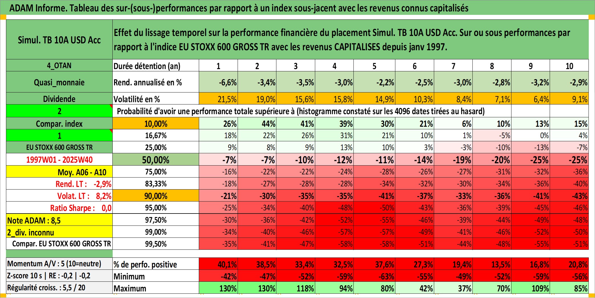 Site dédié aux investisseursPage dédiée sur site financeAnalyse des valorisations hebdomadaires de l'action Simul. TB 10A USD Acc. Cet actif est cote en USD. Les valorisations sont en contrevaleur EURO et couvrent les semaines 1997W01 a 2025W40. Les revenus de cet actif financier sont pris en compte depuis la semaine 1997W01. La note ESG de cet actif n'est pas connue.