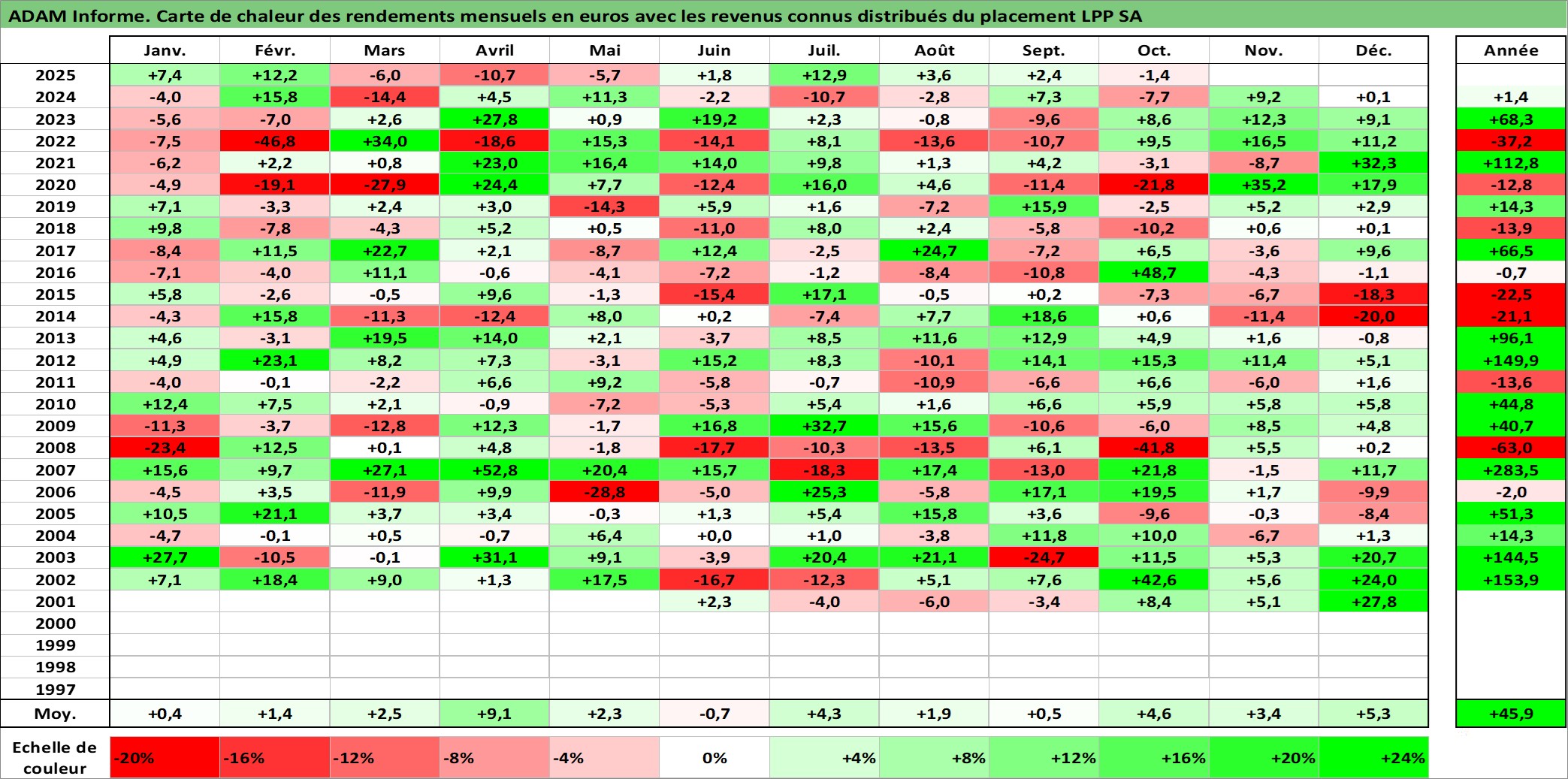 Site dédié aux investisseursPage dédiée sur site financeAnalyse des valorisations hebdomadaires de l'action LPP SA. Cet actif est cote en PLN. Les valorisations sont en contrevaleur EURO et couvrent les semaines 2001W20 a 2025W40. Les revenus de cet actif financier sont pris en compte depuis la semaine 2010W37. La note ESG de cet actif n'est pas connue.