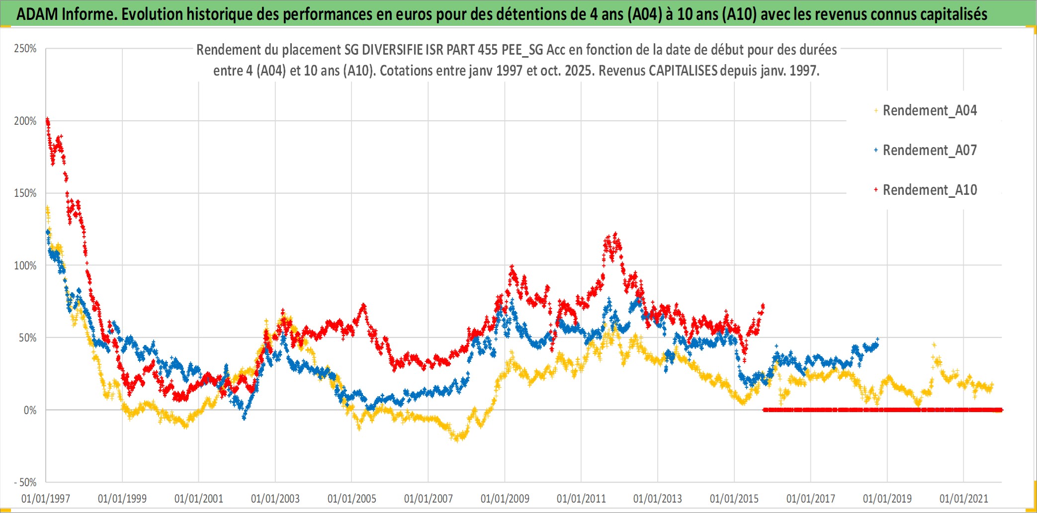 Site dédié aux investisseursPage dédiée sur site financeAnalyse des valorisations hebdomadaires du fonds SG DIVERSIFIE ISR PART 455 PEE_SG Acc. Cet actif est cote en EUR. Les valorisations couvrent les semaines 1997W01 a 2025W40. Les revenus de cet actif financier sont pris en compte depuis la semaine 1997W01. La note ESG de cet actif n'est pas connue.