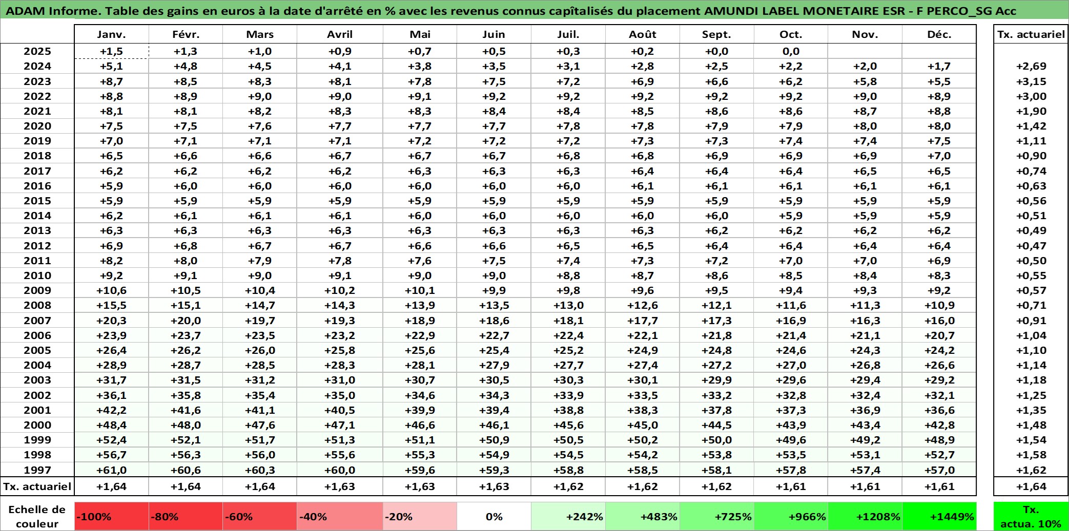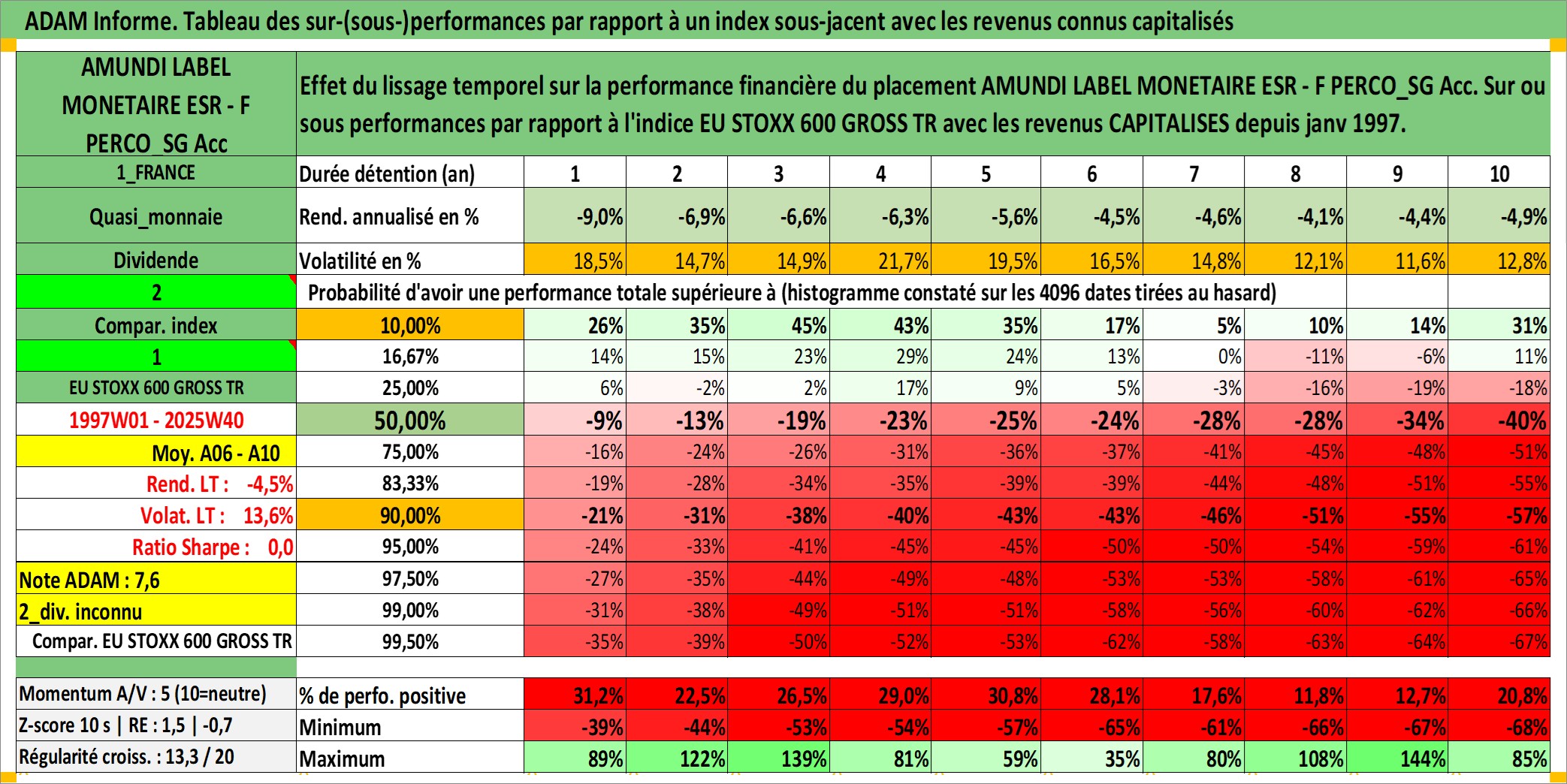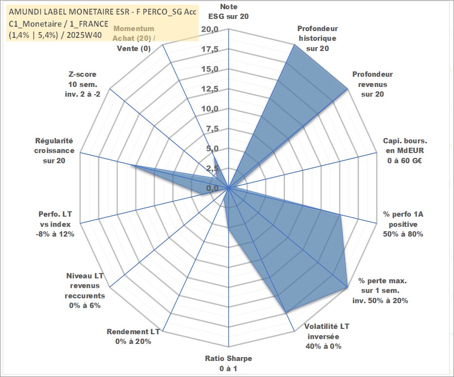 Site dédié aux investisseursPage dédiée sur site financeAnalyse des valorisations hebdomadaires du fonds AMUNDI LABEL MONETAIRE ESR - F PERCO_SG Acc. Cet actif est cote en EUR. Les valorisations couvrent les semaines 1997W01 a 2025W40. Les revenus de cet actif financier sont pris en compte depuis la semaine 1997W01. La note ESG de cet actif n'est pas connue.