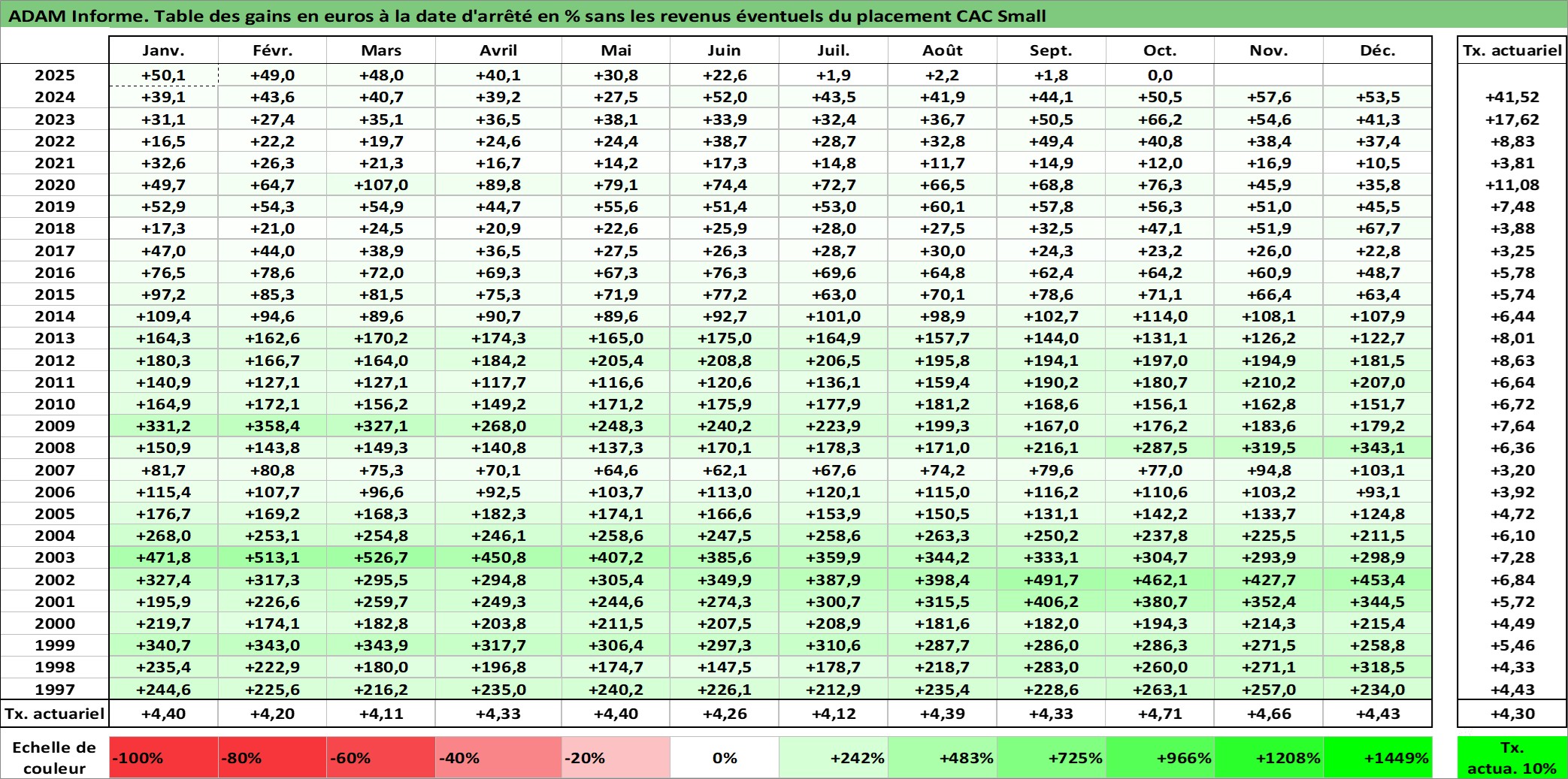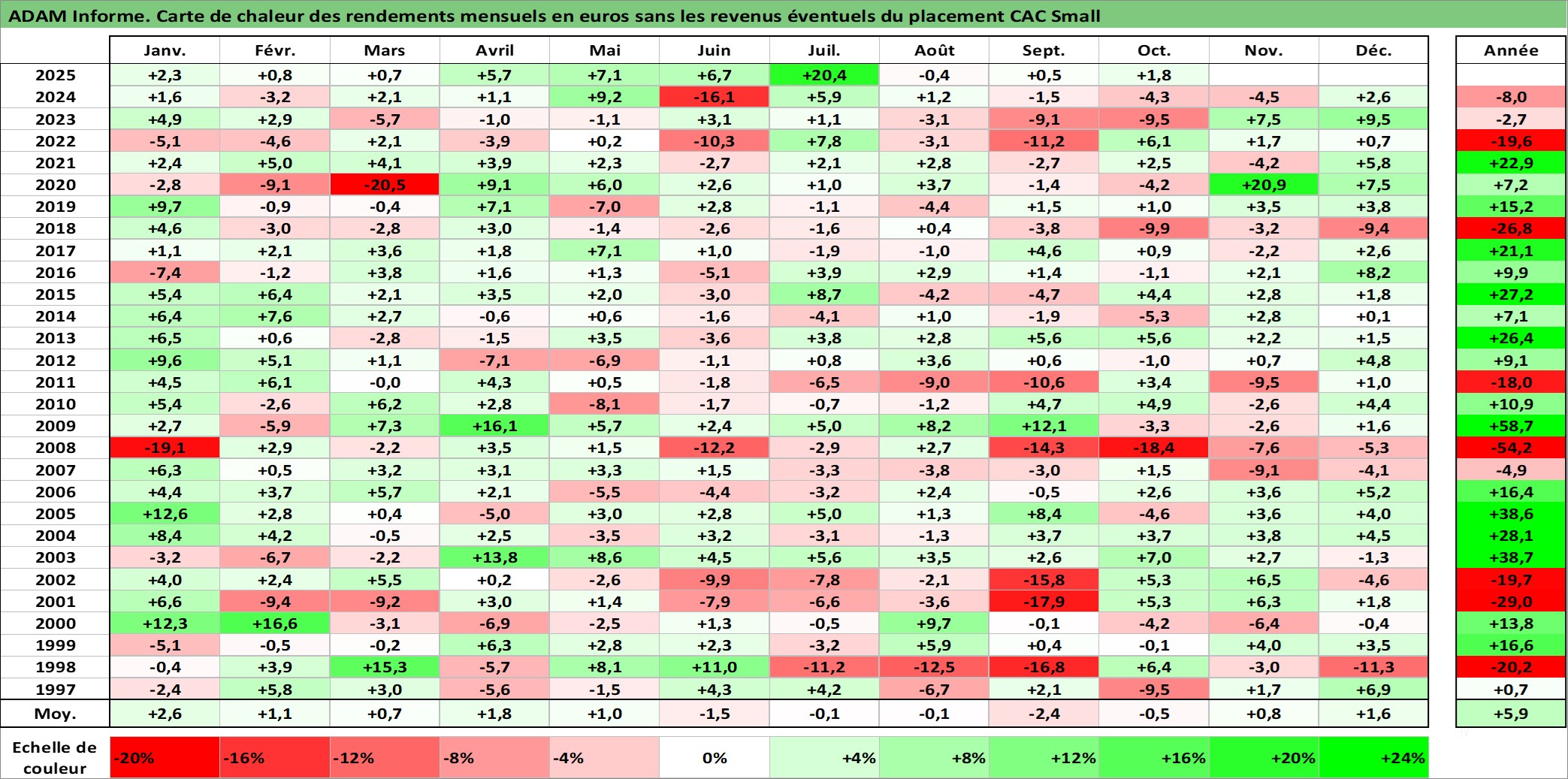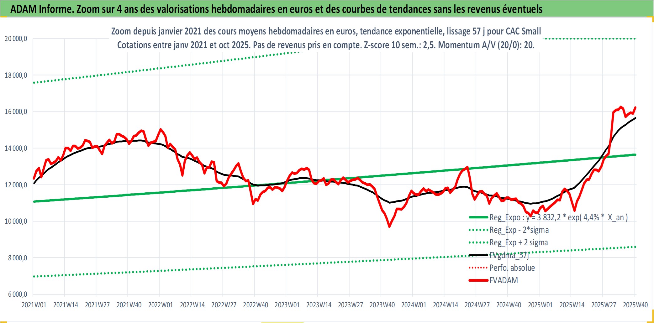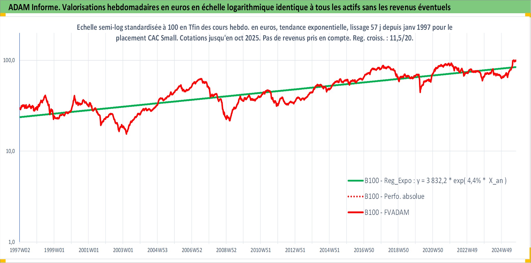 Site dédié aux investisseursPage dédiée sur site financeAnalyse des valorisations hebdomadaires de l'actif CAC Small. Cet actif est cote en EUR. Les valorisations couvrent les semaines 1997W01 a 2025W40. Les revenus de cet actif financier ne sont pas connus car non existants ou non disponibles sur le site Yahoo Finance. La note ESG de cet actif n'est pas connue.