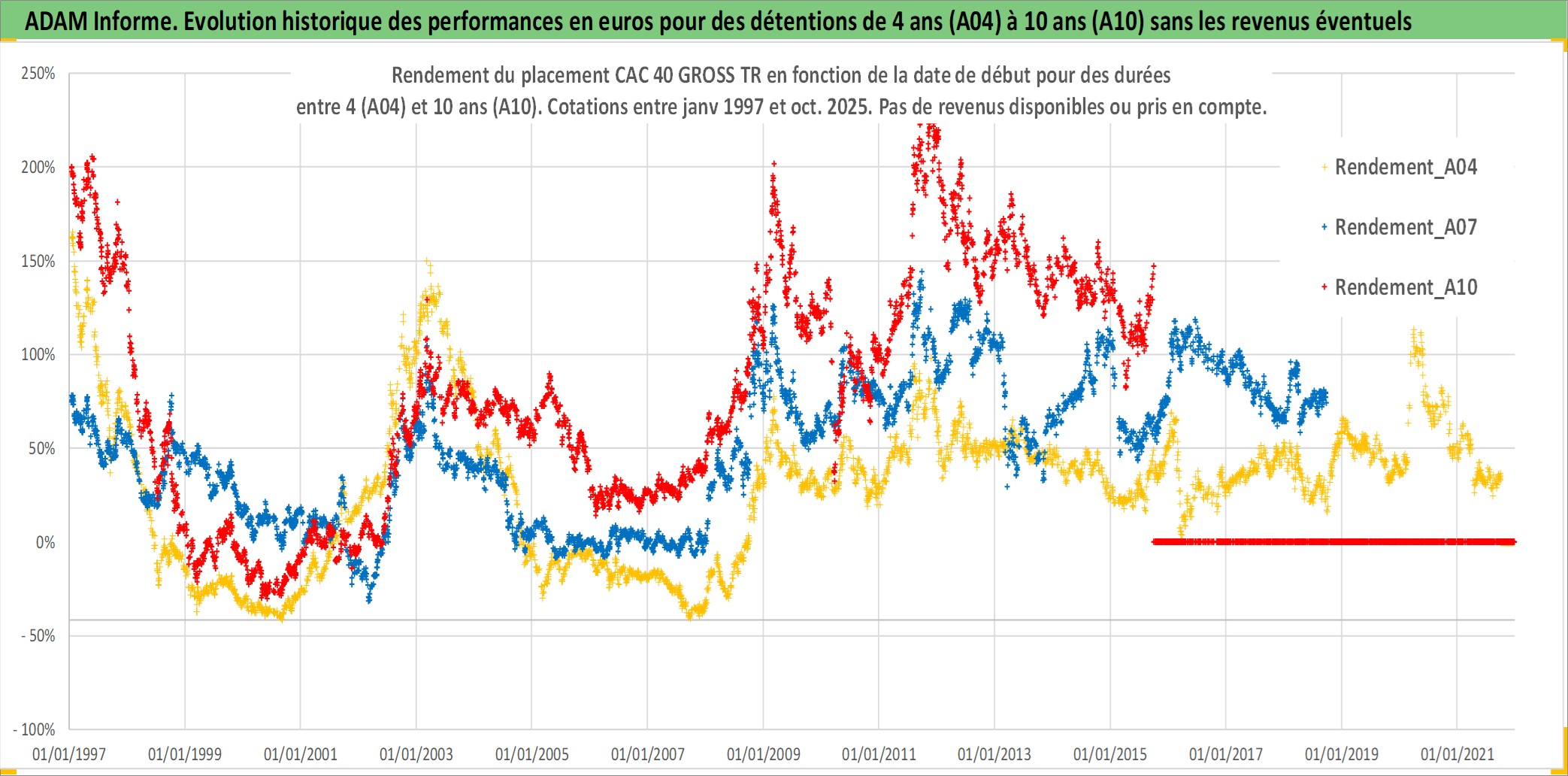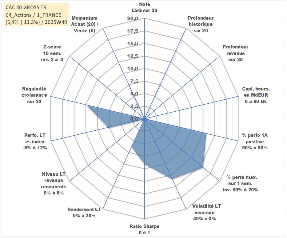 Site dédié aux investisseursPage dédiée sur site financeAnalyse des valorisations hebdomadaires de l'actif CAC 40 GROSS TR. Cet actif est cote en EUR. Les valorisations couvrent les semaines 1997W01 a 2025W40. Les revenus de cet actif financier ne sont pas connus car non existants ou non disponibles sur le site Yahoo Finance. La note ESG de cet actif n'est pas connue.