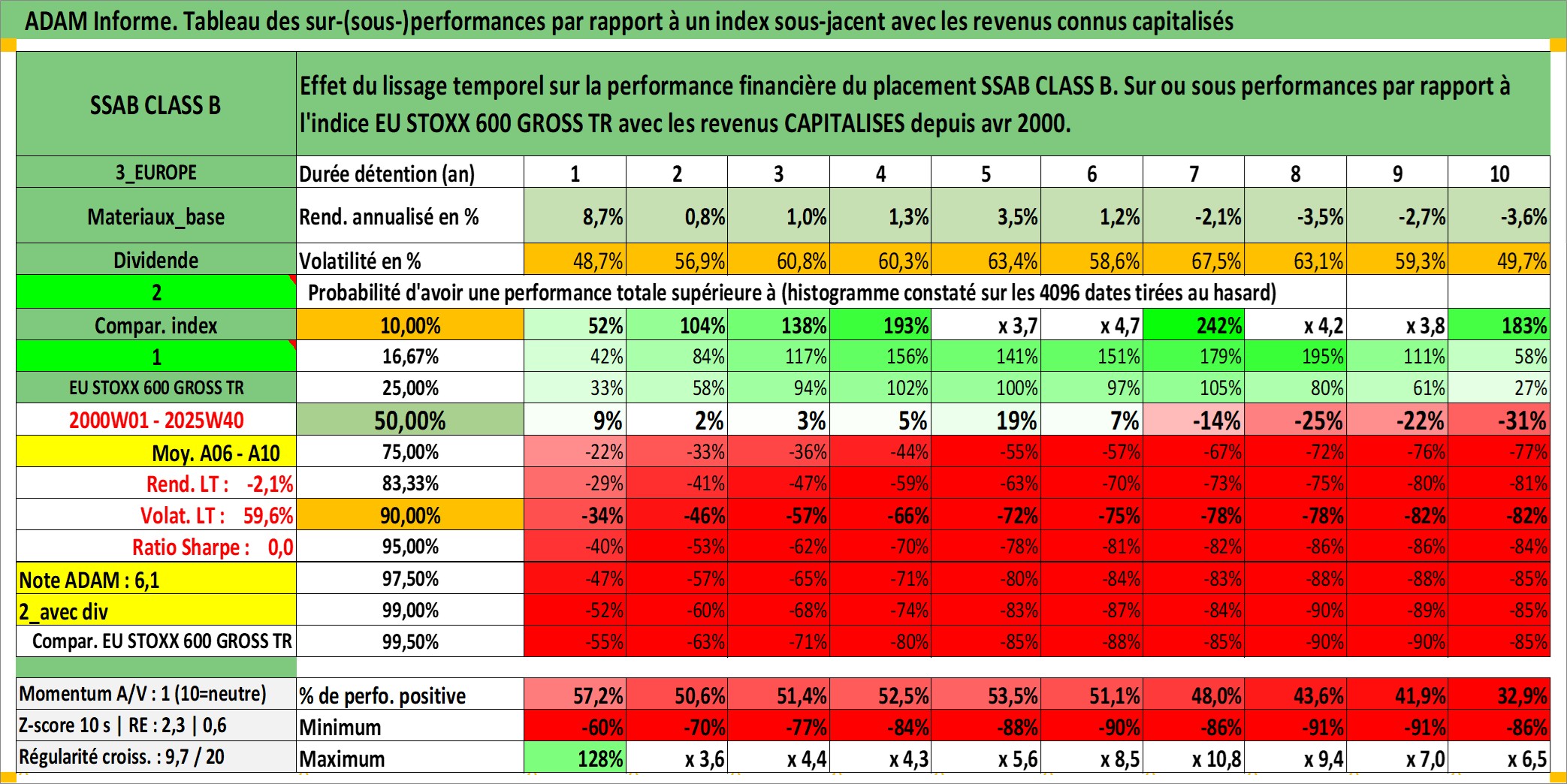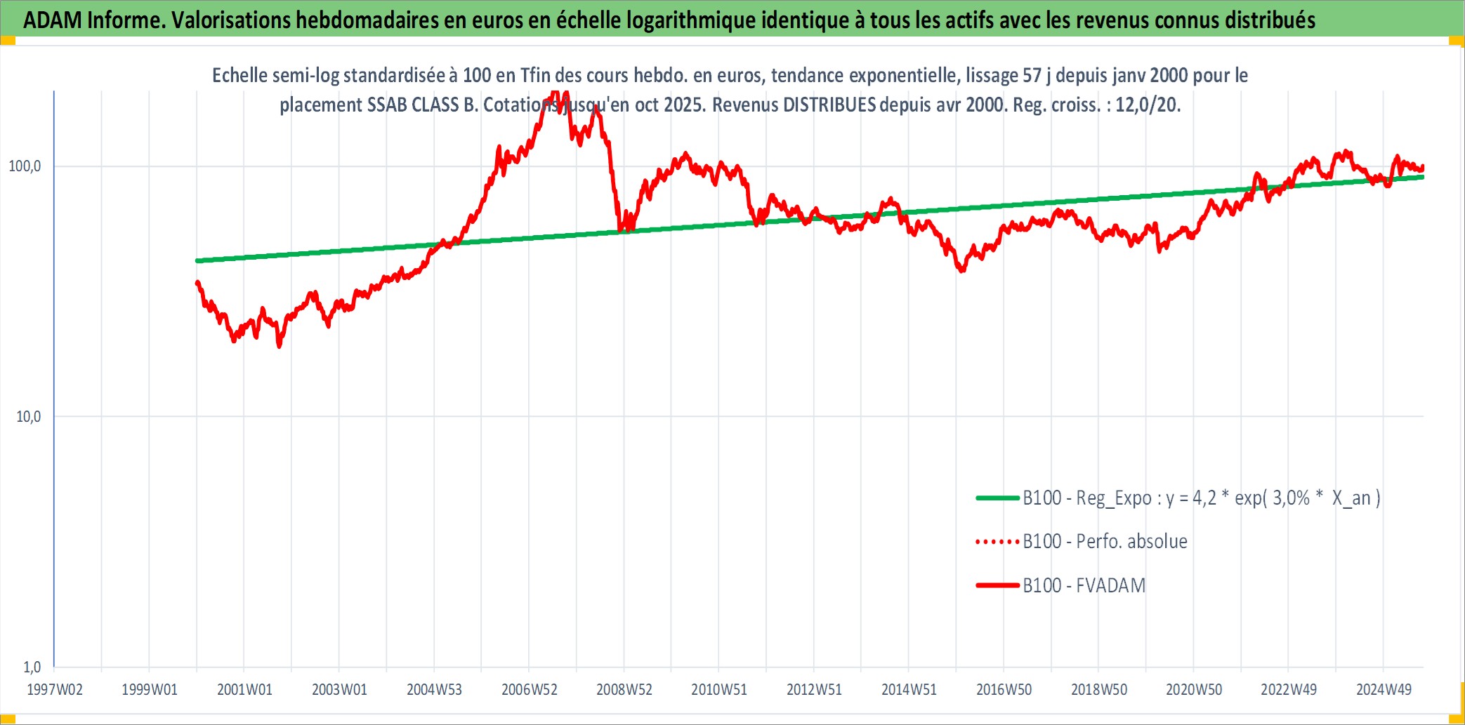 Site dédié aux investisseursPage dédiée sur site financeAnalyse des valorisations hebdomadaires de l'action SSAB CLASS B. Cet actif est cote en SEK. Les valorisations sont en contrevaleur EURO et couvrent les semaines 2000W01 a 2025W40. Les revenus de cet actif financier sont pris en compte depuis la semaine 2000W17. La note ESG de cet actif n'est pas connue.