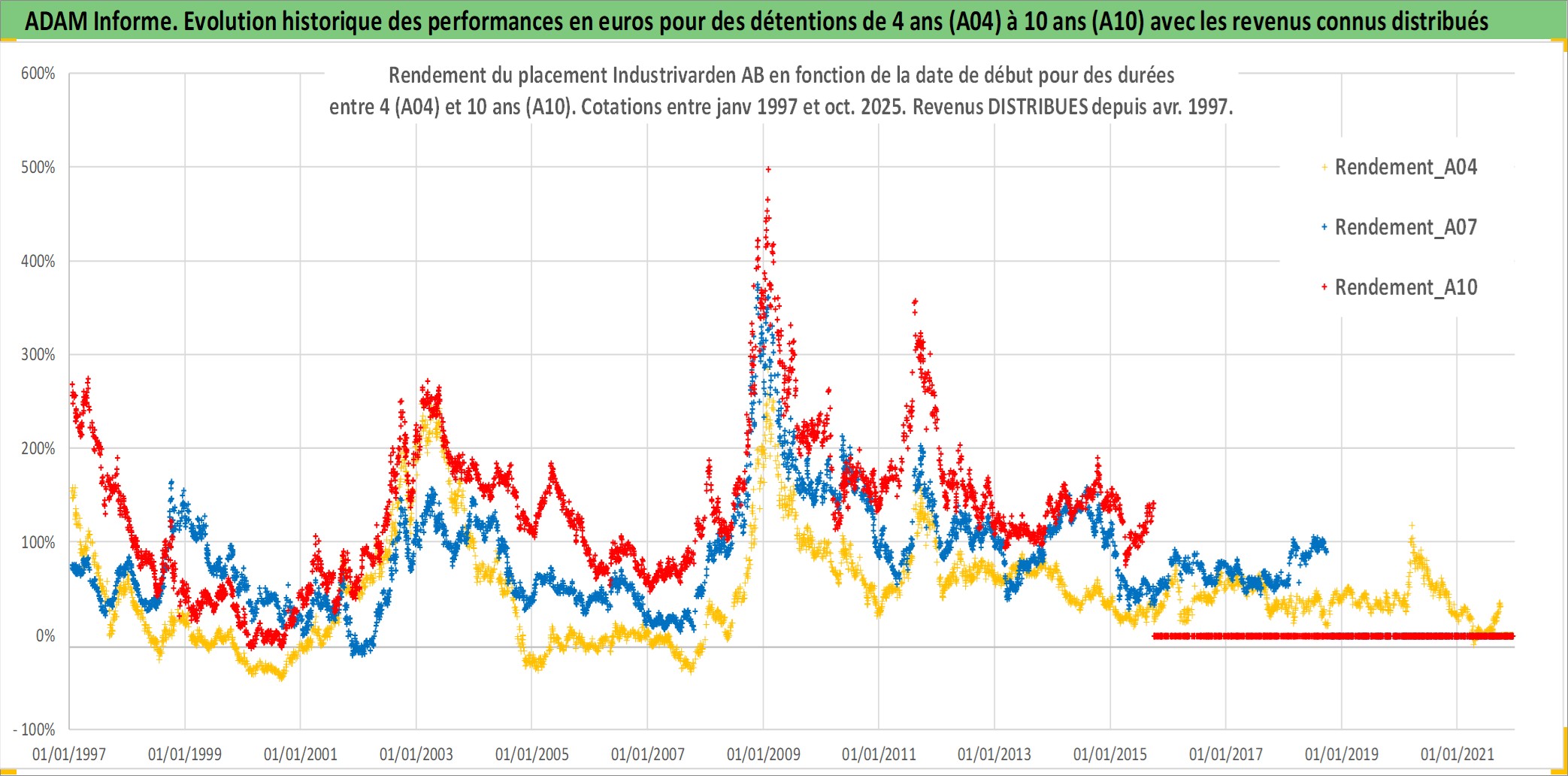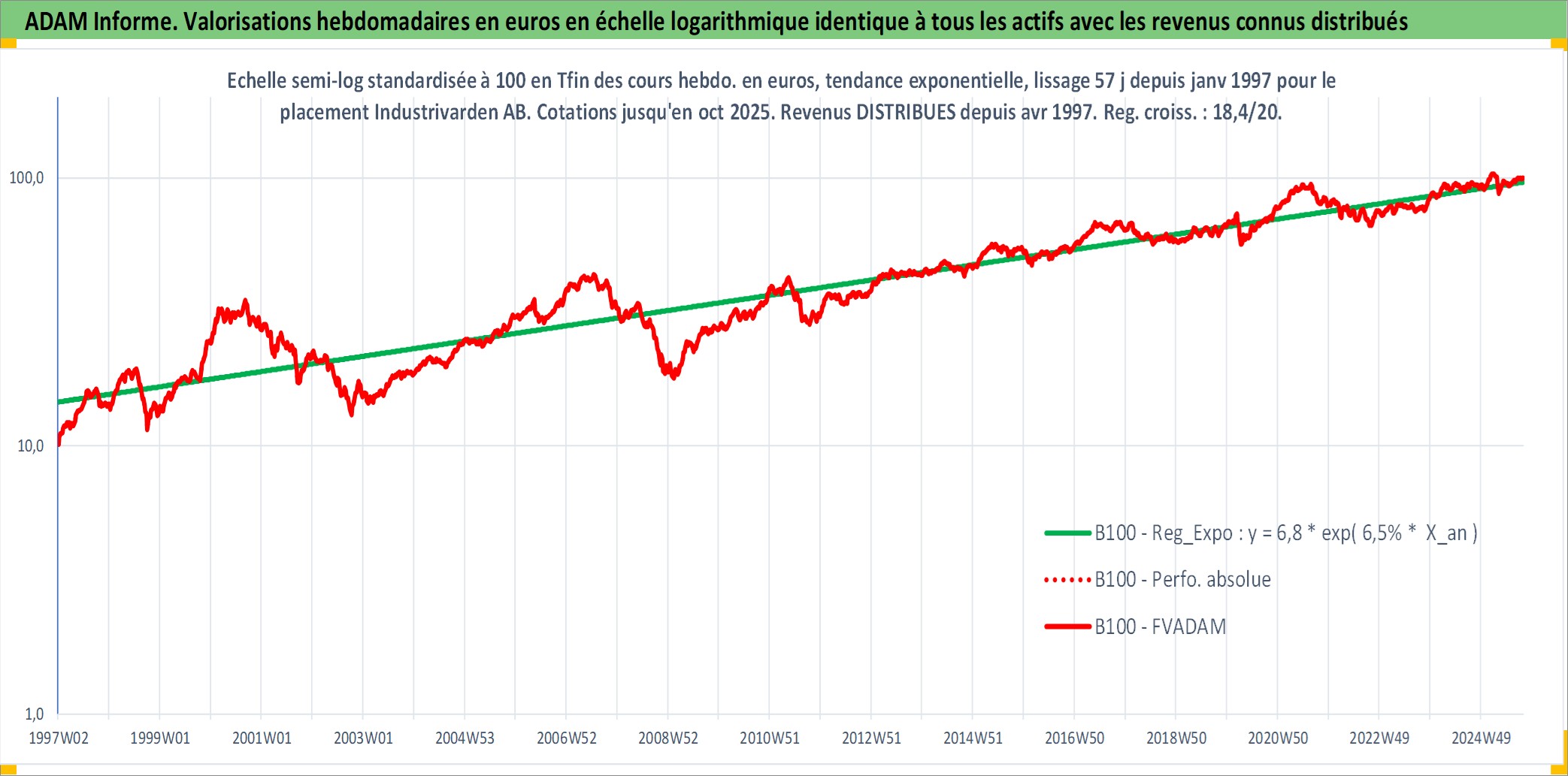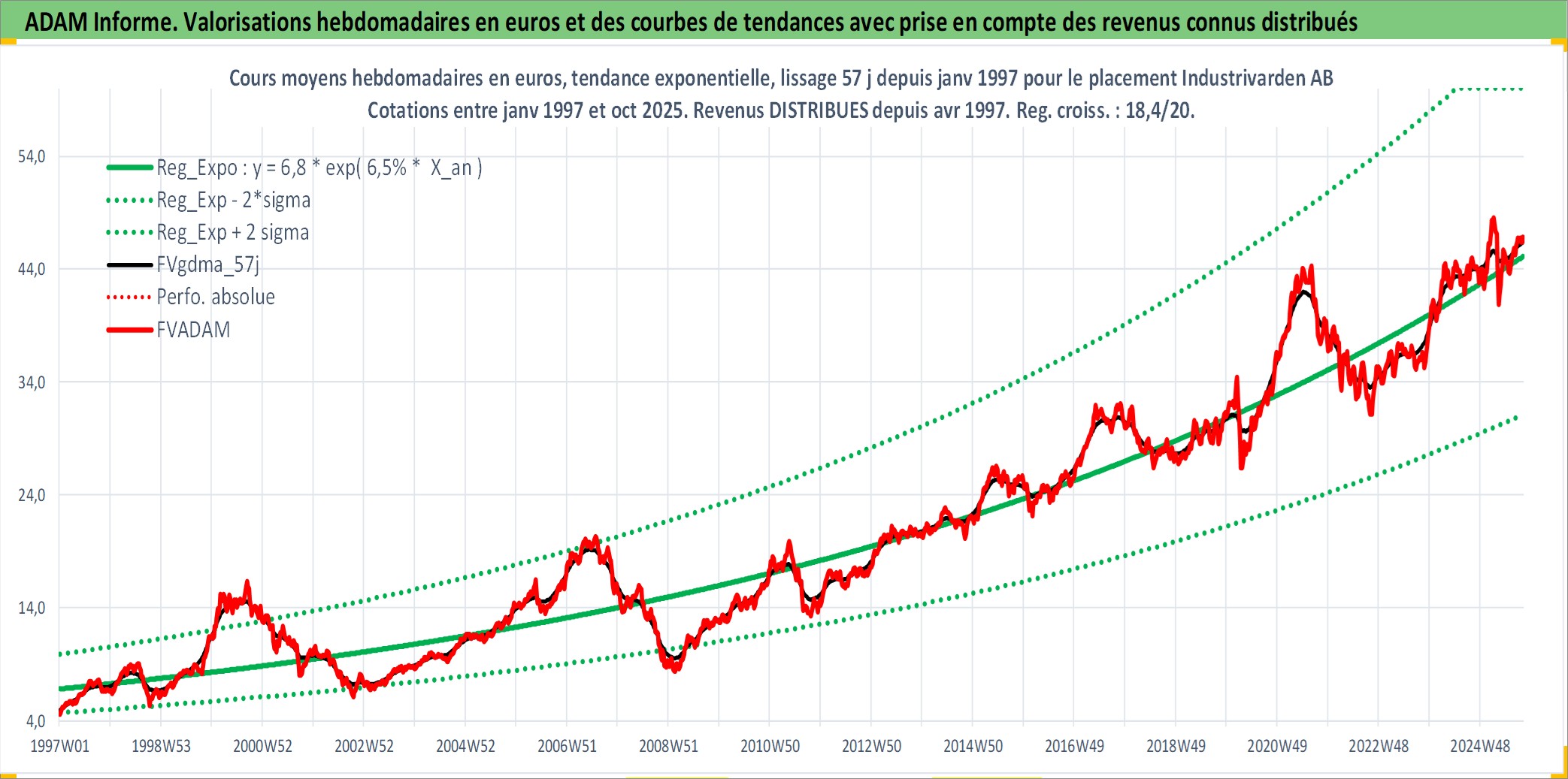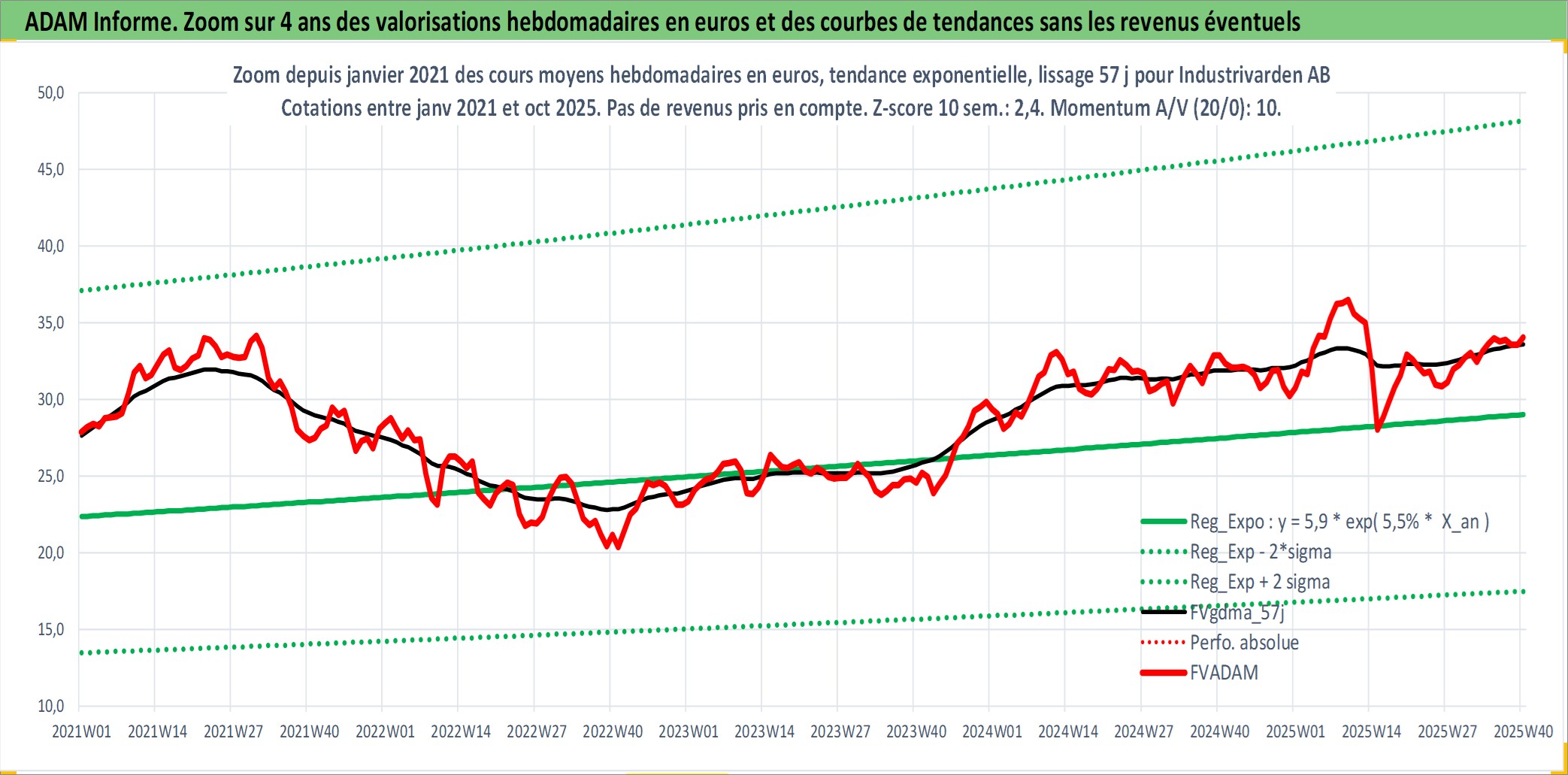 Site dédié aux investisseursPage dédiée sur site financeAnalyse des valorisations hebdomadaires de l'action Industrivarden AB. Cet actif est cote en SEK. Les valorisations sont en contrevaleur EURO et couvrent les semaines 1997W01 a 2025W40. Les revenus de cet actif financier sont pris en compte depuis la semaine 1997W18. La note globale ESG de cet actif est estimee a 15.0 (apres rebasage entre 0 et 20).
