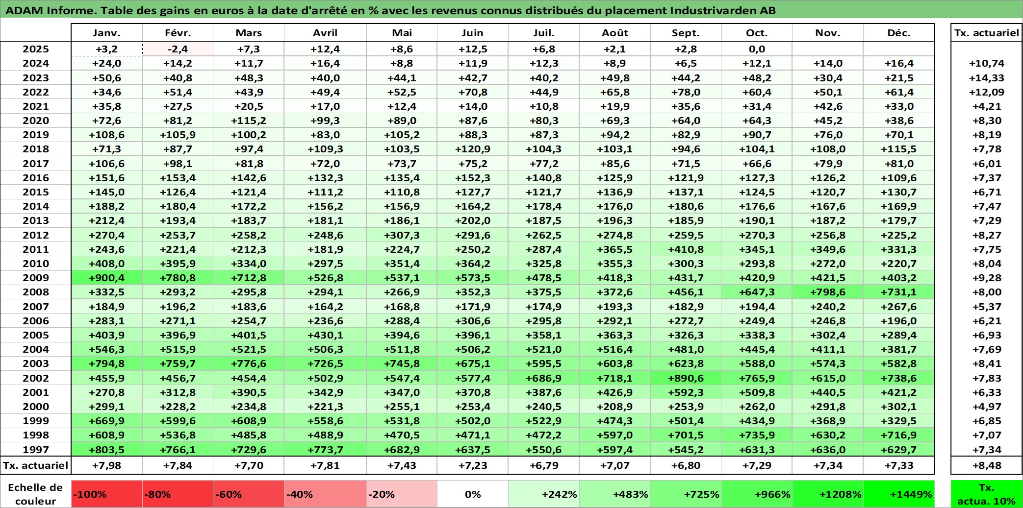 Dernière perfo 1 an en %