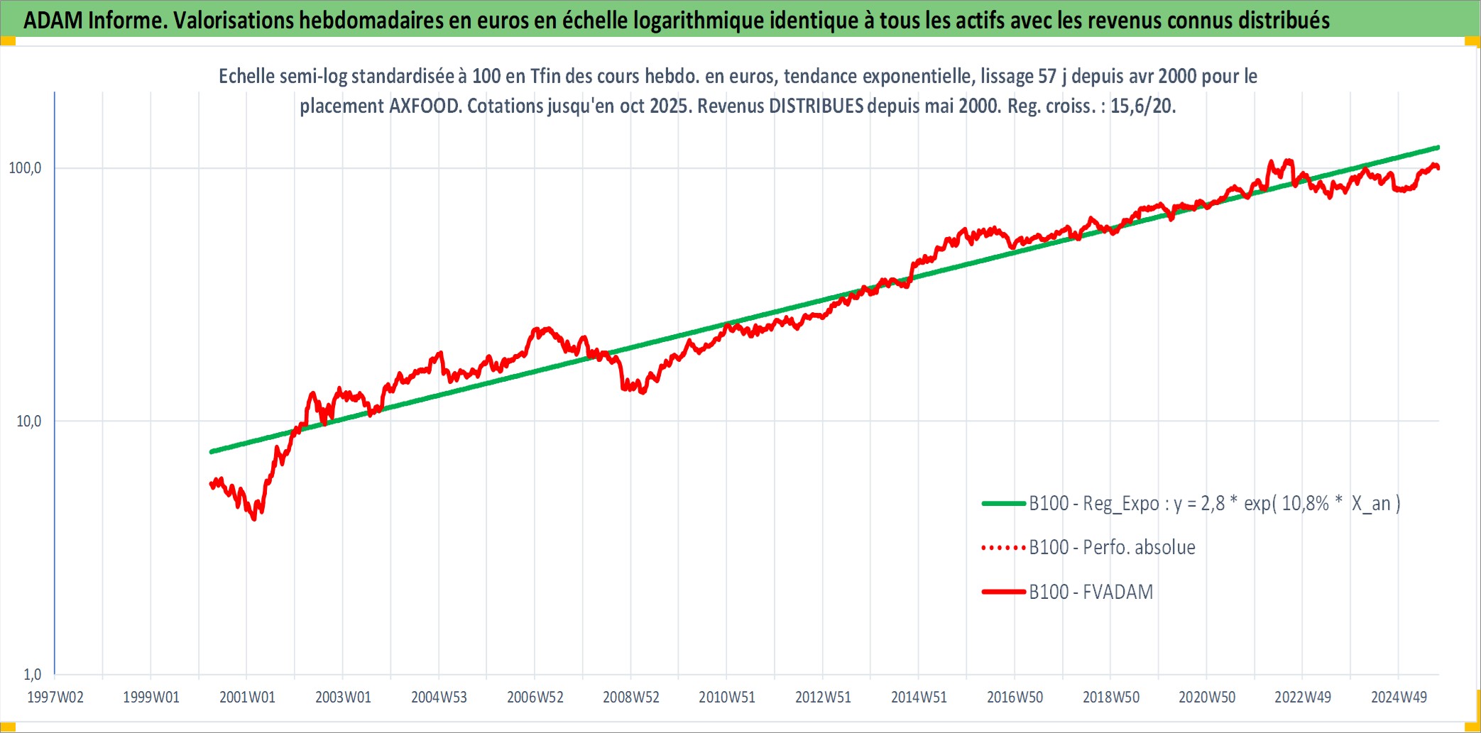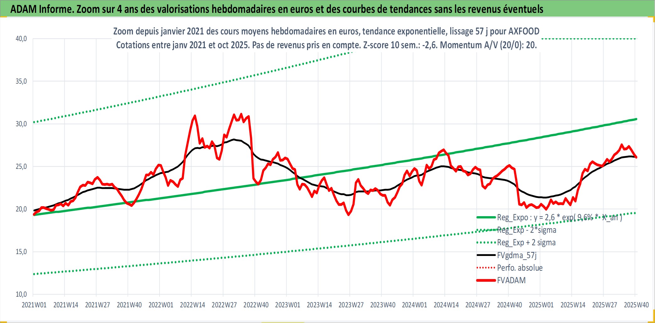 Site dédié aux investisseursPage dédiée sur site financeAnalyse des valorisations hebdomadaires de l'action AXFOOD. Cet actif est cote en SEK. Les valorisations sont en contrevaleur EURO et couvrent les semaines 2000W14 a 2025W40. Les revenus de cet actif financier sont pris en compte depuis la semaine 2000W19. La note ESG de cet actif n'est pas connue.