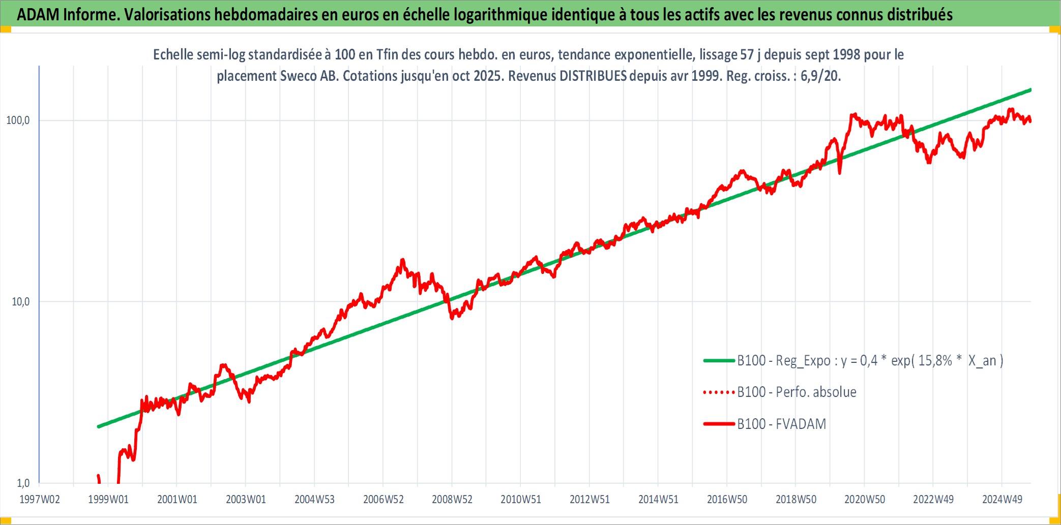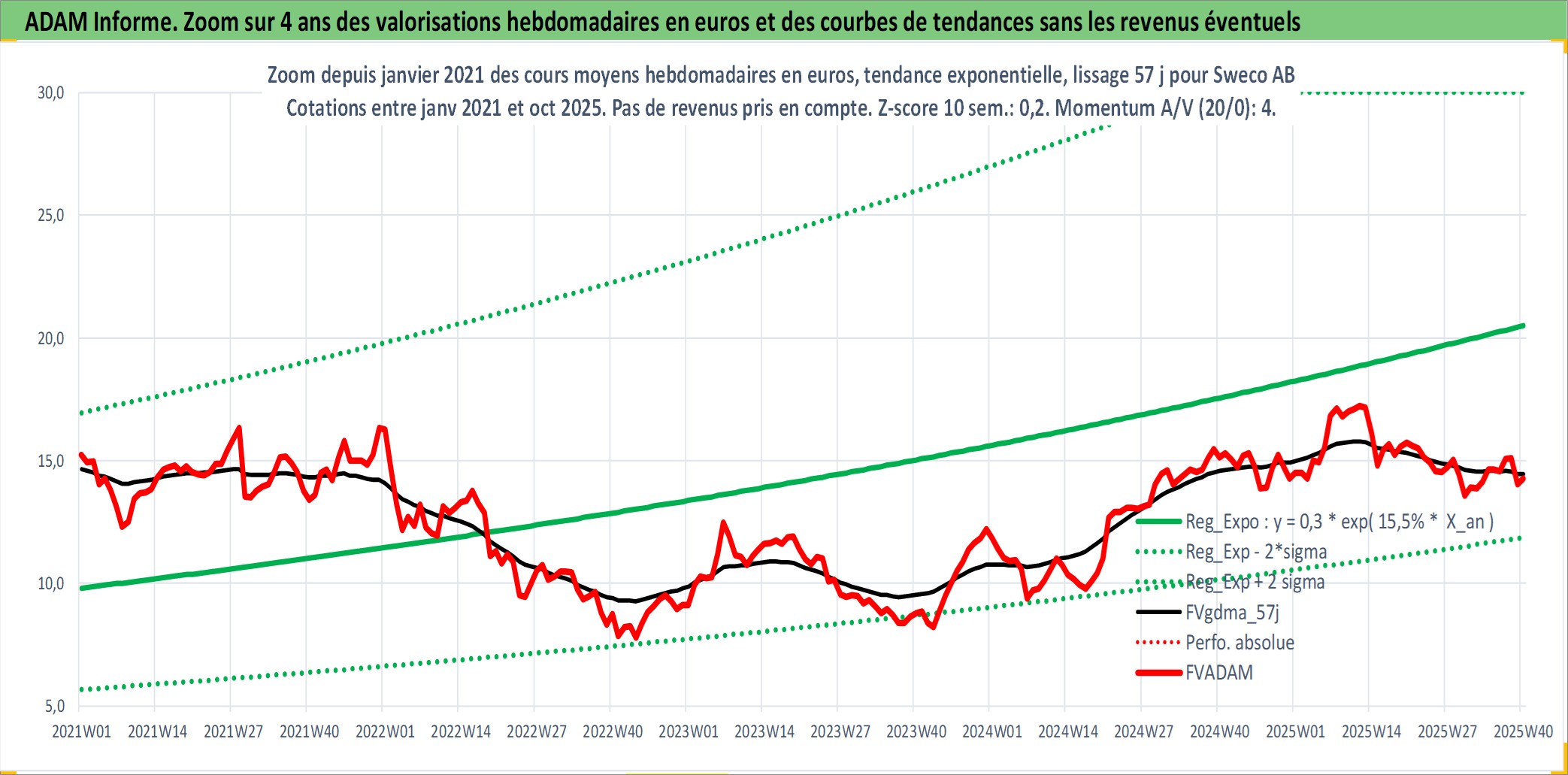 Site dédié aux investisseursPage dédiée sur site financeAnalyse des valorisations hebdomadaires de l'action Sweco AB. Cet actif est cote en SEK. Les valorisations sont en contrevaleur EURO et couvrent les semaines 1998W39 a 2025W40. Les revenus de cet actif financier sont pris en compte depuis la semaine 1999W16. La note ESG de cet actif n'est pas connue.