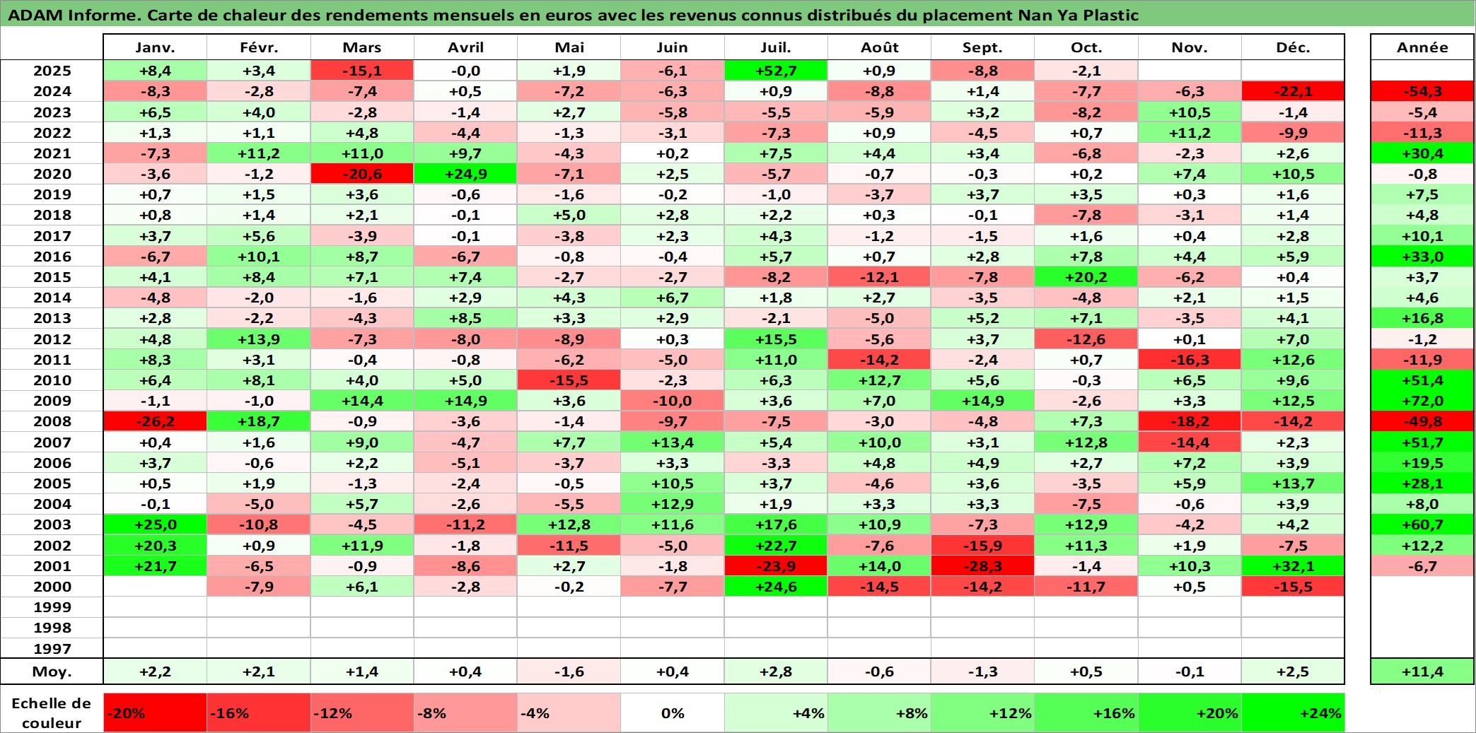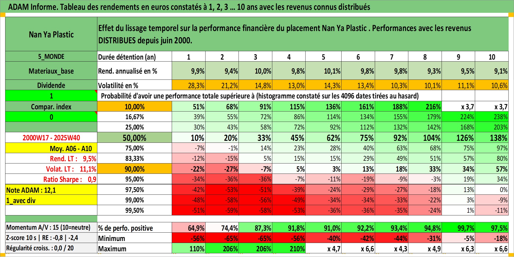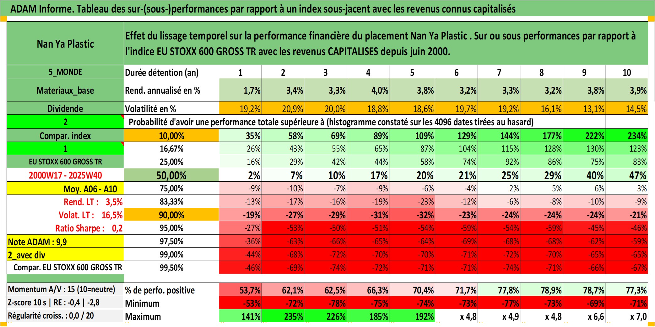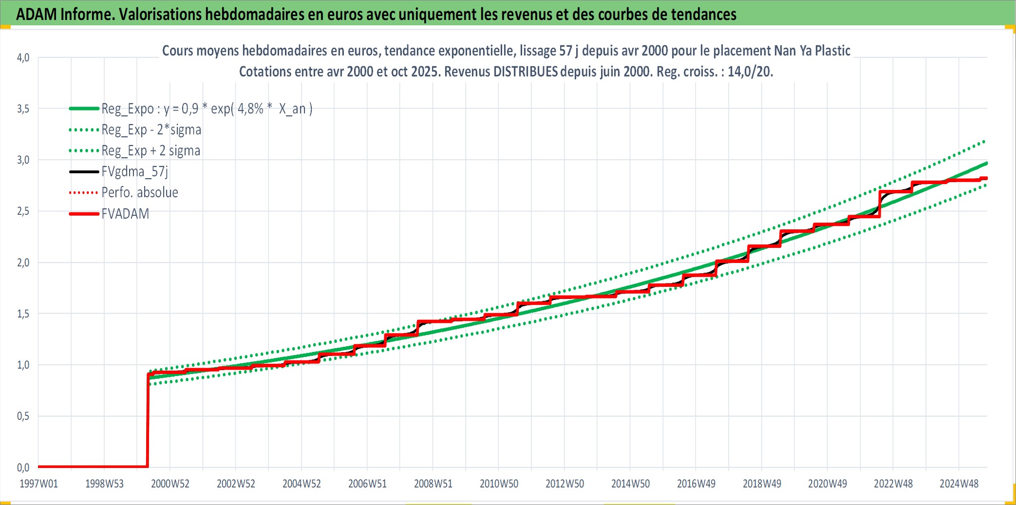 Site dédié aux investisseursPage dédiée sur site financeAnalyse des valorisations hebdomadaires de l'action Nan Ya Plastic . Cet actif est cote en TWD. Les valorisations sont en contrevaleur EURO et couvrent les semaines 2000W17 a 2025W40. Les revenus de cet actif financier sont pris en compte depuis la semaine 2000W26. La note globale ESG de cet actif est estimee a 7.0 (apres rebasage entre 0 et 20).
