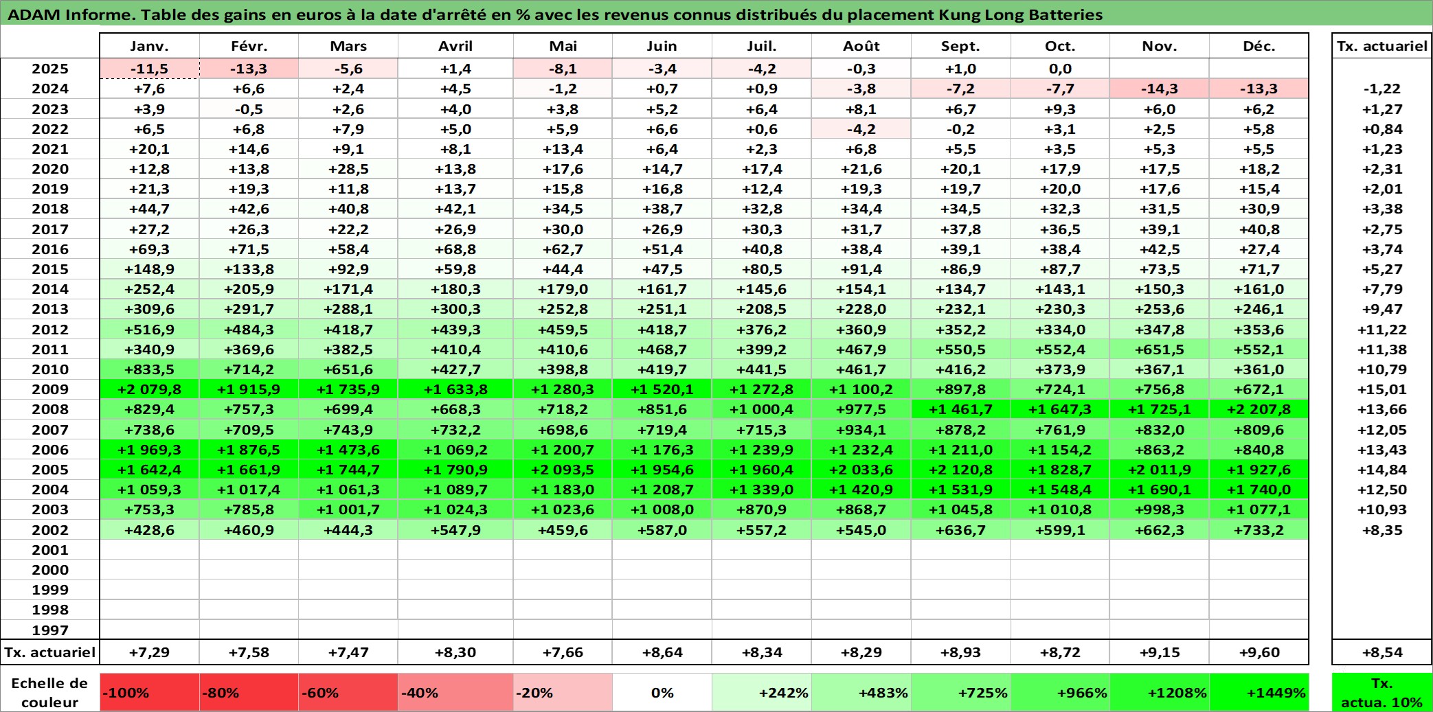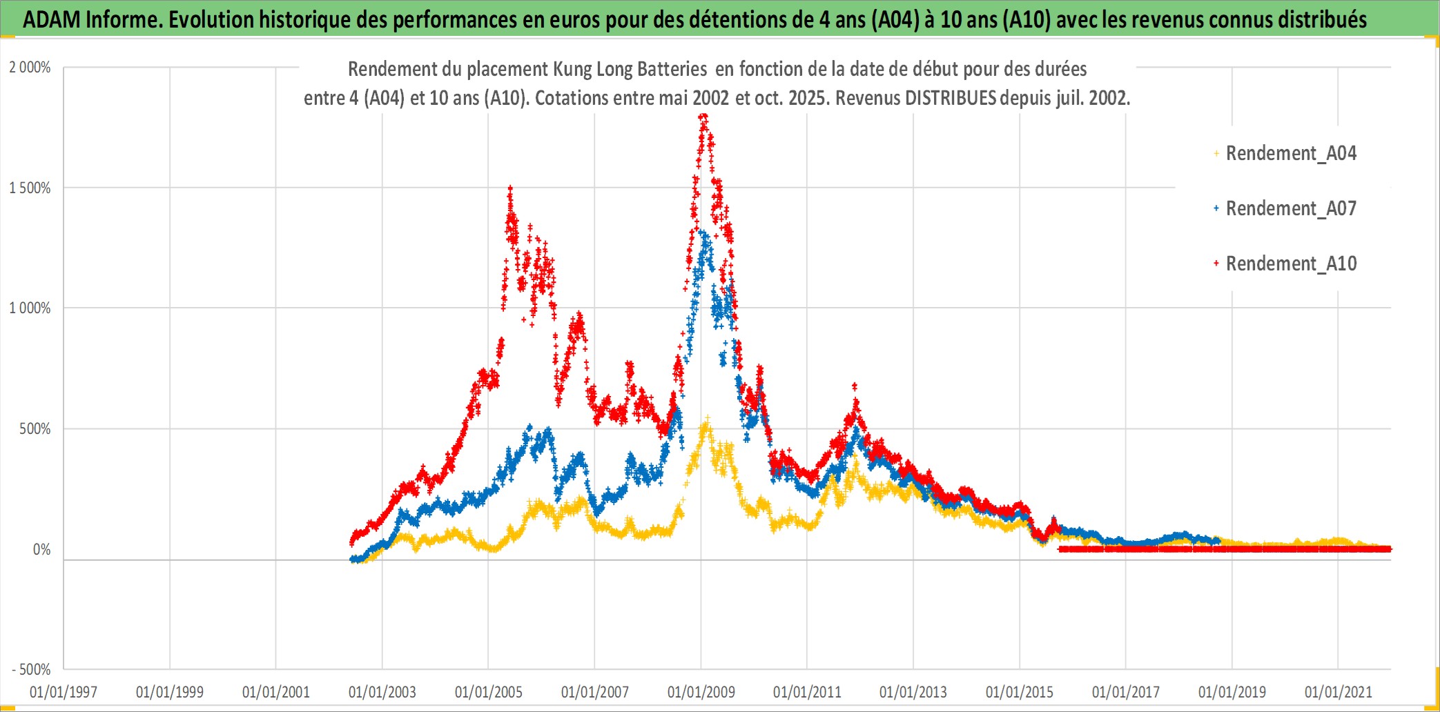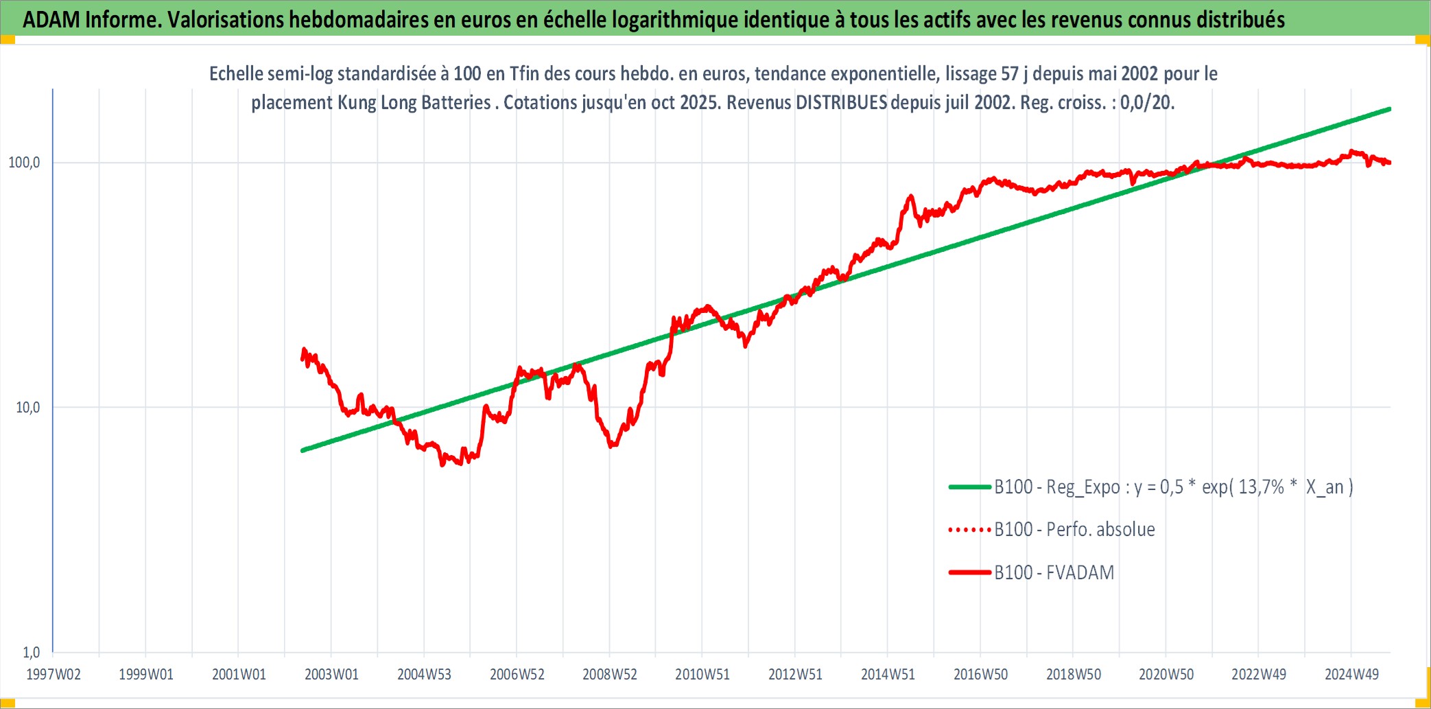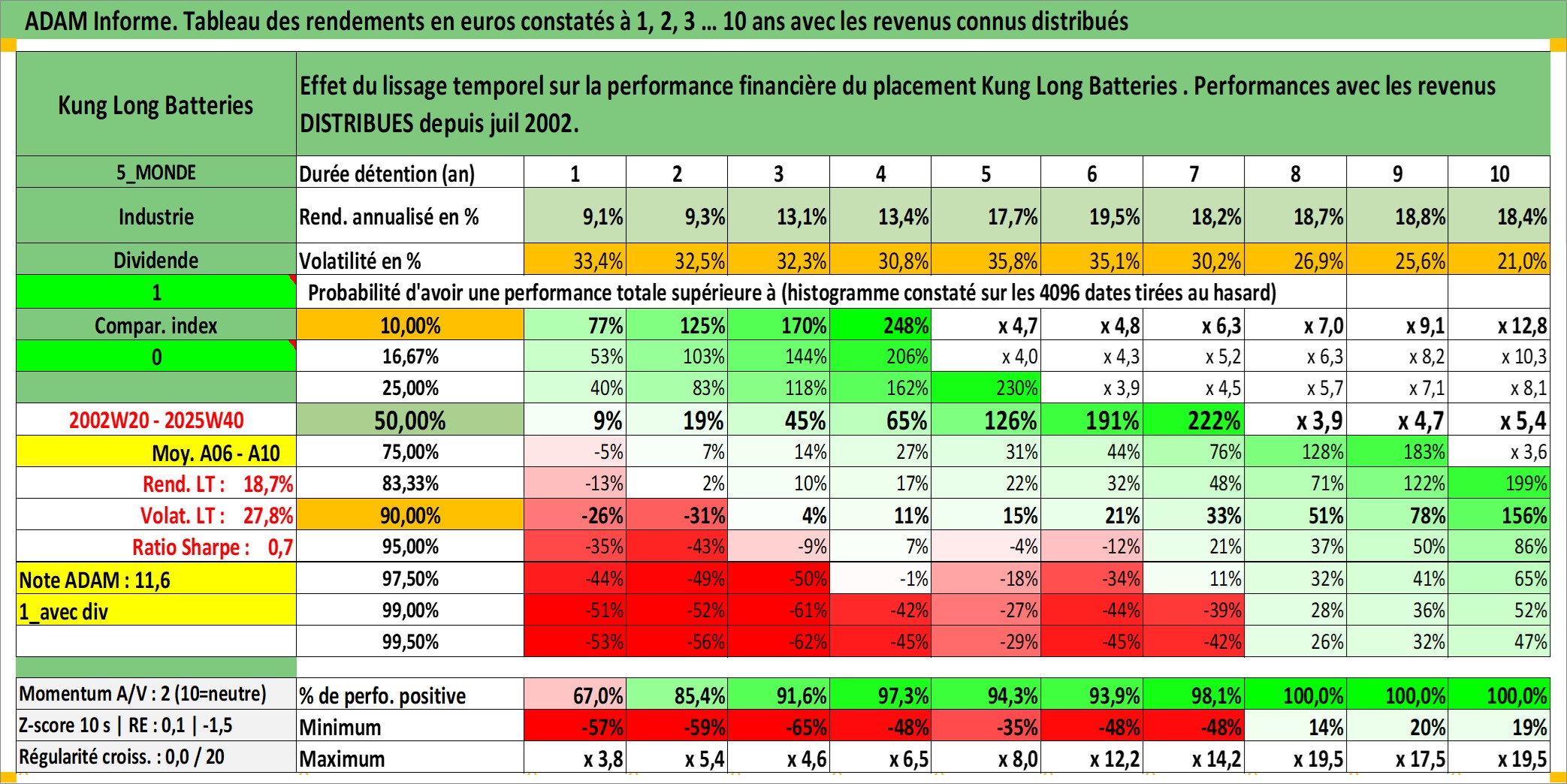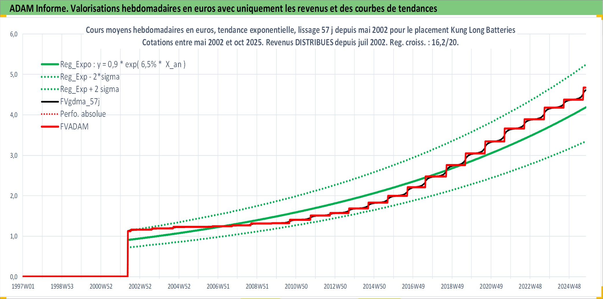 Site dédié aux investisseursPage dédiée sur site financeAnalyse des valorisations hebdomadaires de l'action Kung Long Batteries . Cet actif est cote en TWD. Les valorisations sont en contrevaleur EURO et couvrent les semaines 2002W20 a 2025W40. Les revenus de cet actif financier sont pris en compte depuis la semaine 2002W28. La note ESG de cet actif n'est pas connue.