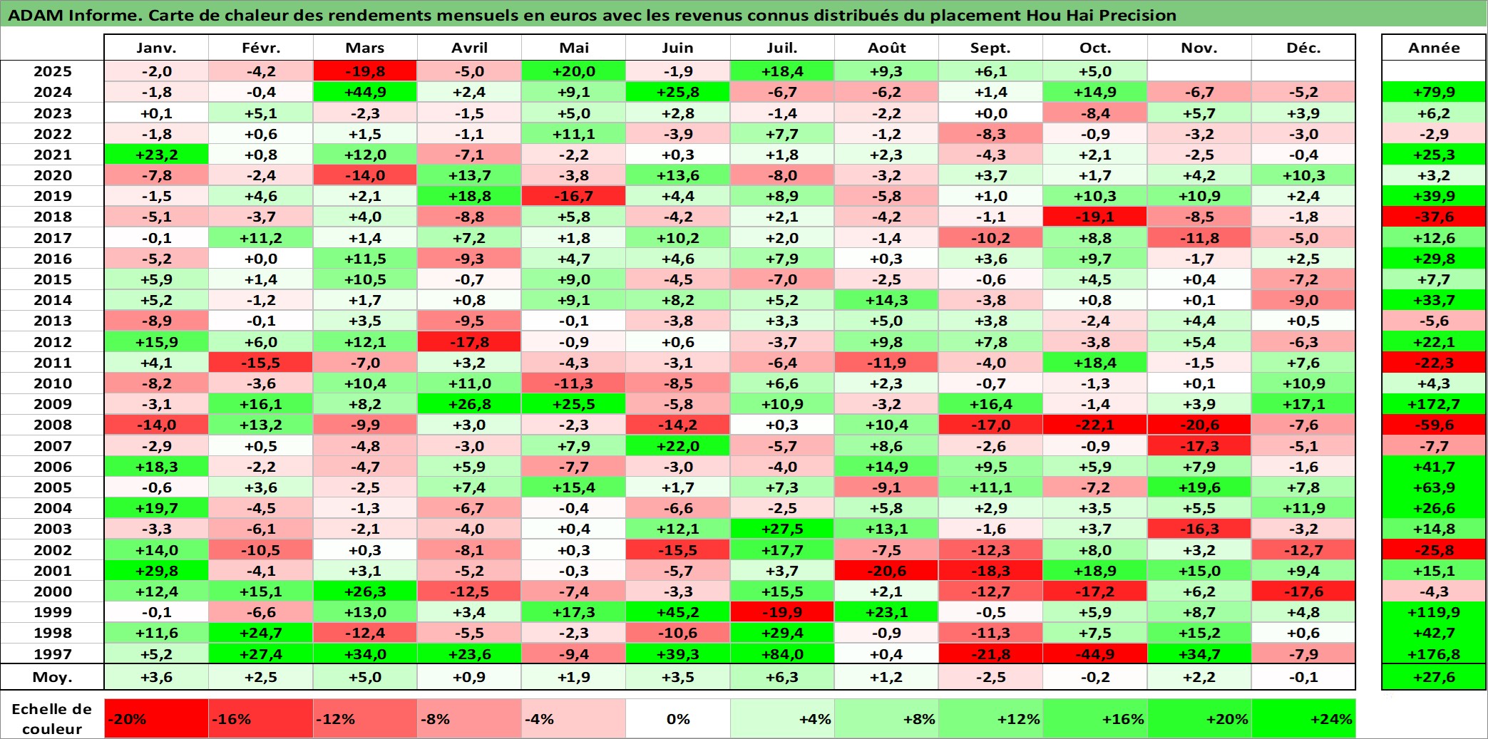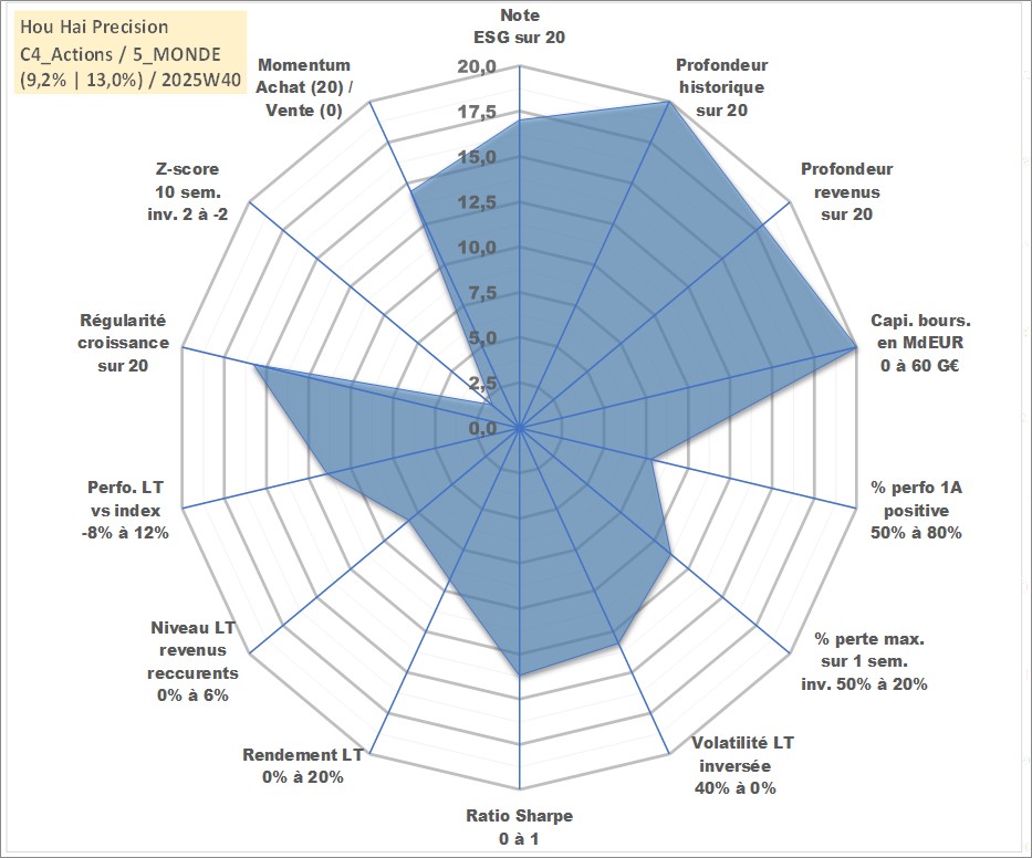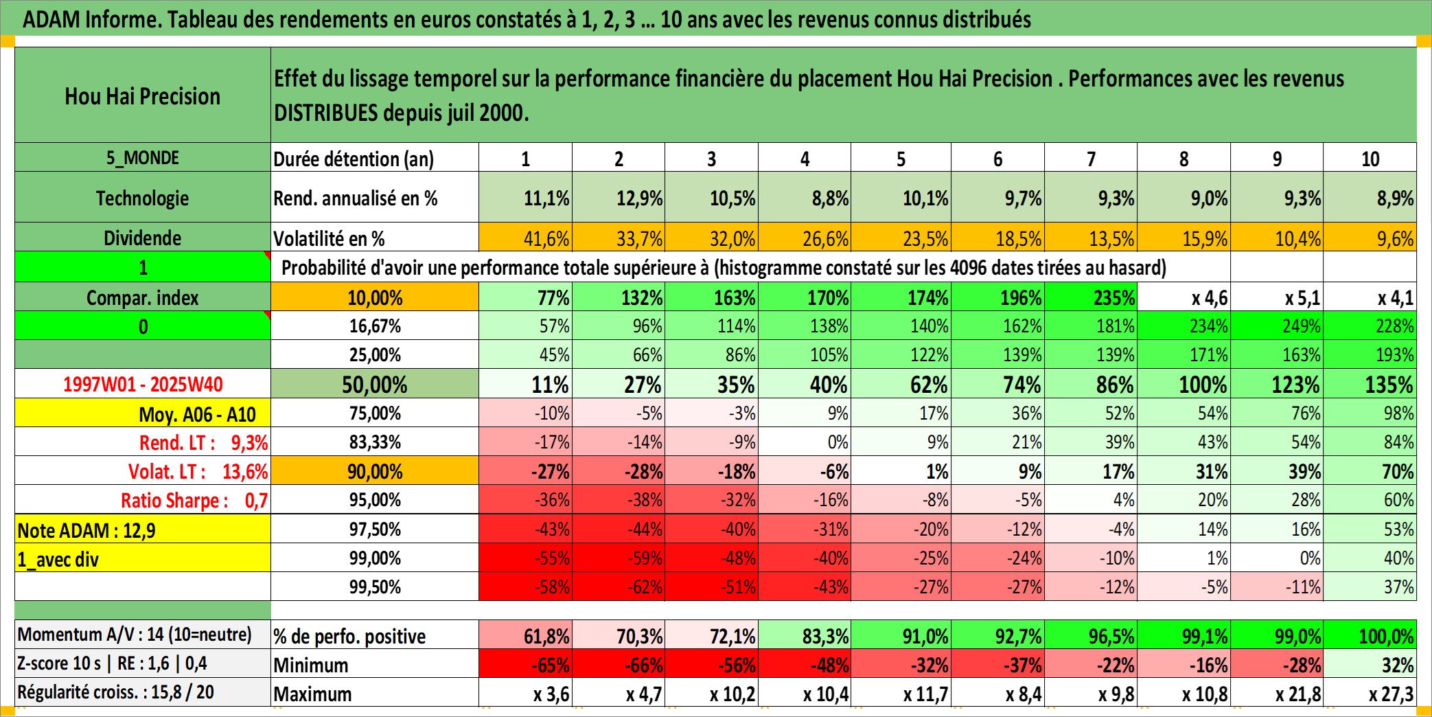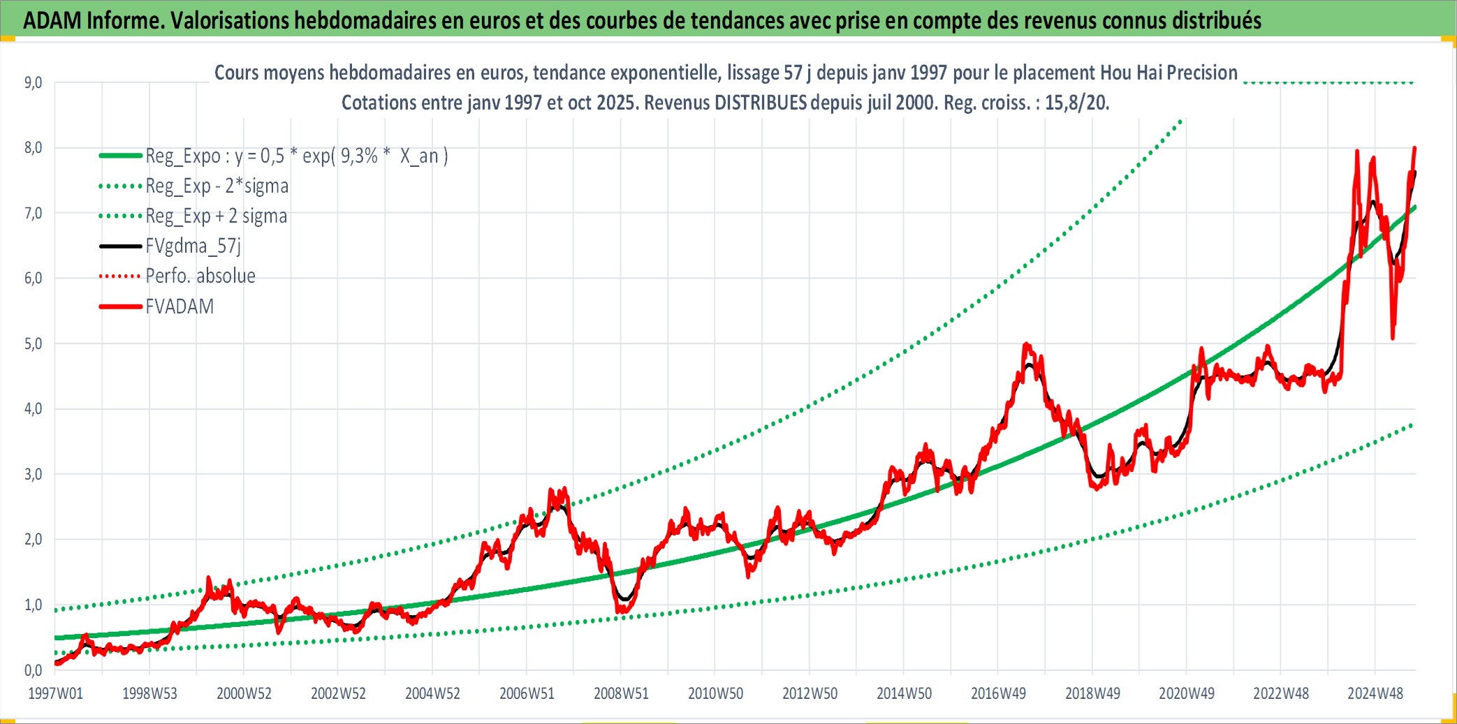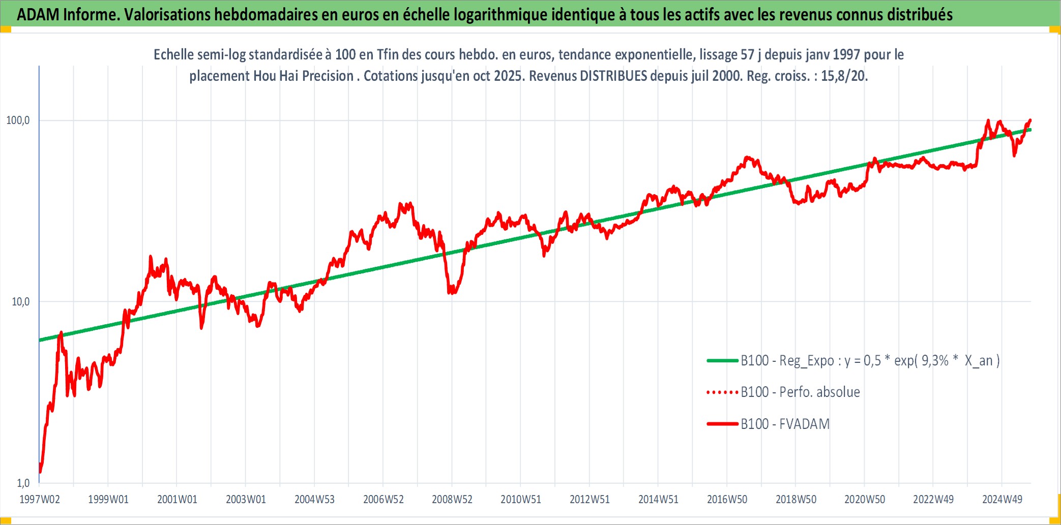 Site dédié aux investisseursPage dédiée sur site financeAnalyse des valorisations hebdomadaires de l'action Hou Hai Precision . Cet actif est cote en TWD. Les valorisations sont en contrevaleur EURO et couvrent les semaines 1997W01 a 2025W40. Les revenus de cet actif financier sont pris en compte depuis la semaine 2000W28. La note globale ESG de cet actif est estimee a 17.0 (apres rebasage entre 0 et 20).