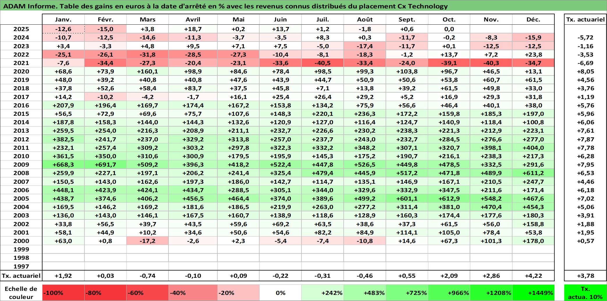 Site dédié aux investisseursPage dédiée sur site financeAnalyse des valorisations hebdomadaires de l'action Cx Technology . Cet actif est cote en TWD. Les valorisations sont en contrevaleur EURO et couvrent les semaines 2000W15 a 2025W40. Les revenus de cet actif financier sont pris en compte depuis la semaine 2001W32. La note ESG de cet actif n'est pas connue.