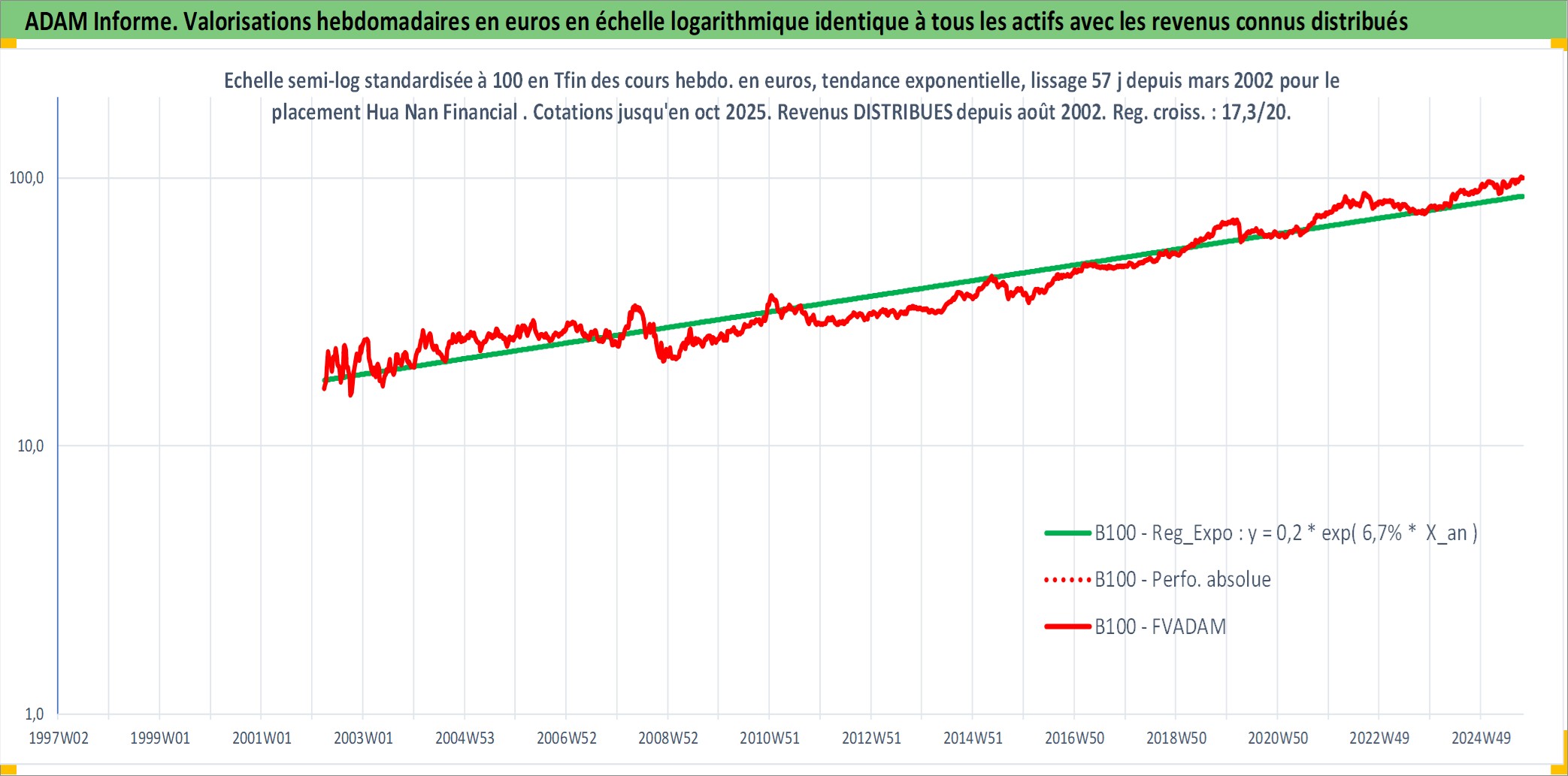 Site dédié aux investisseursPage dédiée sur site financeAnalyse des valorisations hebdomadaires de l'action Hua Nan Financial . Cet actif est cote en TWD. Les valorisations sont en contrevaleur EURO et couvrent les semaines 2002W13 a 2025W40. Les revenus de cet actif financier sont pris en compte depuis la semaine 2002W33. La note globale ESG de cet actif est estimee a 9.0 (apres rebasage entre 0 et 20).