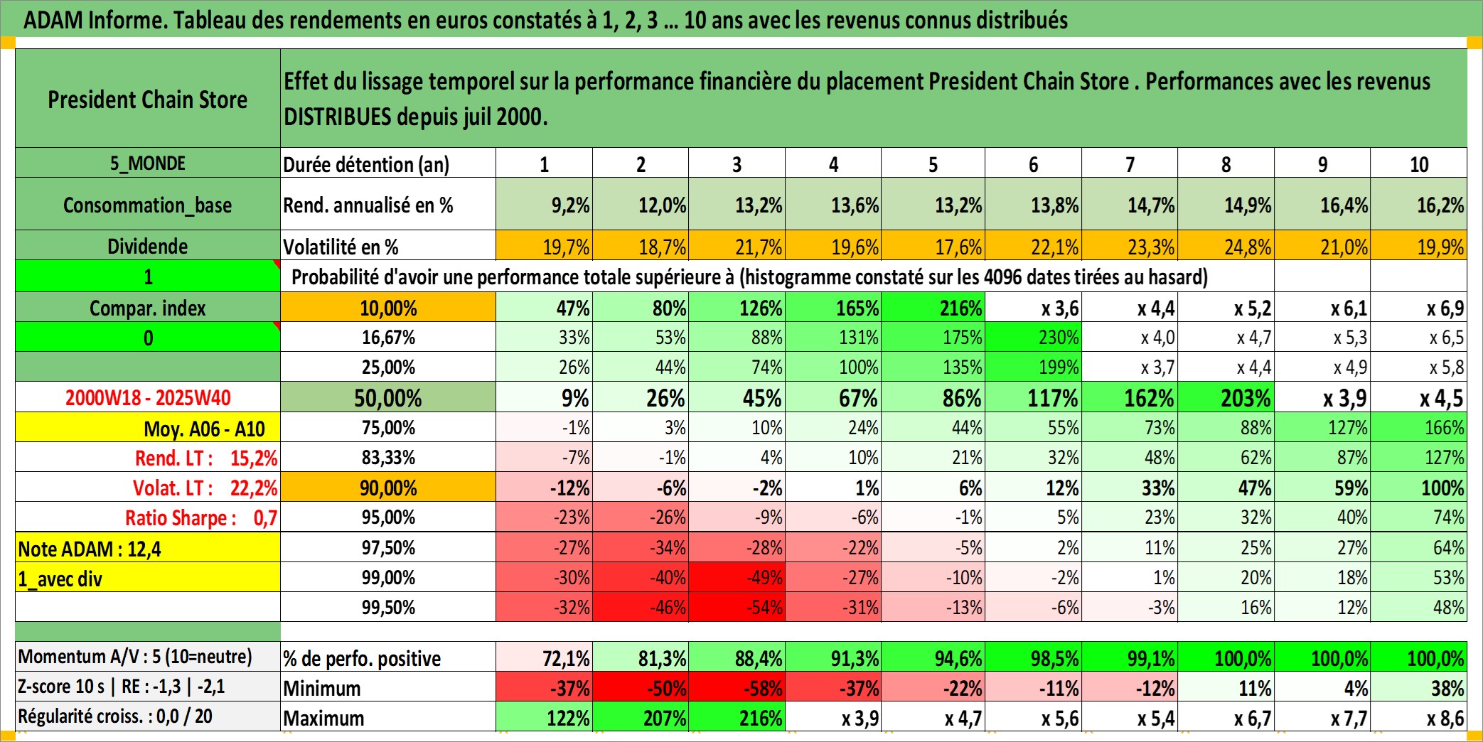 Site dédié aux investisseursPage dédiée sur site financeAnalyse des valorisations hebdomadaires de l'action President Chain Store . Cet actif est cote en TWD. Les valorisations sont en contrevaleur EURO et couvrent les semaines 2000W18 a 2025W40. Les revenus de cet actif financier sont pris en compte depuis la semaine 2000W30. La note globale ESG de cet actif est estimee a 8.0 (apres rebasage entre 0 et 20).