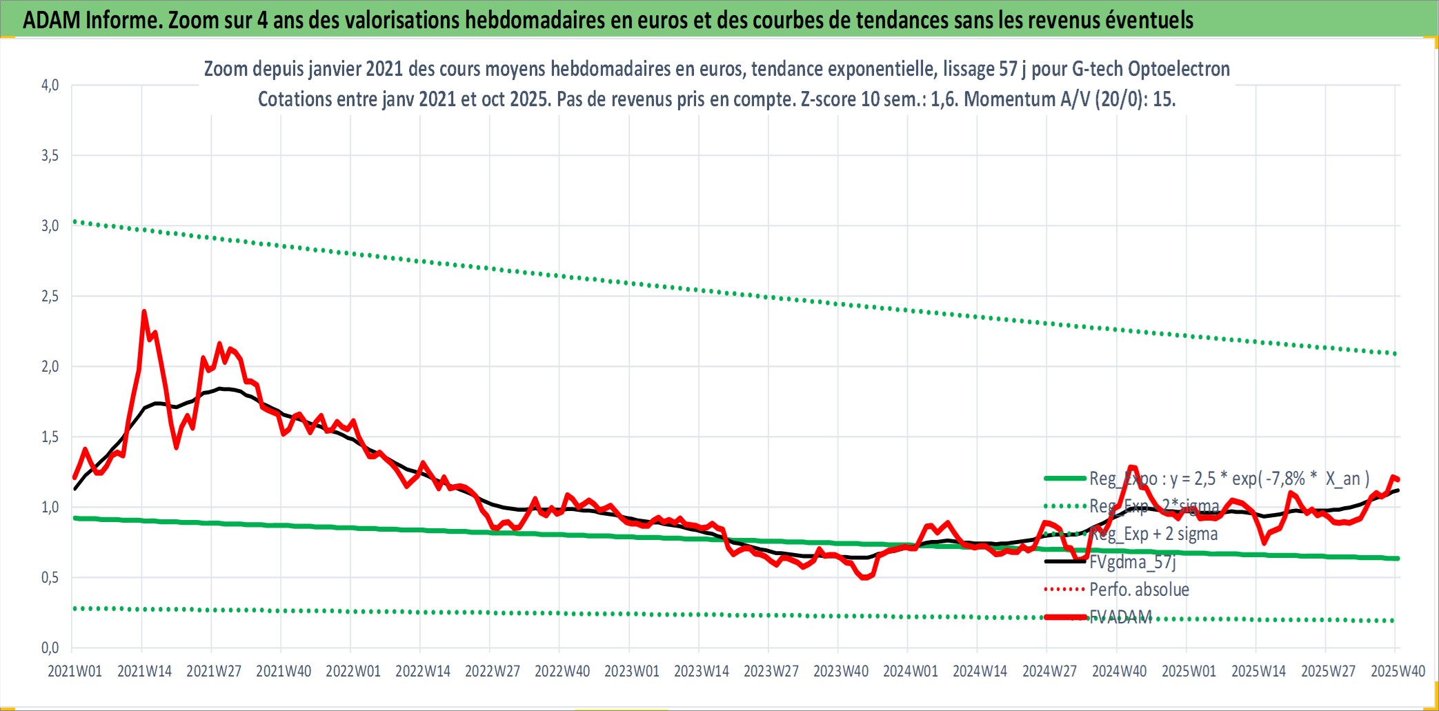 Site dédié aux investisseursPage dédiée sur site financeAnalyse des valorisations hebdomadaires de l'action G-tech Optoelectron . Cet actif est cote en TWD. Les valorisations sont en contrevaleur EURO et couvrent les semaines 2008W14 a 2025W40. Les revenus de cet actif financier sont pris en compte depuis la semaine 2008W28. La note ESG de cet actif n'est pas connue.