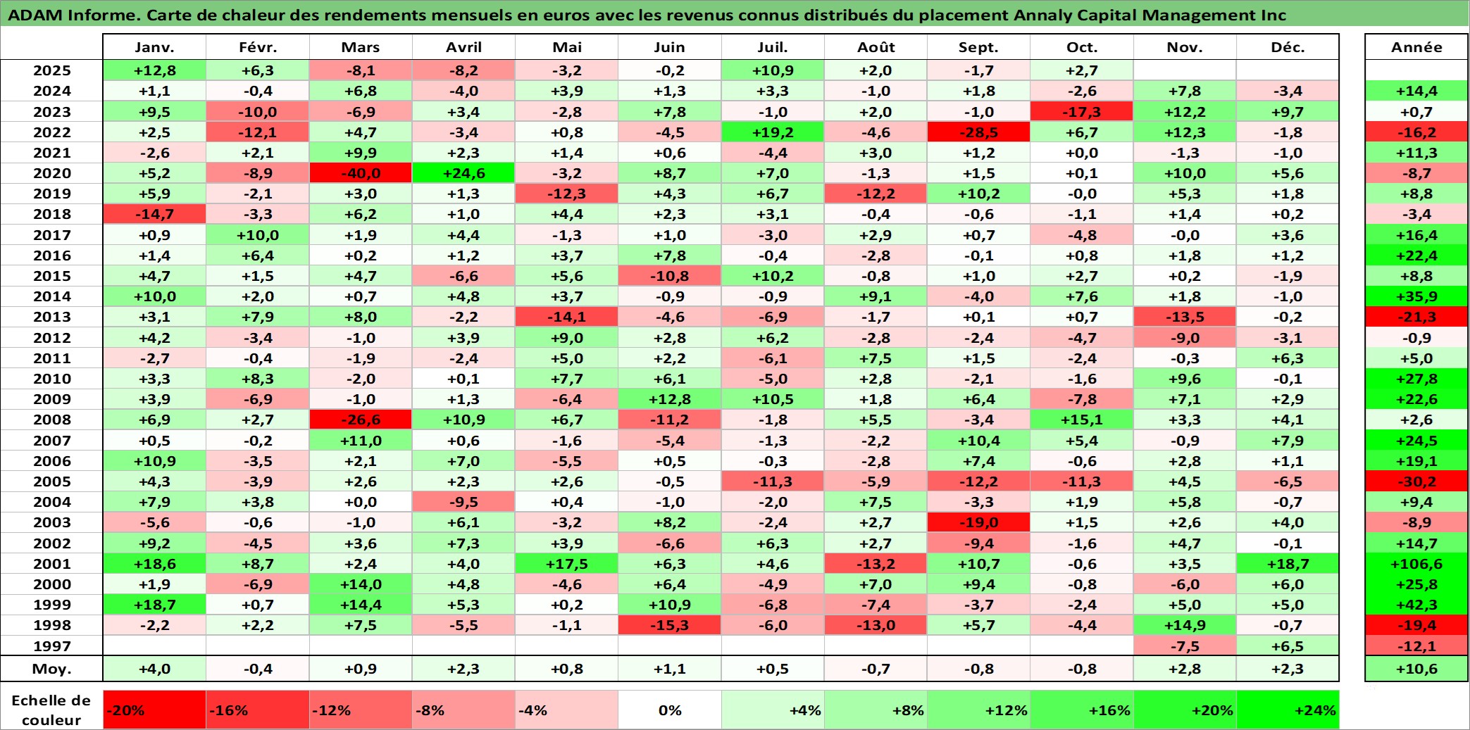 Site dédié aux investisseursPage dédiée sur site financeAnalyse des valorisations hebdomadaires de l'action Annaly Capital Management Inc. Cet actif est cote en USD. Les valorisations sont en contrevaleur EURO et couvrent les semaines 1997W41 a 2025W40. Les revenus de cet actif financier sont pris en compte depuis la semaine 1998W01. La note globale ESG de cet actif est estimee a 11.0 (apres rebasage entre 0 et 20).