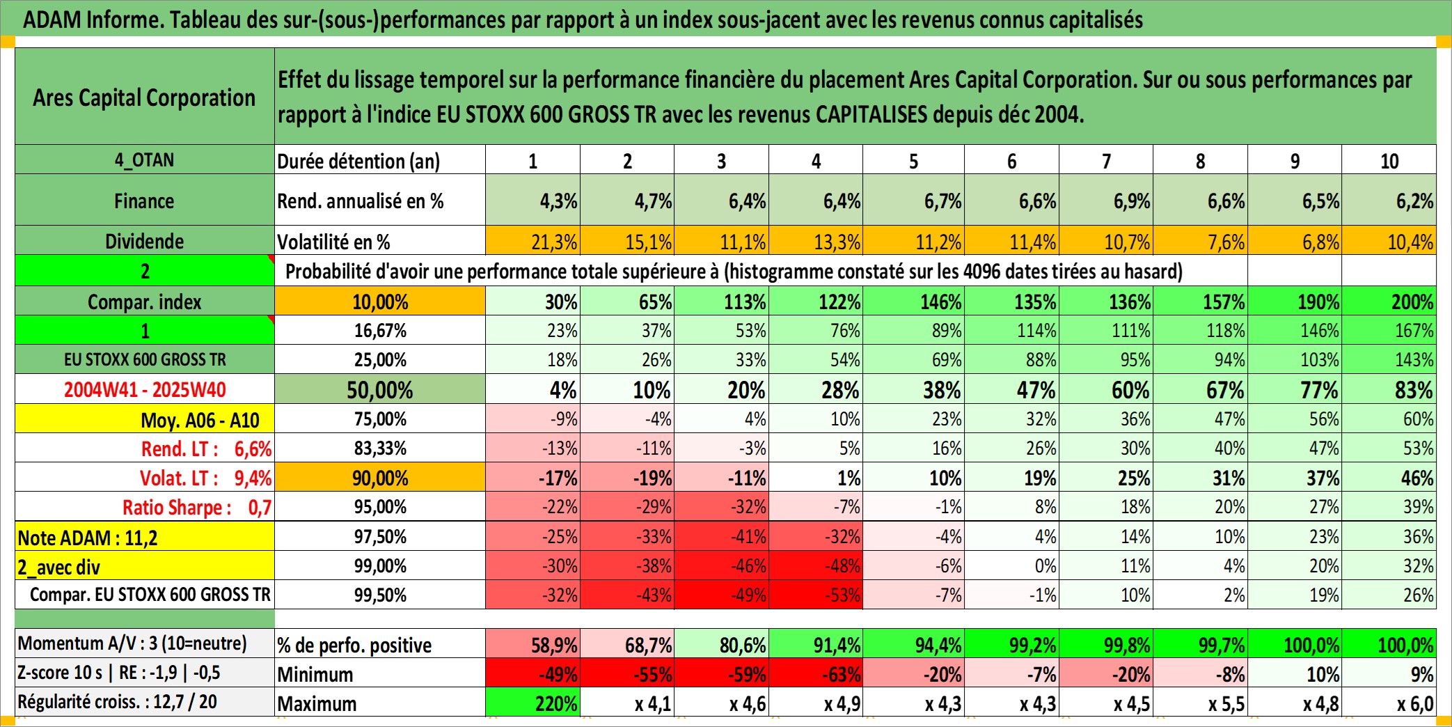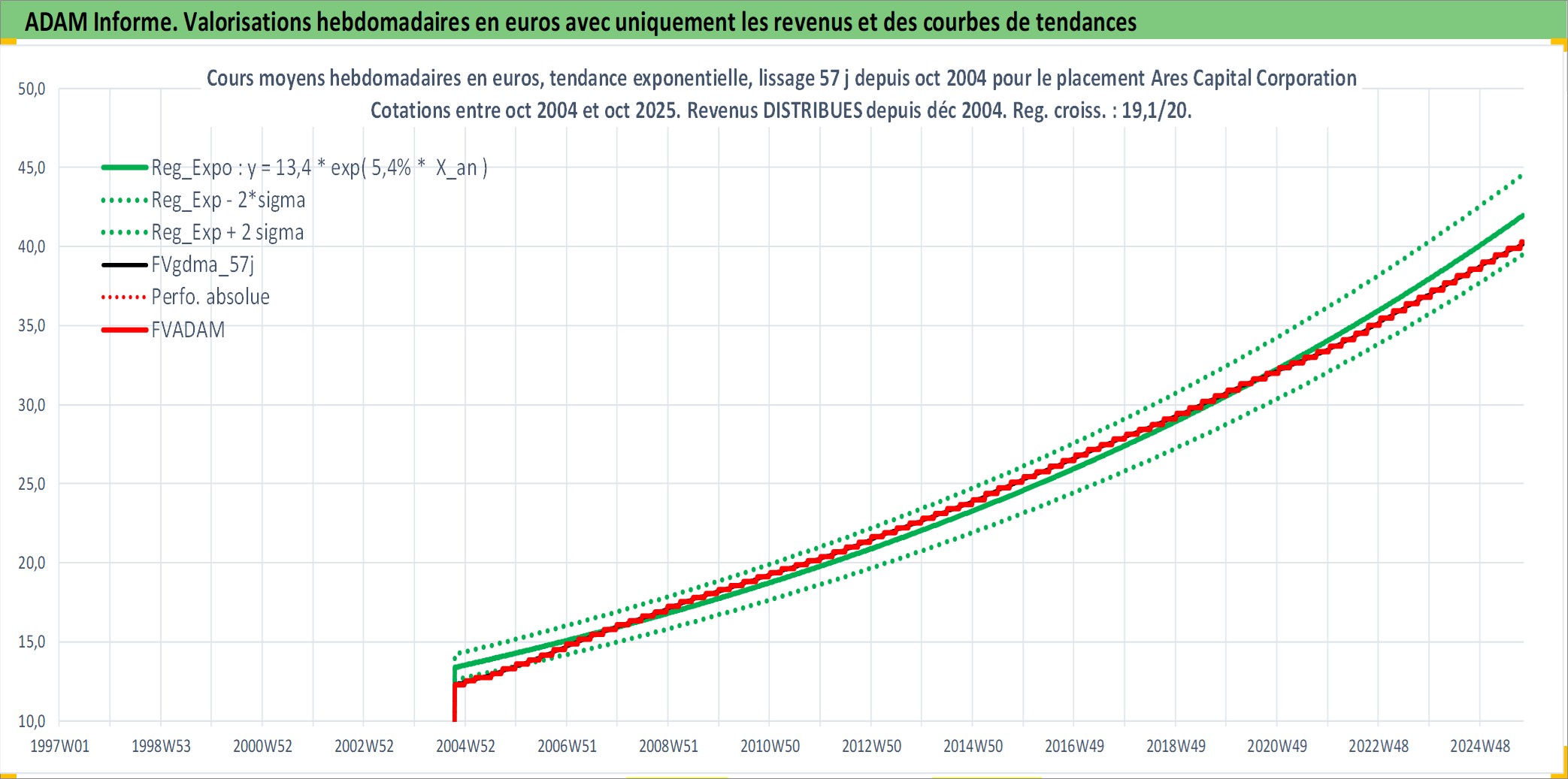 Site dédié aux investisseursPage dédiée sur site financeAnalyse des valorisations hebdomadaires de l'action Ares Capital Corporation. Cet actif est cote en USD. Les valorisations sont en contrevaleur EURO et couvrent les semaines 2004W41 a 2025W40. Les revenus de cet actif financier sont pris en compte depuis la semaine 2004W52. La note ESG de cet actif n'est pas connue.