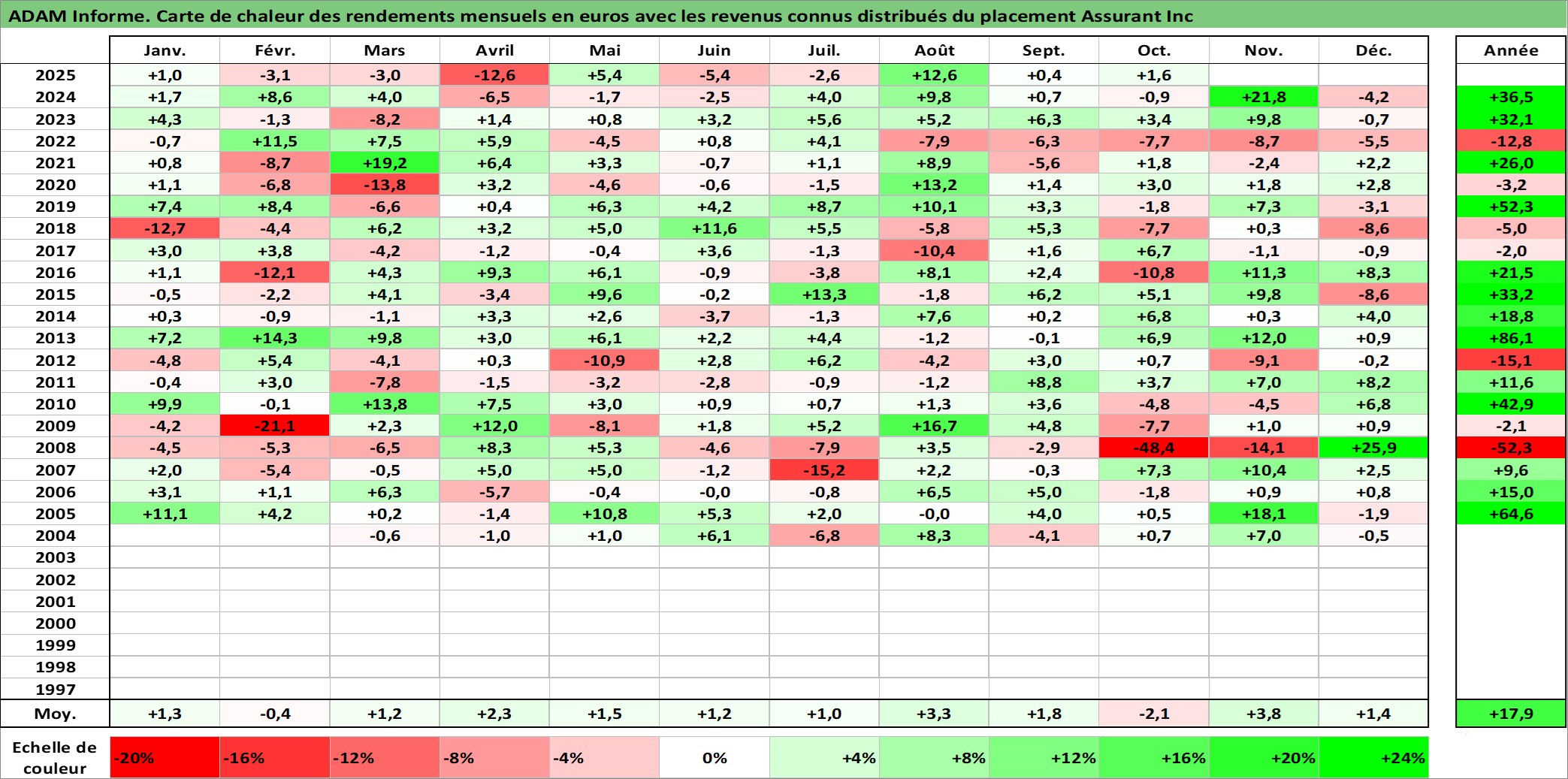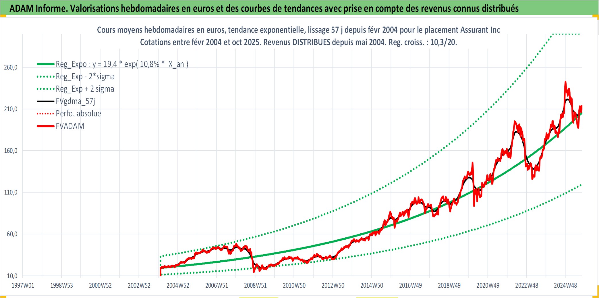 Site dédié aux investisseursPage dédiée sur site financeAnalyse des valorisations hebdomadaires de l'action Assurant Inc. Cet actif est cote en USD. Les valorisations sont en contrevaleur EURO et couvrent les semaines 2004W06 a 2025W40. Les revenus de cet actif financier sont pris en compte depuis la semaine 2004W21. La note globale ESG de cet actif est estimee a 8.0 (apres rebasage entre 0 et 20).