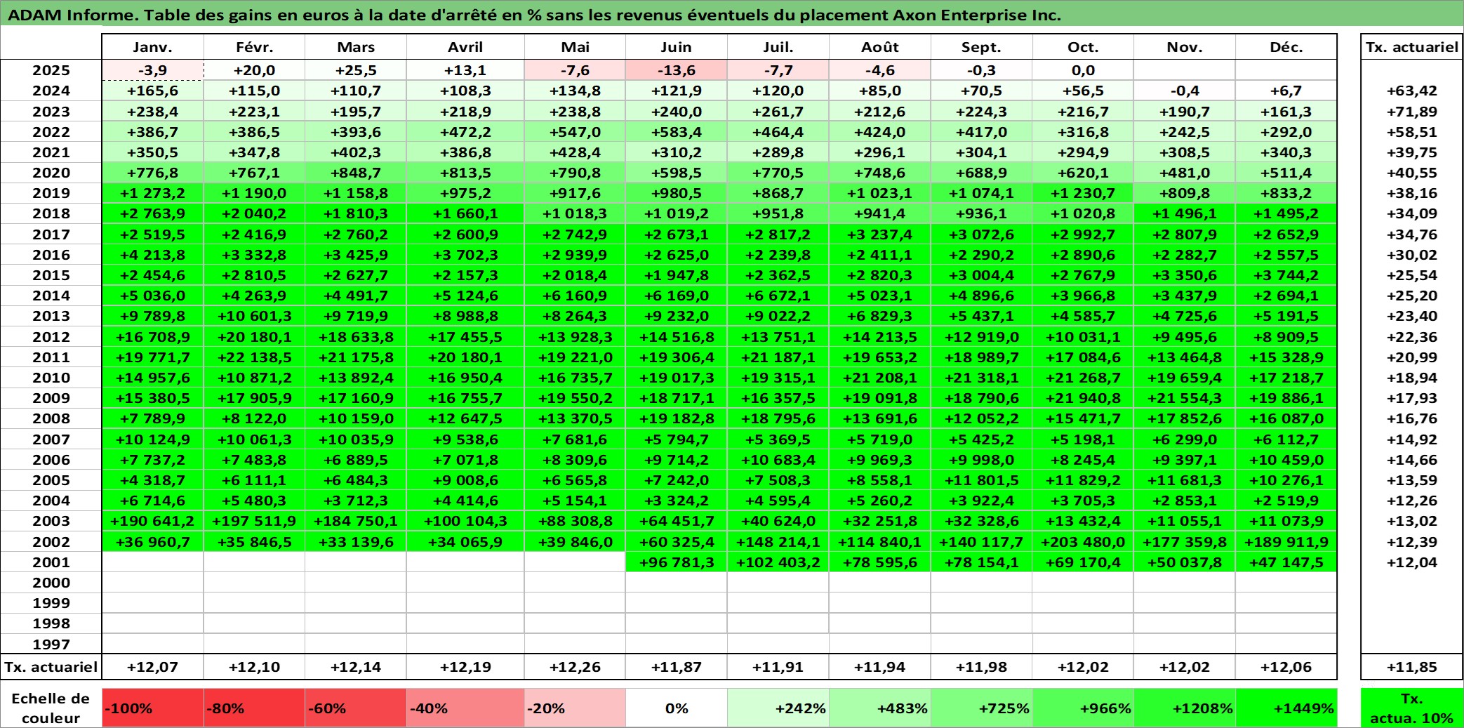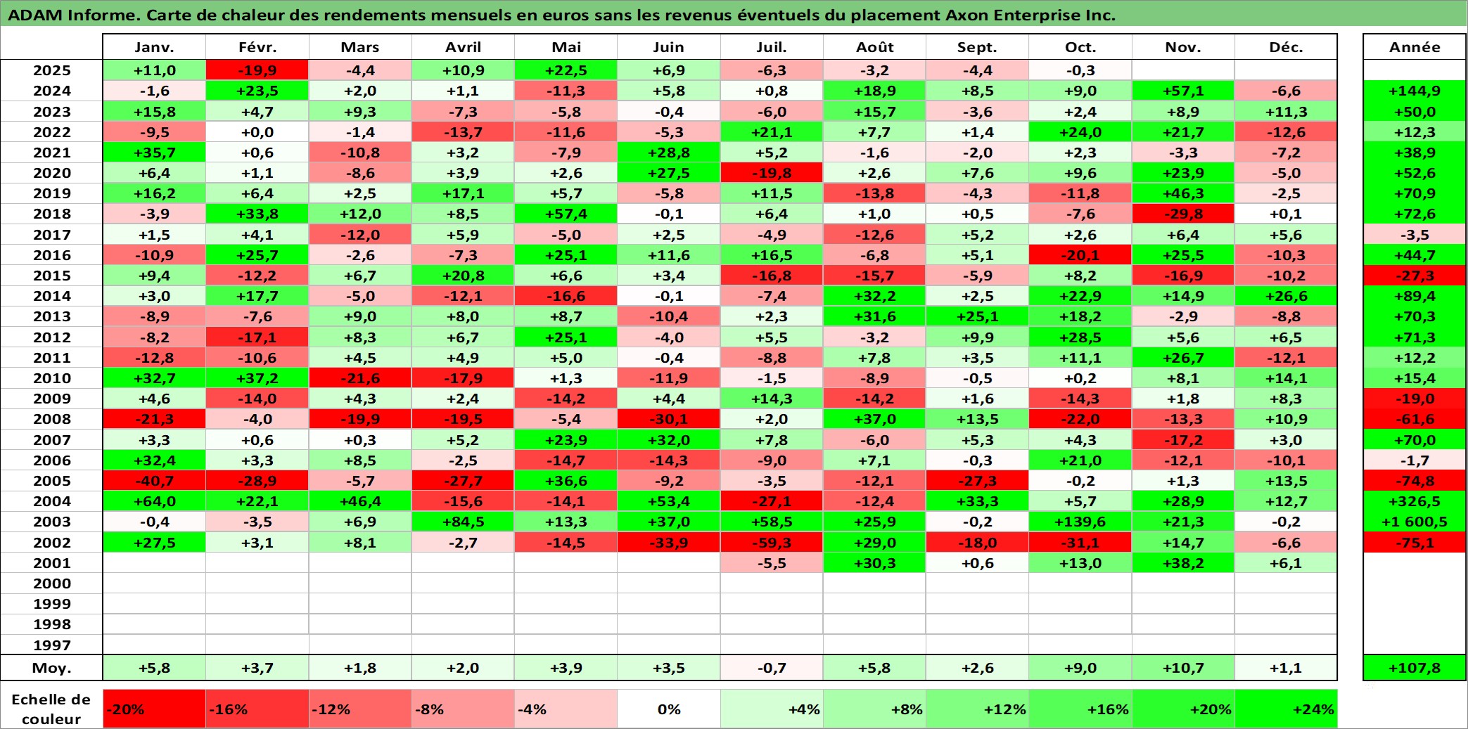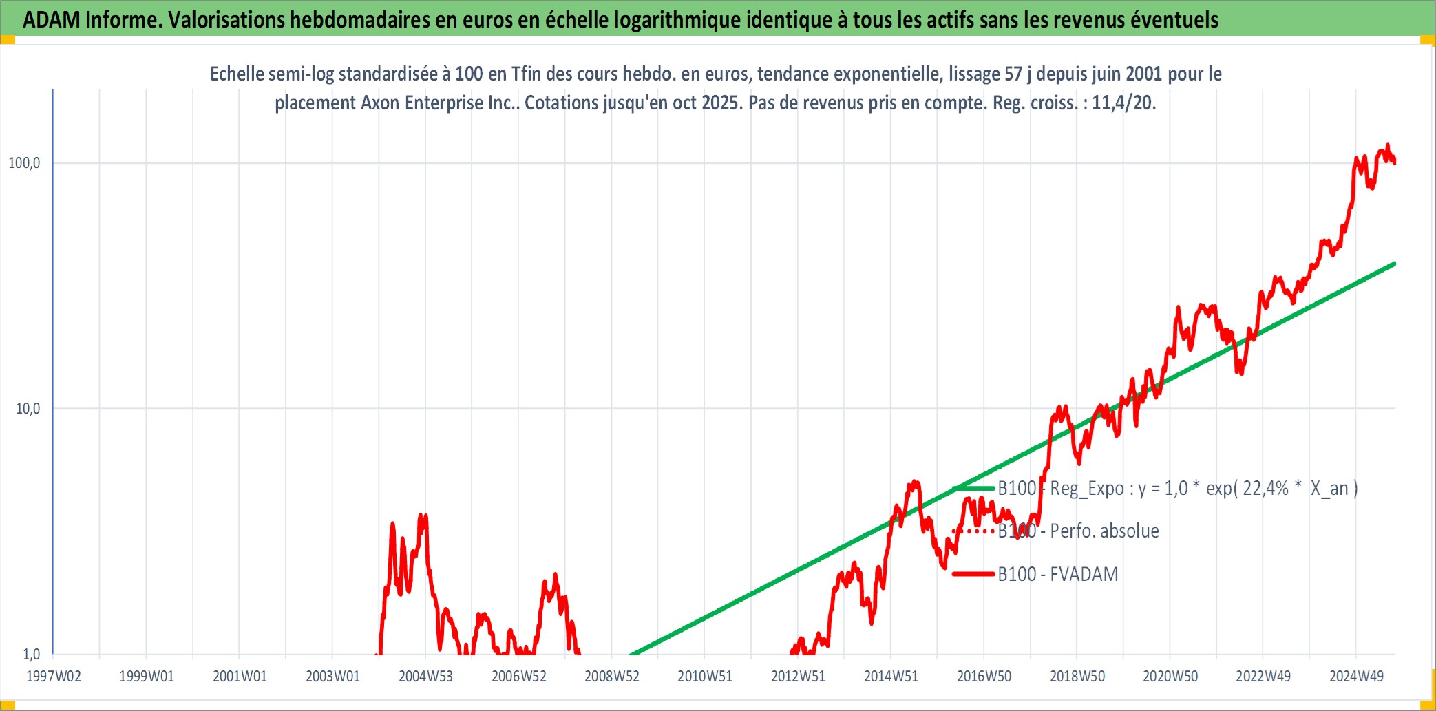 Site dédié aux investisseursPage dédiée sur site financeAnalyse des valorisations hebdomadaires de l'action Axon Enterprise Inc.. Cet actif est cote en USD. Les valorisations sont en contrevaleur EURO et couvrent les semaines 2001W25 a 2025W40. Les revenus de cet actif financier ne sont pas connus car non existants ou non disponibles sur le site Yahoo Finance. La note ESG de cet actif n'est pas connue.