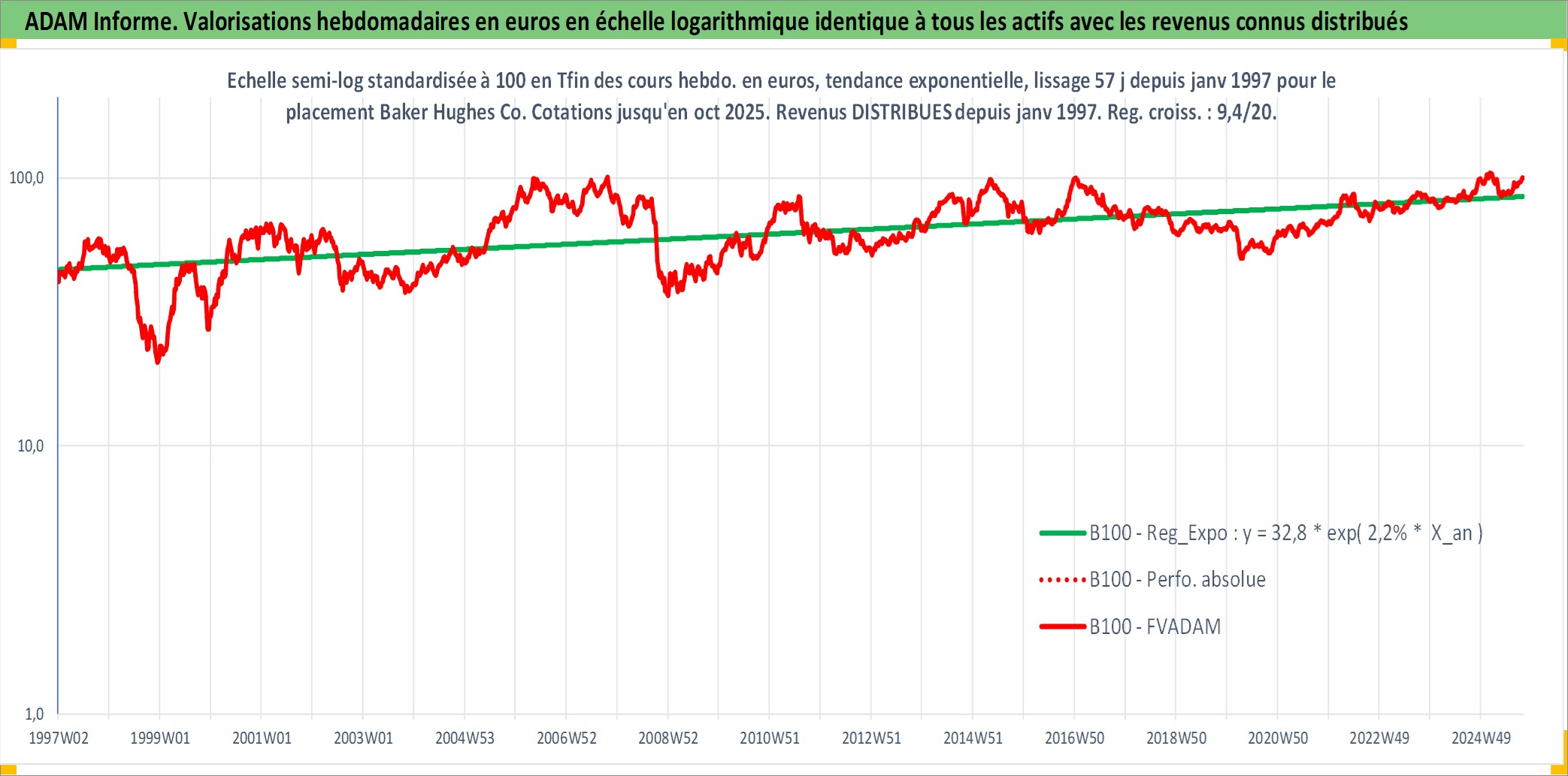 Site dédié aux investisseursPage dédiée sur site financeAnalyse des valorisations hebdomadaires de l'action Baker Hughes Co. Cet actif est cote en USD. Les valorisations sont en contrevaleur EURO et couvrent les semaines 1997W01 a 2025W40. Les revenus de cet actif financier sont pris en compte depuis la semaine 1997W05. La note ESG de cet actif n'est pas connue.