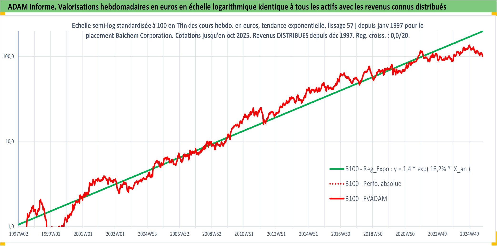 Site dédié aux investisseursPage dédiée sur site financeAnalyse des valorisations hebdomadaires de l'action Balchem Corporation. Cet actif est cote en USD. Les valorisations sont en contrevaleur EURO et couvrent les semaines 1997W01 a 2025W40. Les revenus de cet actif financier sont pris en compte depuis la semaine 1997W52. La note ESG de cet actif n'est pas connue.