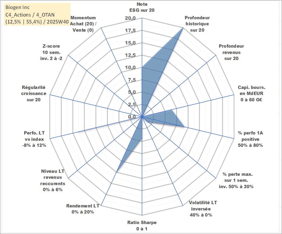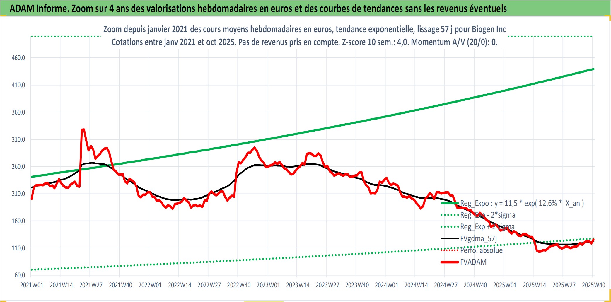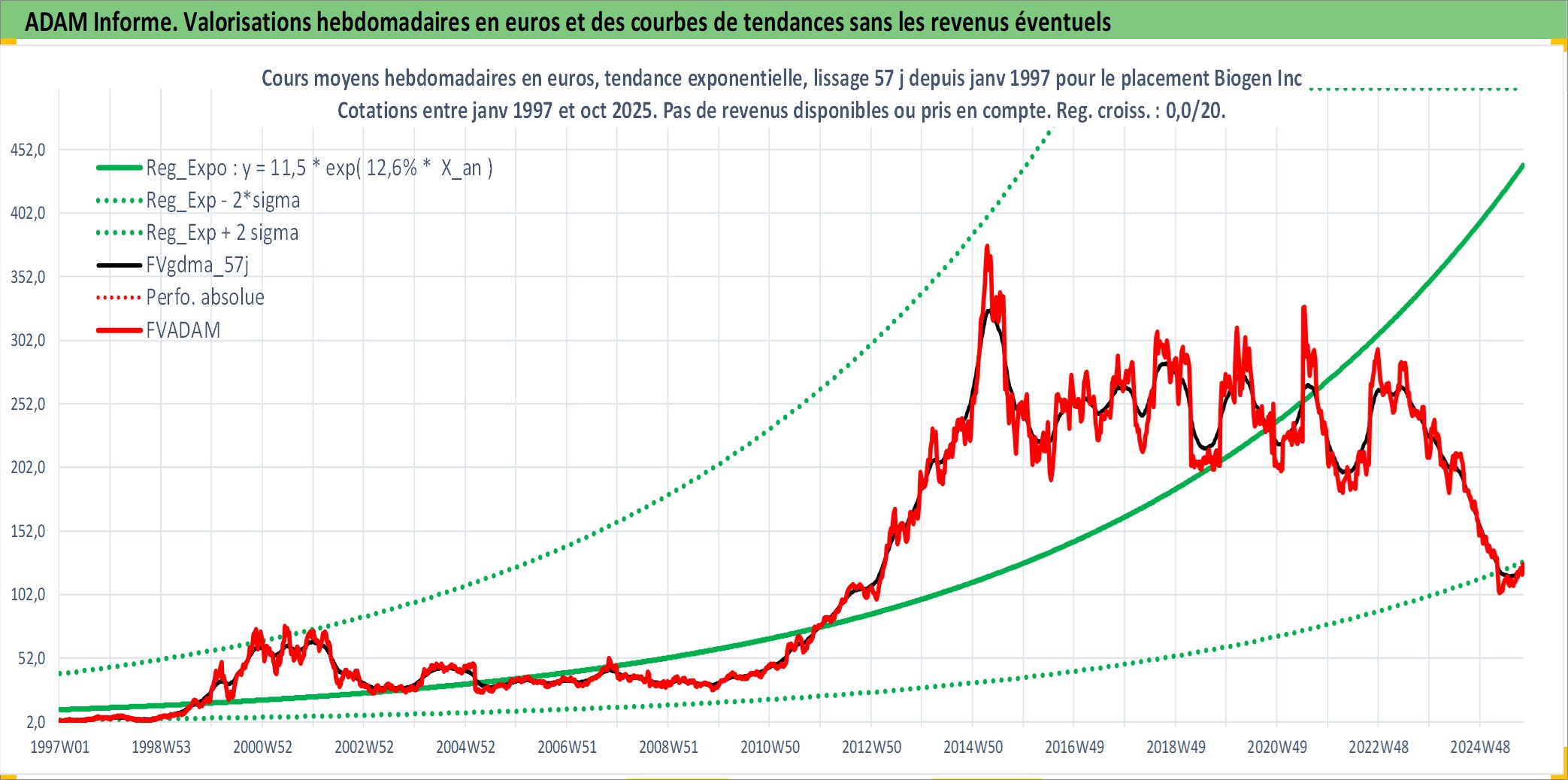 Site dédié aux investisseursPage dédiée sur site financeAnalyse des valorisations hebdomadaires de l'action Biogen Inc. Cet actif est cote en USD. Les valorisations sont en contrevaleur EURO et couvrent les semaines 1997W01 a 2025W40. Les revenus de cet actif financier ne sont pas connus car non existants ou non disponibles sur le site Yahoo Finance. La note globale ESG de cet actif est estimee a 10.0 (apres rebasage entre 0 et 20).