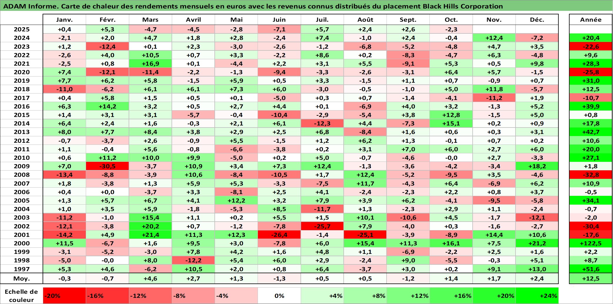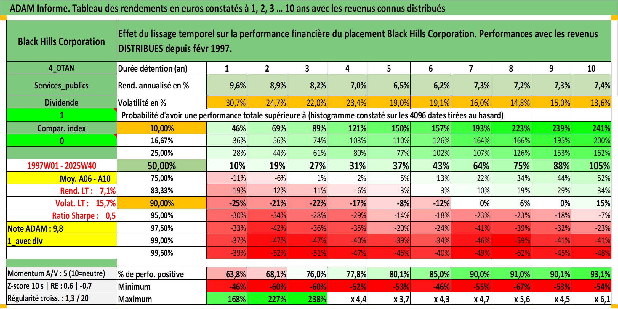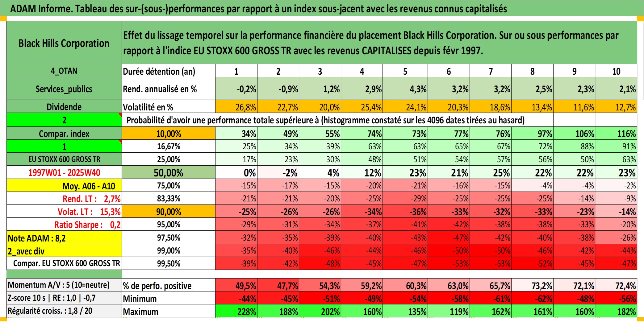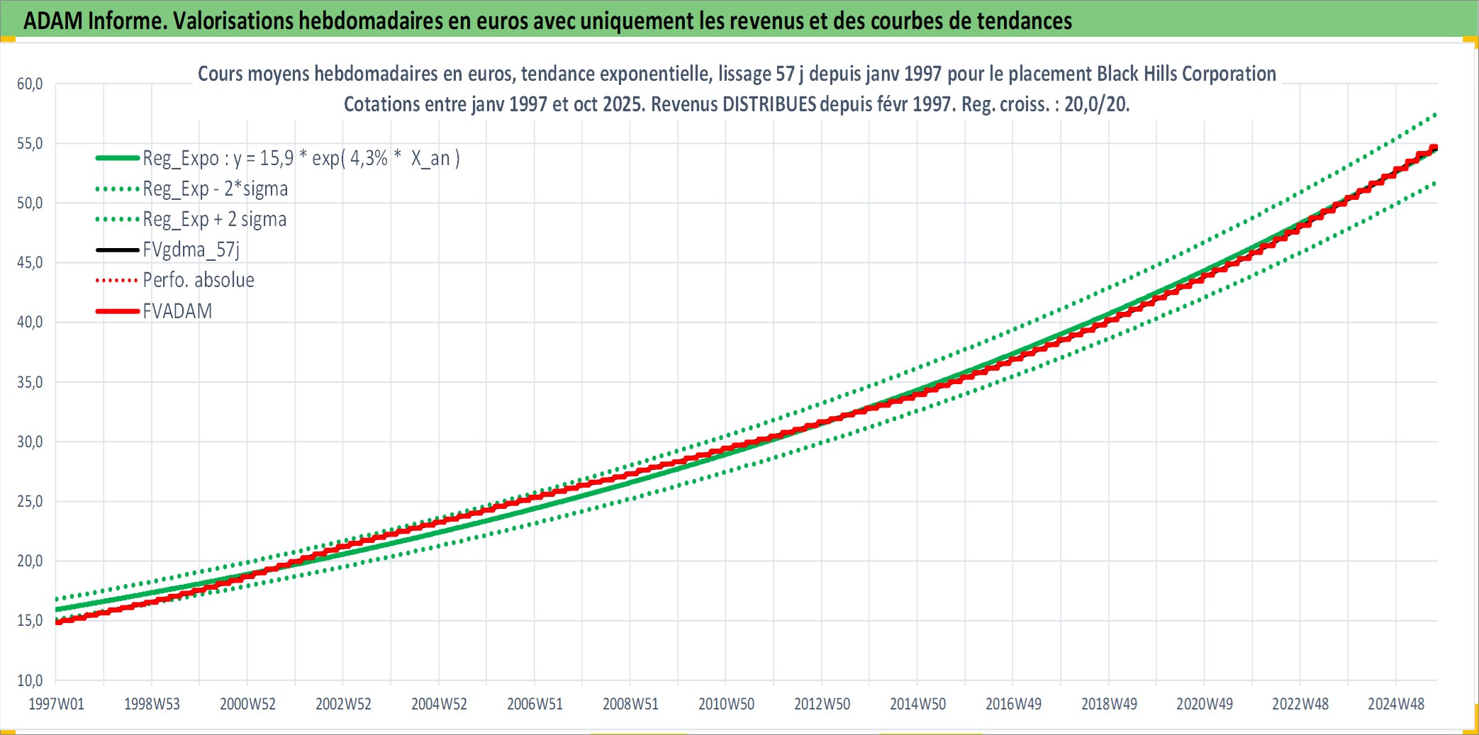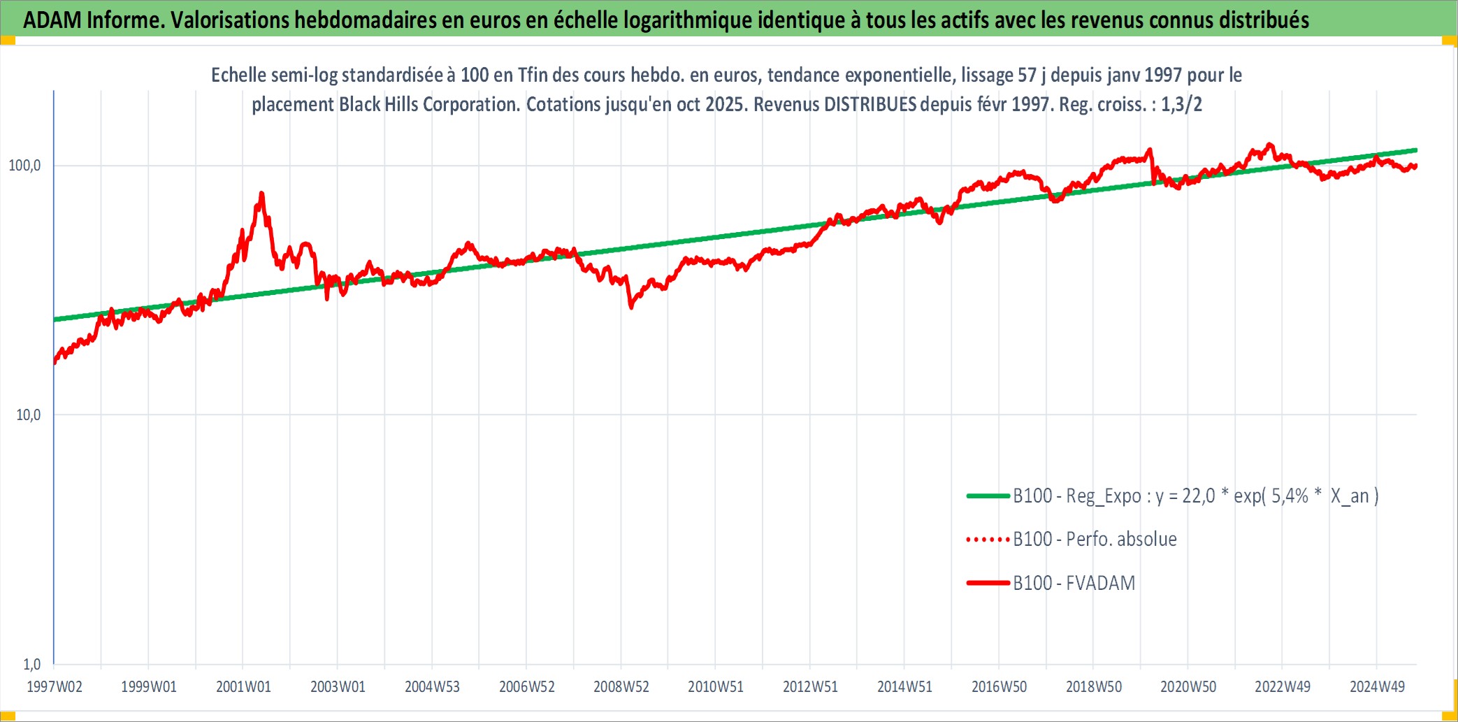 Site dédié aux investisseursPage dédiée sur site financeAnalyse des valorisations hebdomadaires de l'action Black Hills Corporation. Cet actif est cote en USD. Les valorisations sont en contrevaleur EURO et couvrent les semaines 1997W01 a 2025W40. Les revenus de cet actif financier sont pris en compte depuis la semaine 1997W07. La note ESG de cet actif n'est pas connue.