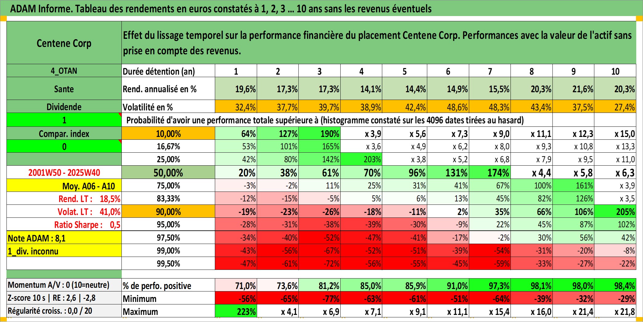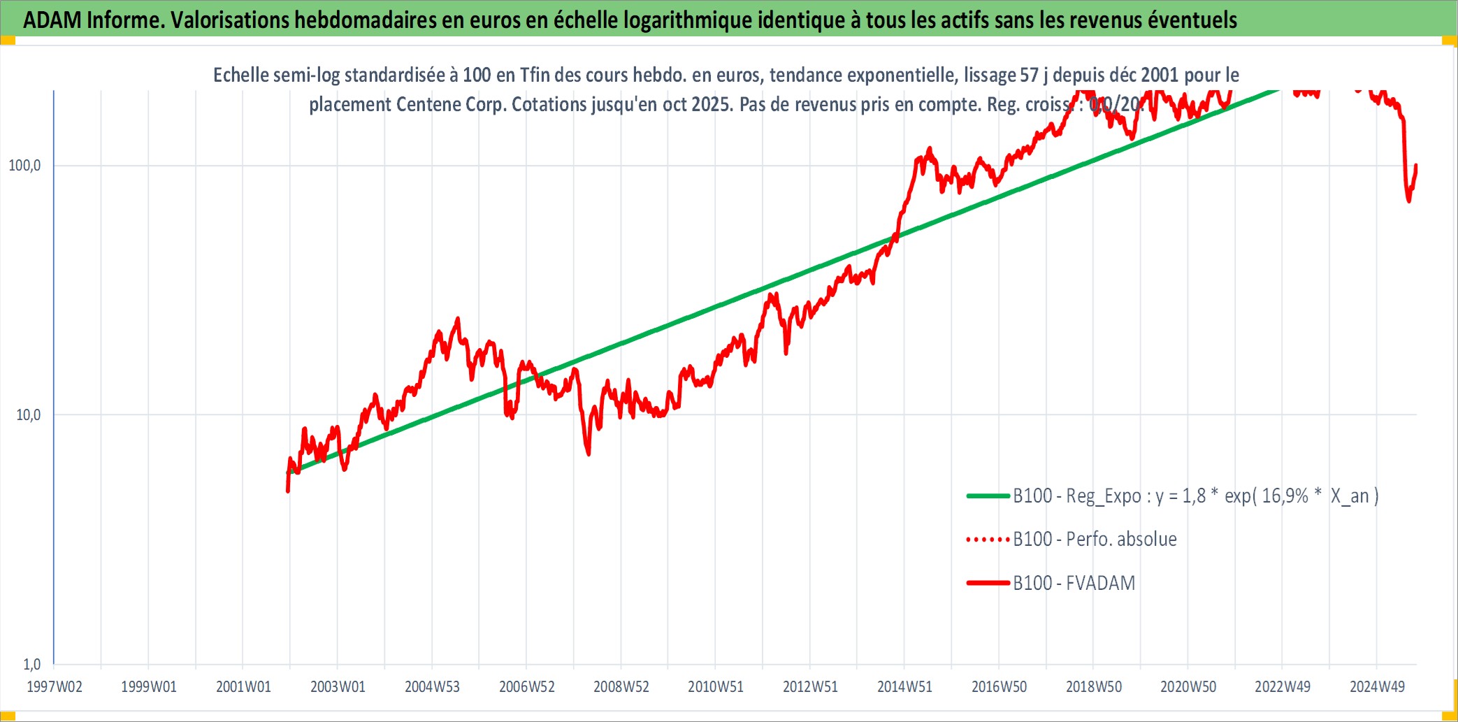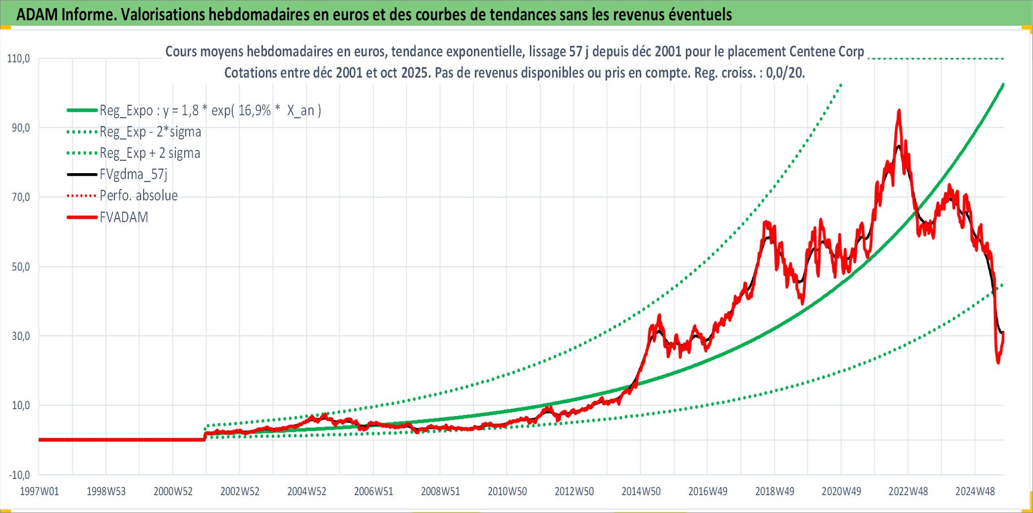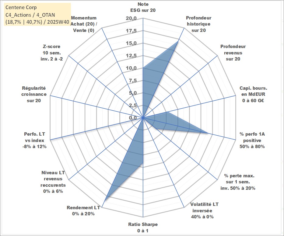 Site dédié aux investisseursPage dédiée sur site financeAnalyse des valorisations hebdomadaires de l'action Centene Corp. Cet actif est cote en USD. Les valorisations sont en contrevaleur EURO et couvrent les semaines 2001W50 a 2025W40. Les revenus de cet actif financier ne sont pas connus car non existants ou non disponibles sur le site Yahoo Finance. La note globale ESG de cet actif est estimee a 10.0 (apres rebasage entre 0 et 20).