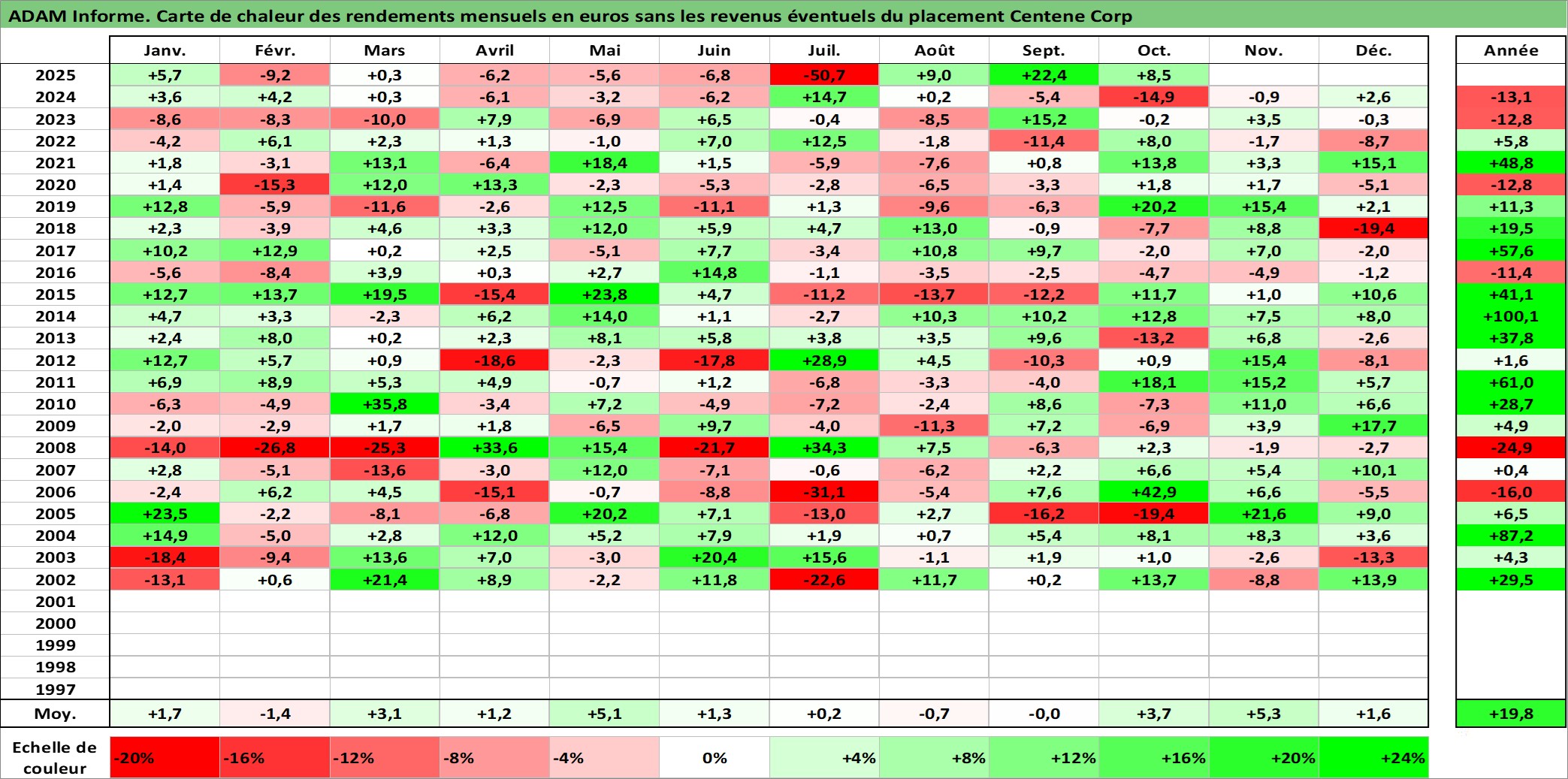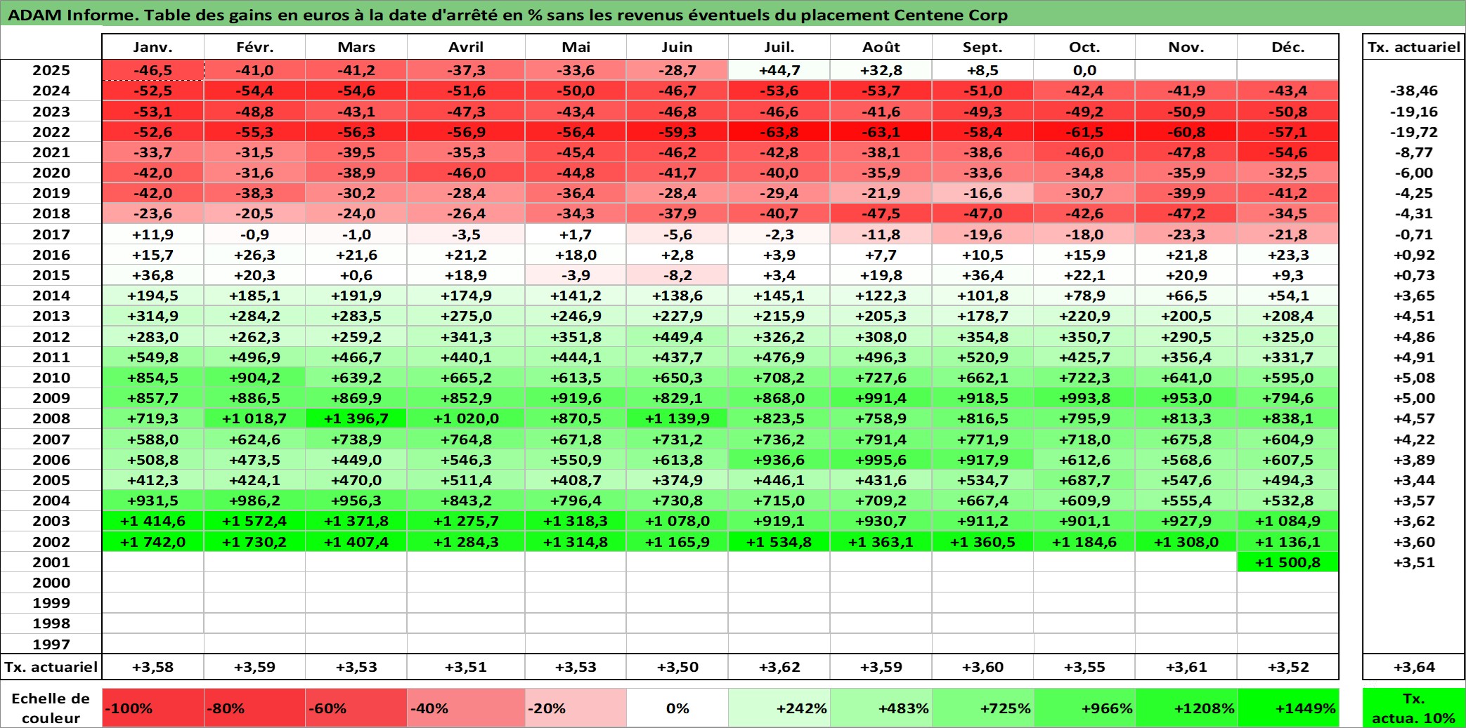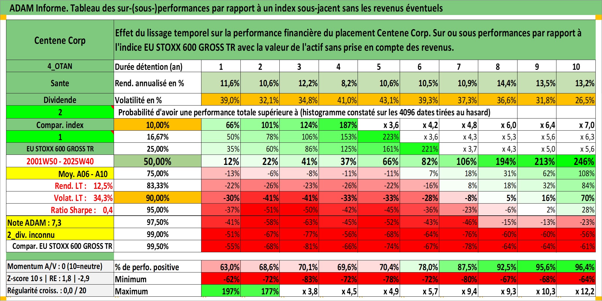 Site dédié aux investisseursPage dédiée sur site financeAnalyse des valorisations hebdomadaires de l'action Centene Corp. Cet actif est cote en USD. Les valorisations sont en contrevaleur EURO et couvrent les semaines 2001W50 a 2025W40. Les revenus de cet actif financier ne sont pas connus car non existants ou non disponibles sur le site Yahoo Finance. La note globale ESG de cet actif est estimee a 10.0 (apres rebasage entre 0 et 20).