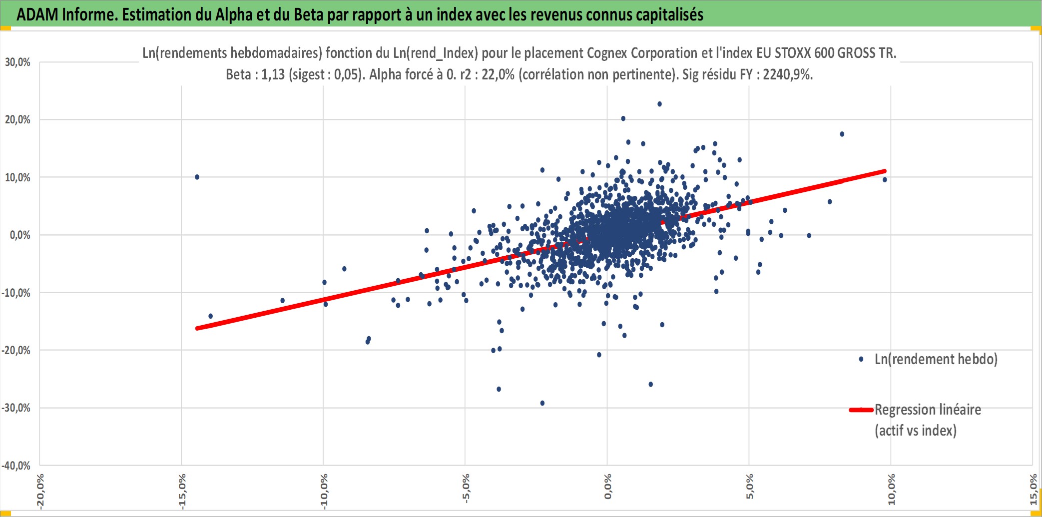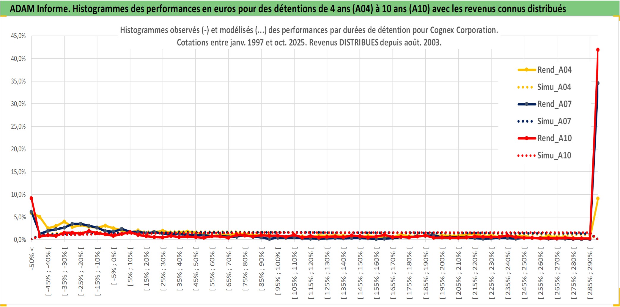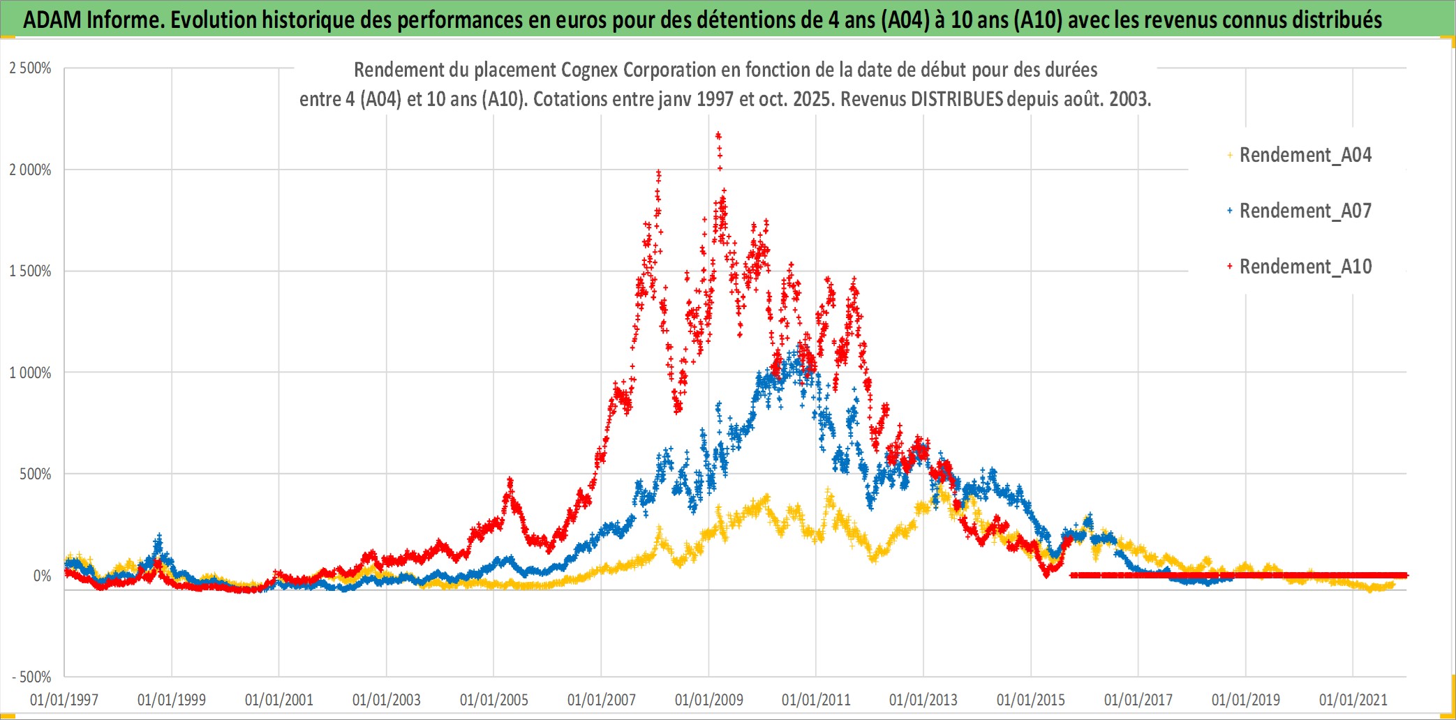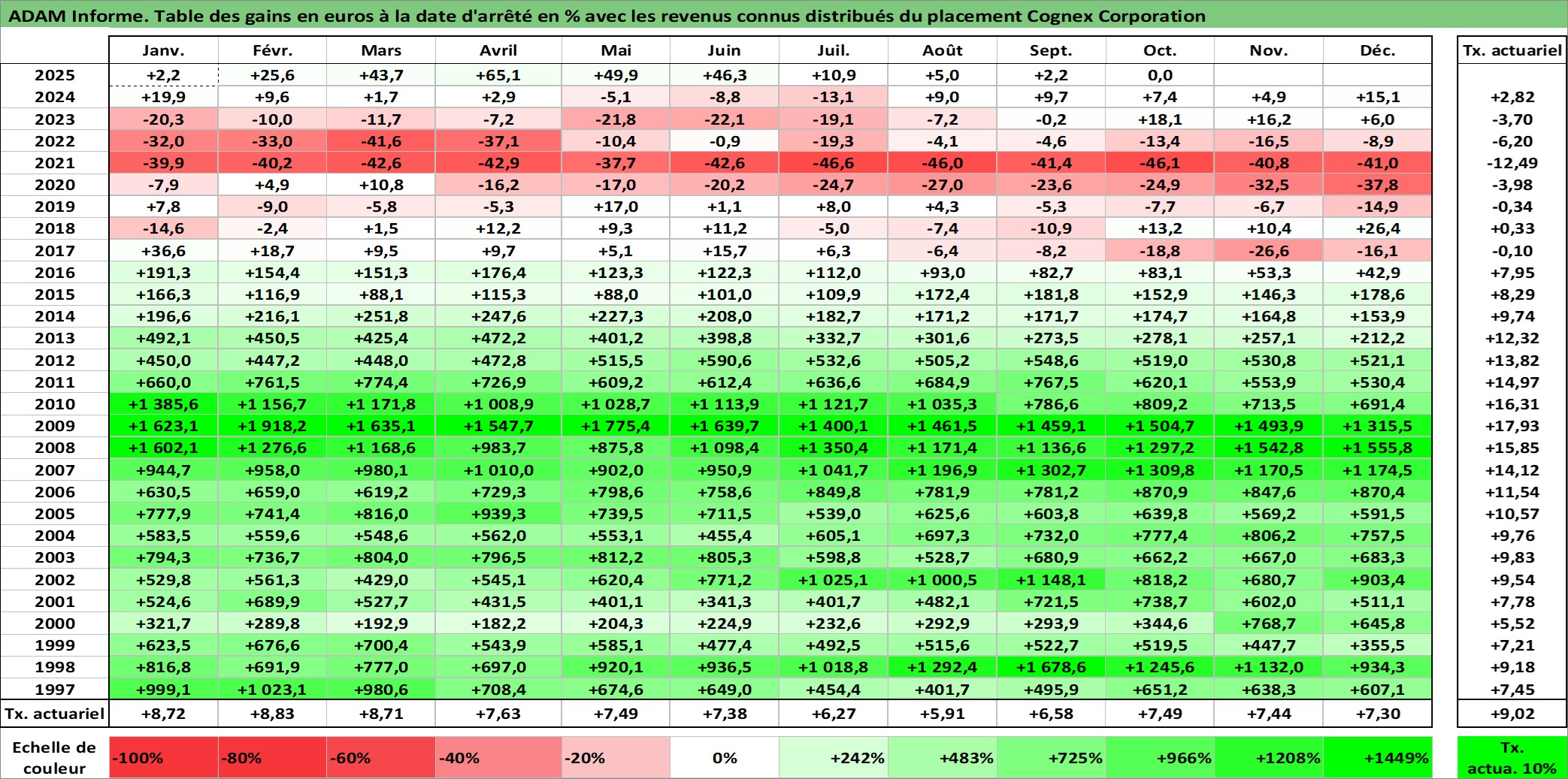 Site dédié aux investisseursPage dédiée sur site financeAnalyse des valorisations hebdomadaires de l'action Cognex Corporation. Cet actif est cote en USD. Les valorisations sont en contrevaleur EURO et couvrent les semaines 1997W01 a 2025W40. Les revenus de cet actif financier sont pris en compte depuis la semaine 2003W35. La note ESG de cet actif n'est pas connue.