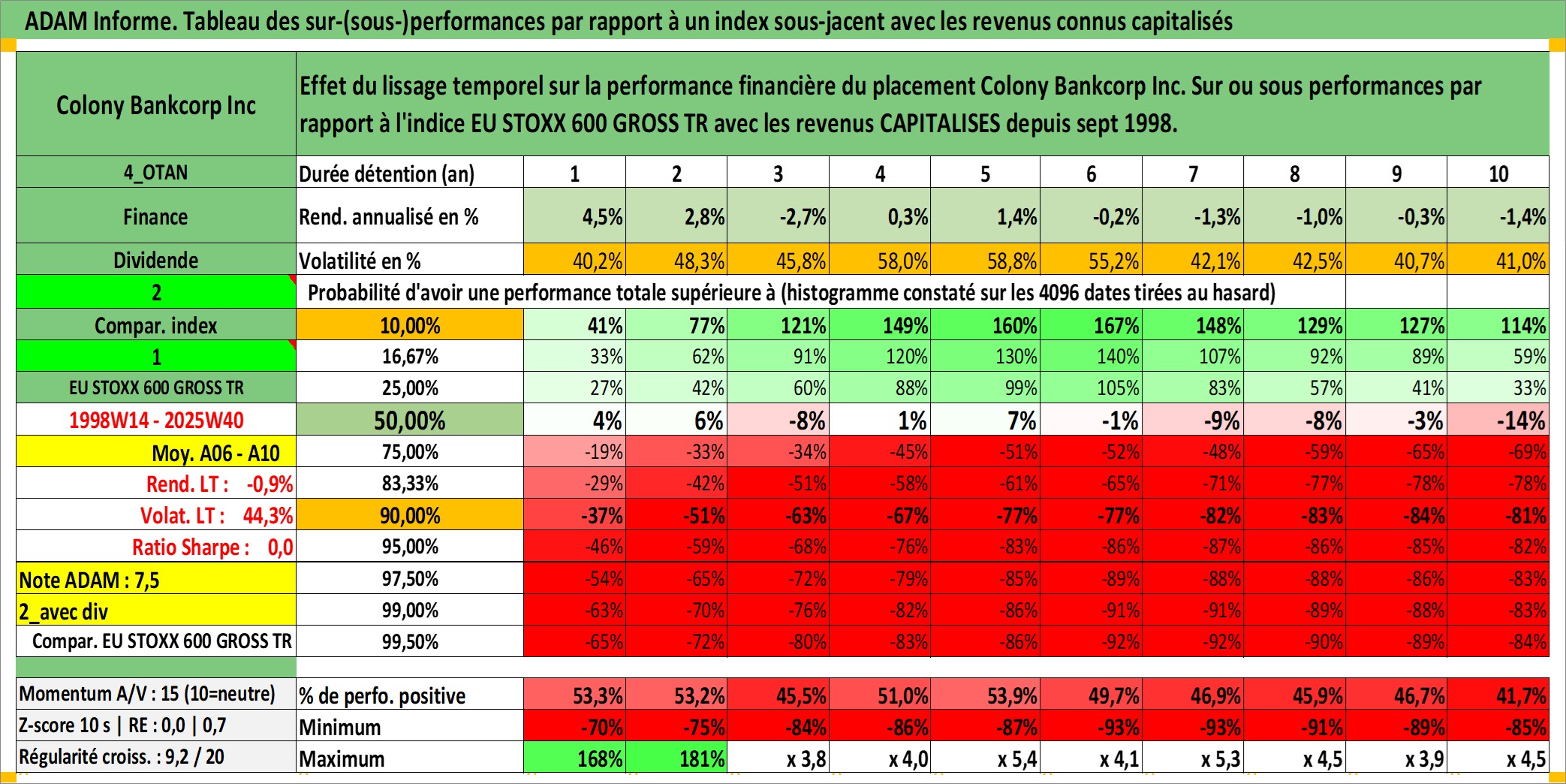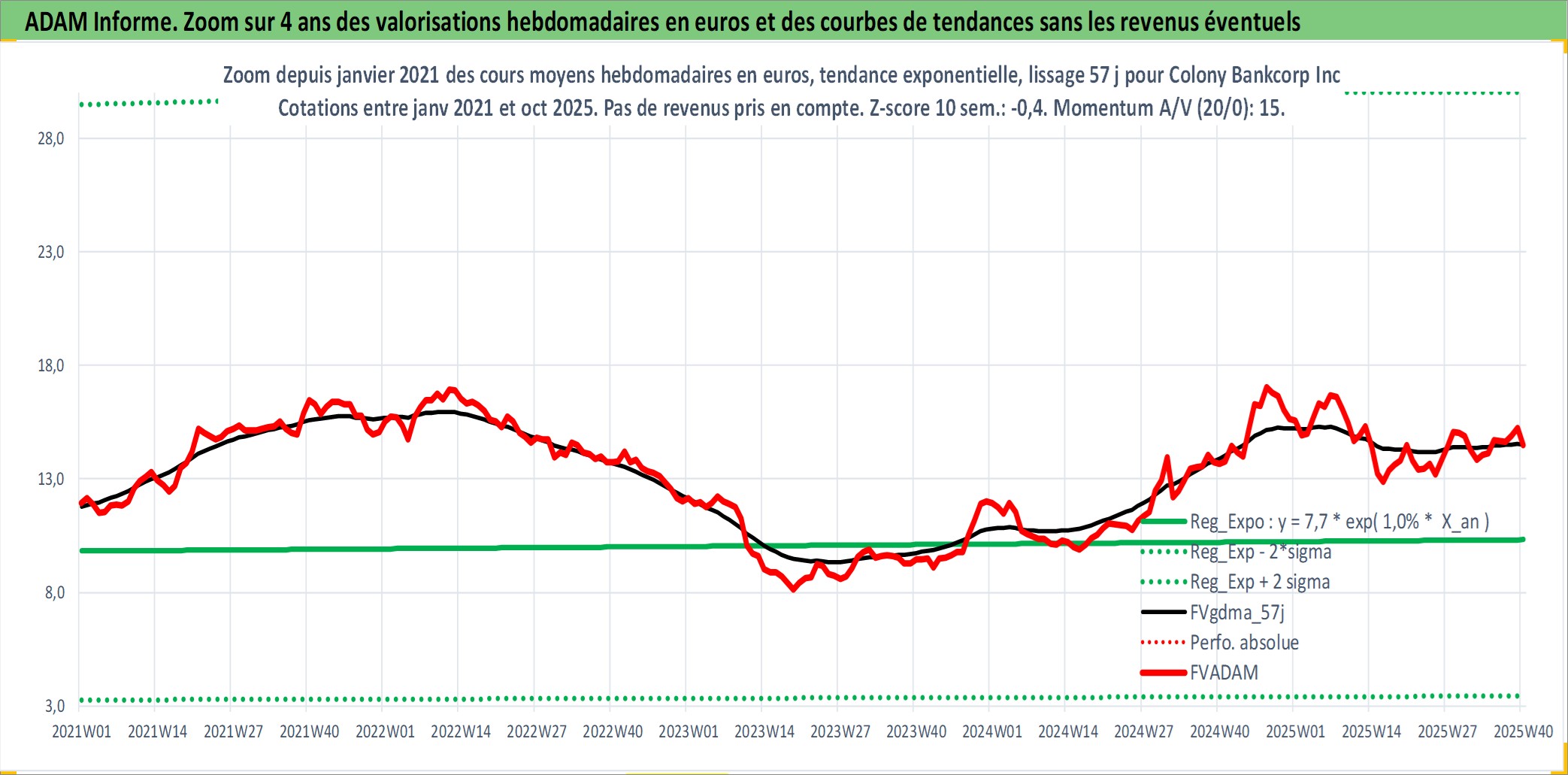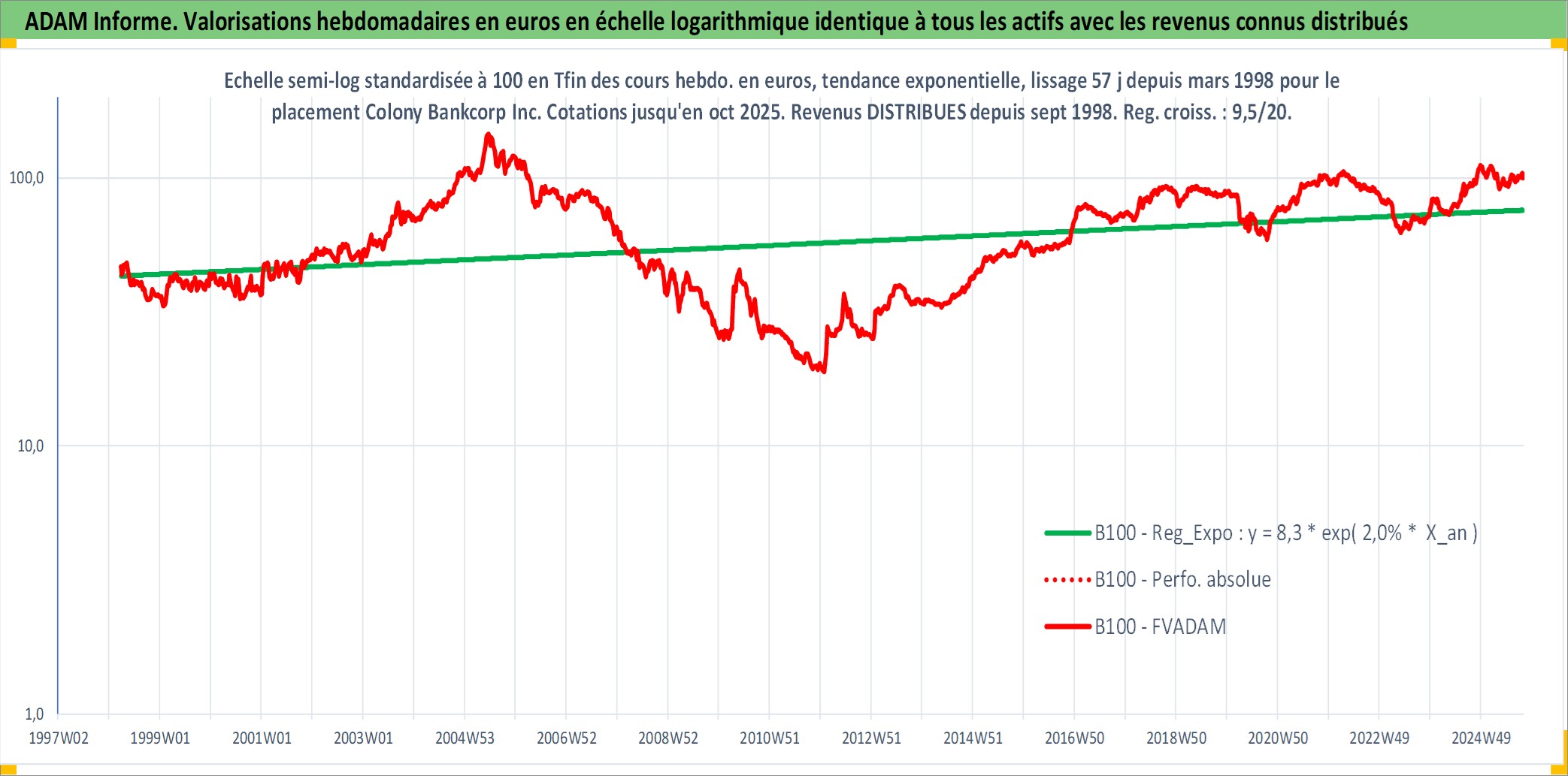 Site dédié aux investisseursPage dédiée sur site financeAnalyse des valorisations hebdomadaires de l'action Colony Bankcorp Inc. Cet actif est cote en USD. Les valorisations sont en contrevaleur EURO et couvrent les semaines 1998W14 a 2025W40. Les revenus de cet actif financier sont pris en compte depuis la semaine 1998W40. La note ESG de cet actif n'est pas connue.